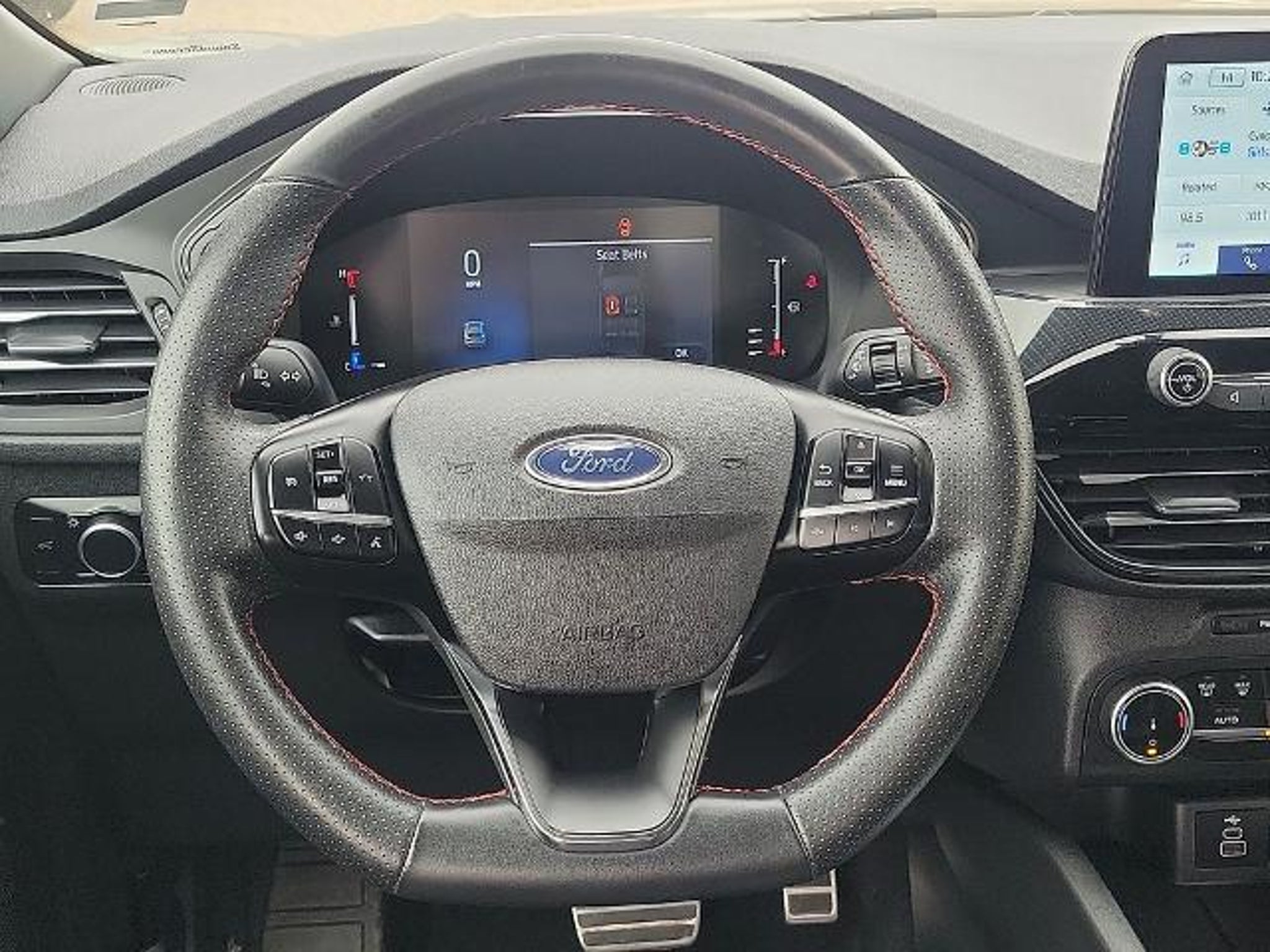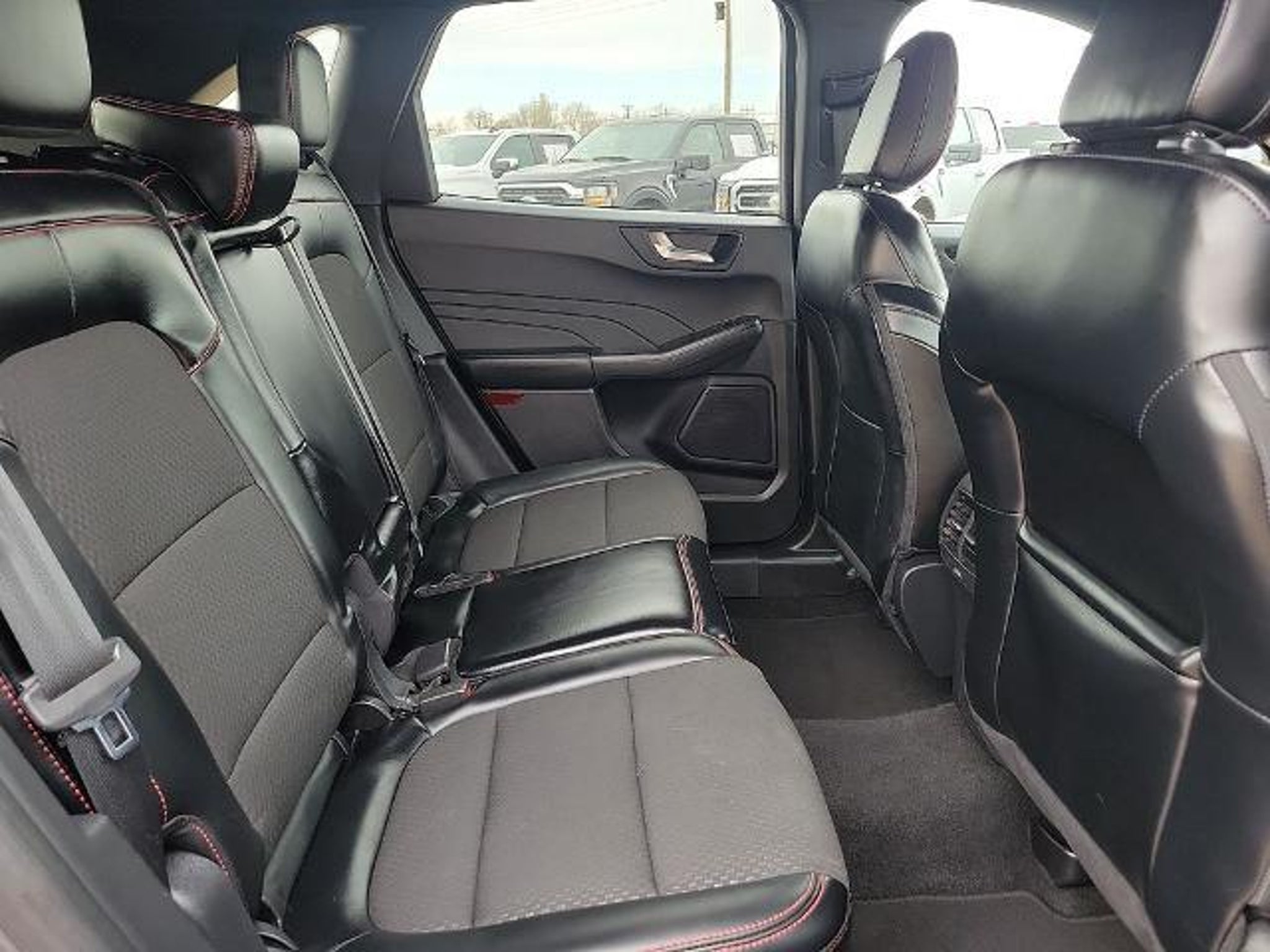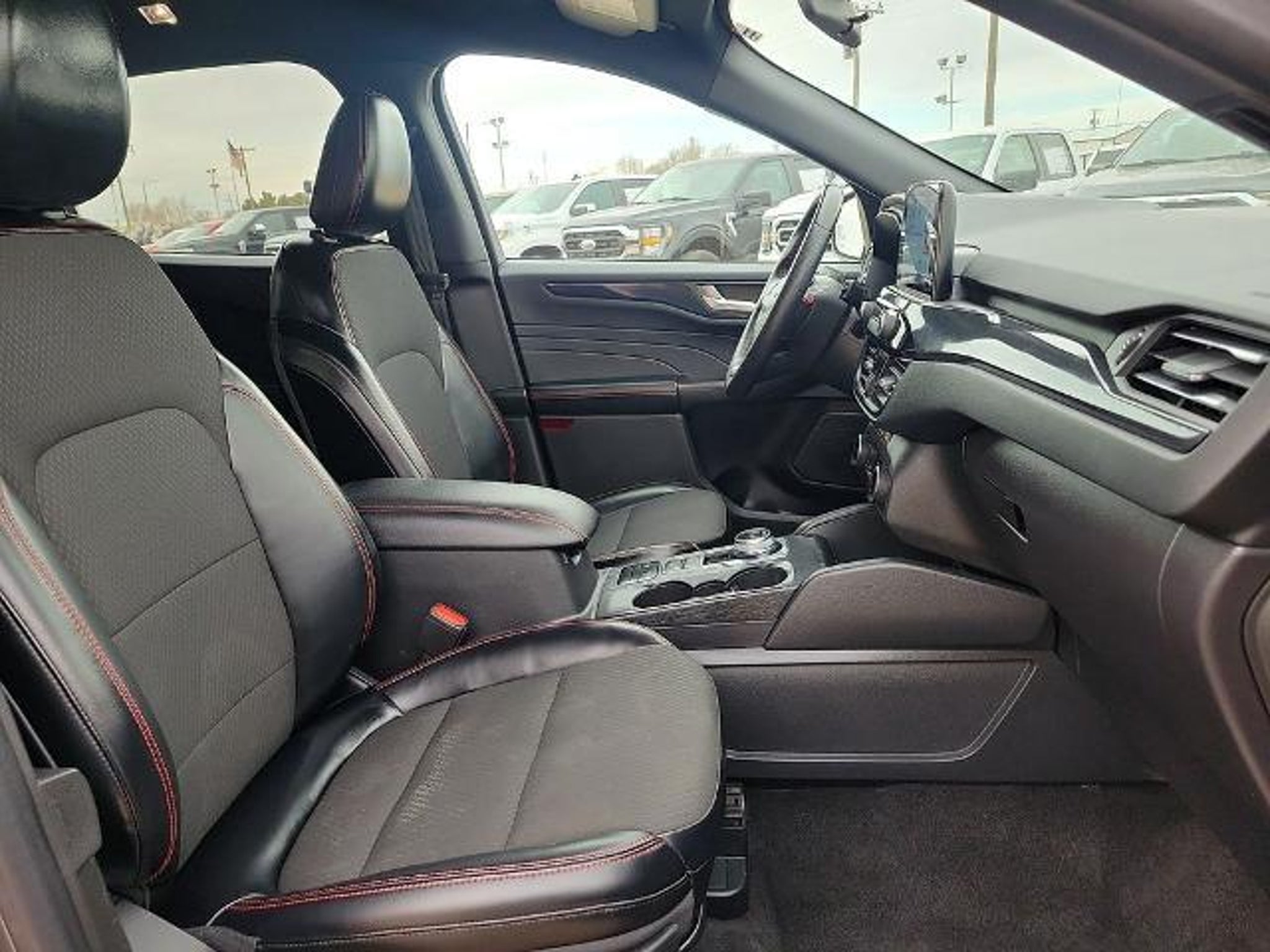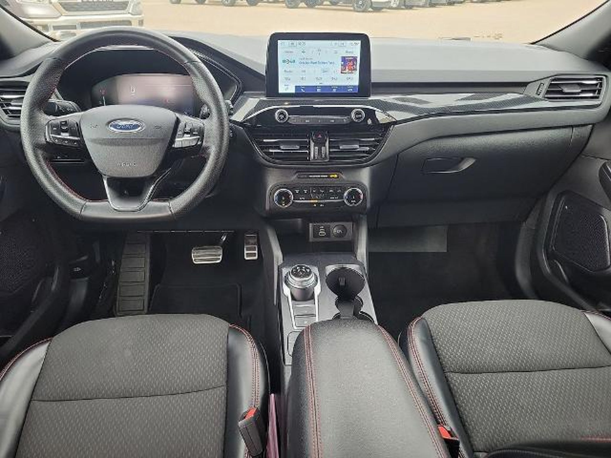 This 2024 Ford Escape ST-Line 1.5L EcoBoost 8-Speed Automatic FWD in Gray Metallic comes with the following features: Equipment Group 300A, 3.81 Axle Ratio, 4-Wheel Disc Brakes, 6 Speakers, ABS brakes, Air Conditioning, Alloy wheels, AM/FM radio: SiriusXM, AM/FM Stereo, Auto High-beam Headlights, Automatic temperature control, Brake assist, Bumpers: body-color, Compass, Delay-off headlights, Driver door bin, Driver vanity mirror, Dual front impact airbags, Dual front side impact airbags, Electronic Stability Control, Emergency communication system: SYNC 4 911 Assist, Exterior Parking Camera Rear, FordPass Connect, Four wheel independent suspension, Front anti-roll bar, Front Bucket Seats, Front Center Armrest, Front dual zone A/C, Front reading lights, Fully automatic headlights, Illuminated entry, Knee airbag, Low tire pressure warning, Occupant sensing airbag, Outside temperature display, Overhead airbag, Overhead console, Panic alarm, Passenger door bin, Passenger vanity mirror, Power door mirrors, Power driver seat, Power Liftgate, Power steering, Power windows, Radio data system, Rear anti-roll bar, Rear reading lights, Rear seat center armrest, Rear window defroster, Rear window wiper, Remote keyless entry, Roof rack: rails only, Speed control, Speed-sensing steering, Speed-Sensitive Wipers, Split folding rear seat, Spoiler, Sport steering wheel, Steering wheel mounted audio controls, SYNC 4, Tachometer, Telescoping steering wheel, Tilt steering wheel, Traction control, Trip computer, Variably intermittent wipers, Vinyl/Cloth Front Sport Contour Bucket Seats, and Wheels: 18 Rock Metallic Painted Aluminum. 27/34 City/Highway MPG