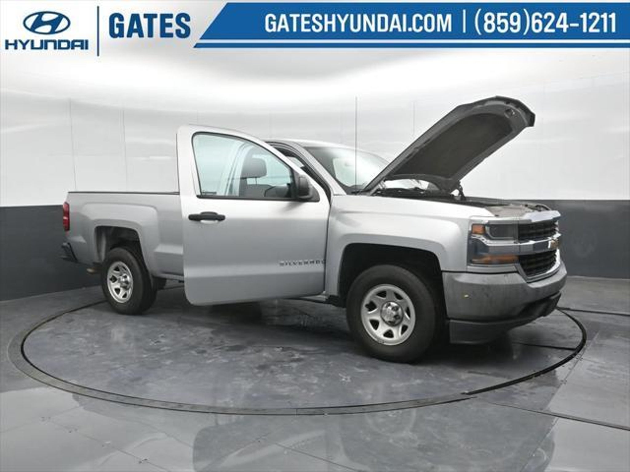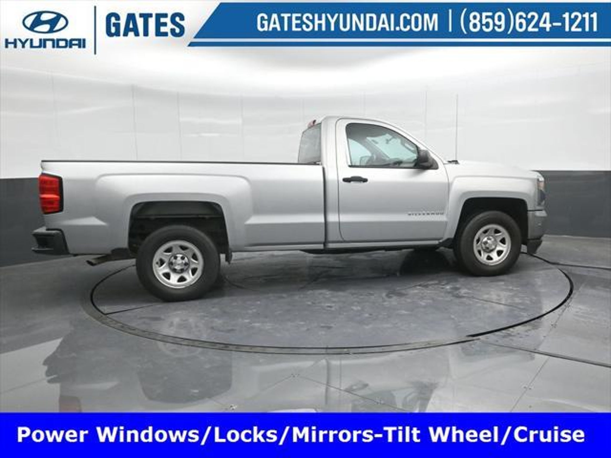Silver Ice Metallic 2016 Chevrolet Silverado 1500 WT RWD 6-Speed Automatic Electronic with Overdrive EcoTec3 4.3L V6 Gates Hyundai 6-Speed Automatic Electronic with Overdrive Dark Ash With Jet Black Interior Accents Cloth 150 Amp Alternator 3.23 Rear Axle Ratio 4-Wheel Disc Brakes 40/20/40 Front Split Bench Seat 6 Speaker Audio System ABS brakes Air Conditioning AM/FM radio Black Power Adjustable Heated Outside Mirrors Bluetooth® For Phone Brake assist Chrome Grille Surround Cloth Seat Trim Deep-Tinted Glass Delay-off headlights Driver door bin Driver Information Center Dual front impact airbags Dual front side impact airbags E85 FlexFuel Capable Electronic Stability Control Front anti-roll bar Front Center Armrest w/Storage Front Chrome Bumper Front License Plate Kit Front reading lights Front wheel independent suspension Fully automatic headlights Graphite-Colored Rubberized-Vinyl Floor Covering Heavy Duty Suspension High-Intensity Discharge Headlights Low tire pressure warning Manual Tilt Wheel Steering Column Occupant sensing airbag OnStar 6 Months Guidance Plan OnStar w/4G LTE Overhead airbag Overhead console Passenger door bin Passenger vanity mirror Power steering Power Windows w/Driver Express Up Radio data system Radio: AM/FM w/7 Diagonal Color Touch Screen Rear Chrome Bumper Rear step bumper Remote Keyless Entry Remote Locking Tailgate Speed control Speed-sensing steering Tachometer Tilt steering wheel Traction control Trip computer Variably intermittent wipers Voltmeter 6-Speed Automatic Electronic with Overdrive Dark Ash With Jet Black Interior Accents Cloth. Odometer is 60609 miles below market average! We are a family owned and operated business that began in 1915. We are now in our 4th generation of family ownership. As a family-run business its never been about gimmicks to get customers. We believe in earning our business the hard way - the only way - with referrals and satisfied customers. Were very proud of our business and dedication to superior customer service but we couldnt have done it without our customers. Thank you for taking the time to look at this reliable 2016 Chevrolet Silverado 1500. We are open online 24/7! Get pre-approved receive a prompt trade evaluation and purchase from the comfort of your home. We will do the rest. Within a 100 mile radius we offer free delivery to your door for any new or pre-owned vehicle. Call us message us via online chat or email us to get started! Thank you for allowing our family the opportunity to serve your family. ***GATES HYUNDAI ***