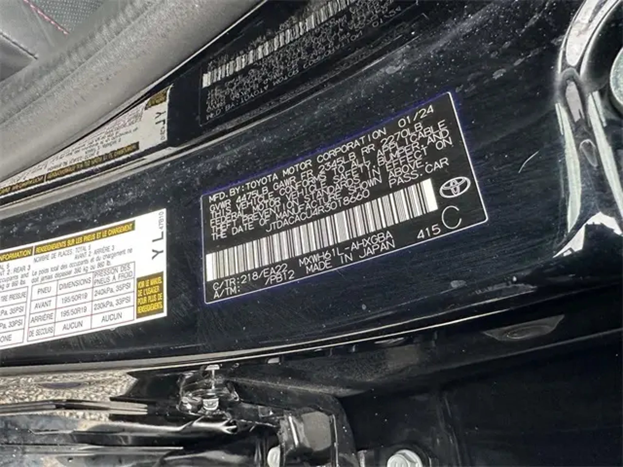 CARFAX One-Owner. Midnight Black Metallic 2024 Toyota Prius Prime XSE 5D Hatchback FWD Continuously Variable (ECVT) 2.0L 4-Cylinder DOHC 16V VVT **APPLE CARPLAY/ANDRIOD AUTO**, **POWER SEAT**, **HEATED SEATS**, **LEATHER SEATS**, **HEATED LEATHER SEATS**, **HEATED STEERING WHEEL**, **NAVIGATION**, **BLUETOOTH**, **BACKUP CAMERA**, **BLIND SPOT INFORMATION**, **COLLISION MITIGATION SYSTEM**, **BALANCE OF FACTORY WARRANTY**, **CLEAN CARFAX** Heat Package, Leather Seats, Remote Start, All Weather Floor Liners/Cargo Liner (TMS), Alloy wheels, Brake assist, Electronic Stability Control, Exterior Parking Camera Rear, Heated front seats, Heated Sport Front Bucket Seats, Heated steering wheel, Navigation system: Drive Connect Cloud Navigation (1-year trial subscription), Radio: Toyota Audio Multimedia w/12.3 Touchscreen, SofTex Seat Trim, Speed control, Wheels: 19 x 6.5J Machine Finished Aluminum Alloy. All Weather Floor Liners/Cargo Liner (TMS), Alloy wheels, Brake assist, Electronic Stability Control, Exterior Parking Camera Rear, Heated front seats, Heated Sport Front Bucket Seats, Heated steering wheel, Navigation system: Drive Connect Cloud Navigation (1-year trial subscription), Radio: Toyota Audio Multimedia w/12.3 Touchscreen, SofTex Seat Trim, Speed control, Wheels: 19 x 6.5J Machine Finished Aluminum Alloy, 4-Wheel Disc Brakes, 6 Speakers, ABS brakes, Air Conditioning, AM/FM radio: SiriusXM, Auto High-beam Headlights, Auto-dimming Rear-View mirror, Automatic temperature control, Bumpers: body-color, Delay-off headlights, Driver door bin, Driver vanity mirror, Dual front impact airbags, Dual front side impact airbags, Emergency communication system: Safety Connect (up to 10-year trial subscription), Four wheel independent suspension, Front anti-roll bar, Front Bucket Seats, Front Center Armrest, Front reading lights, Fully automatic headlights, Garage door transmitter: HomeLink, Heated door mirrors, Illuminated entry, Low tire pressure warning, Occupant sensing airbag, Outside temperature display, Overhead airbag, Overhead console, Panic alarm, Passenger door bin, Passenger vanity mirror, Power door mirrors, Power driver seat, Power steering, Power windows, Radio data system, Rain sensing wipers, Rear anti-roll bar, Rear reading lights, Rear seat center armrest, Rear side impact airbag, Rear window defroster, Remote keyless entry, Speed-Sensitive Wipers, Split folding rear seat, Steering wheel mounted audio controls, Telescoping steering wheel, Tilt steering wheel, Traction control, Trip computer, and Variably intermittent wipers.
