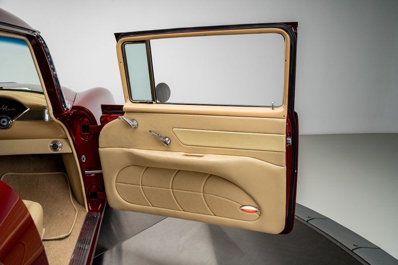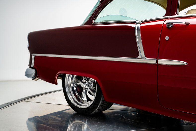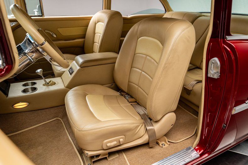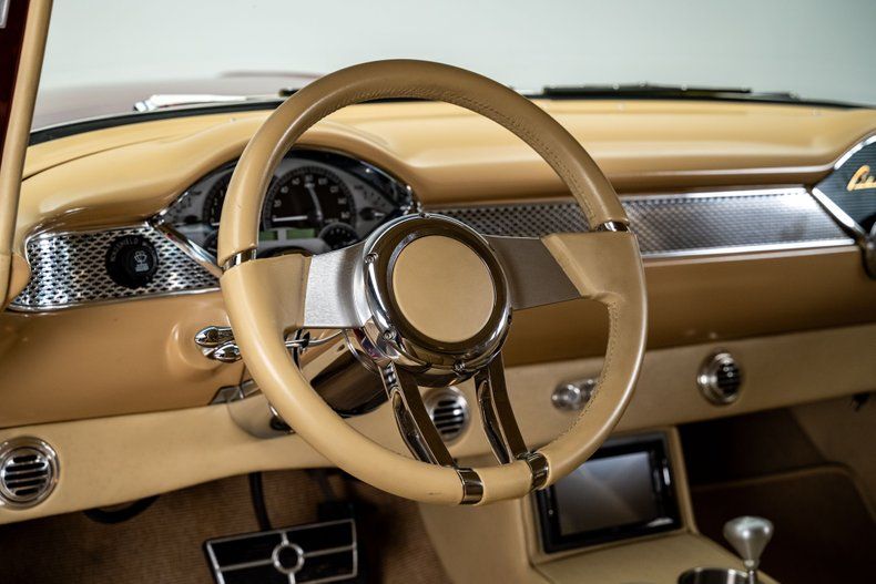 A full custom '55 210 lives or dies by its execution, and this one hits the mark from every angle. The car was torn down and rebuilt with fresh metal, a Roadster Shop Fast Track chassis, and a Chevrolet Performance LS376/480 that gives it real punch without turning it into a handful. The body wears a deep two-tone metallic burgundy that suits the shape perfectly, and the custom tan leather interior brings the cabin up to the standard you expect from a high-end build. It's a thoughtfully finished Tri-Five with modern performance, modern comfort, and a level of detail that makes the whole car feel cohesive