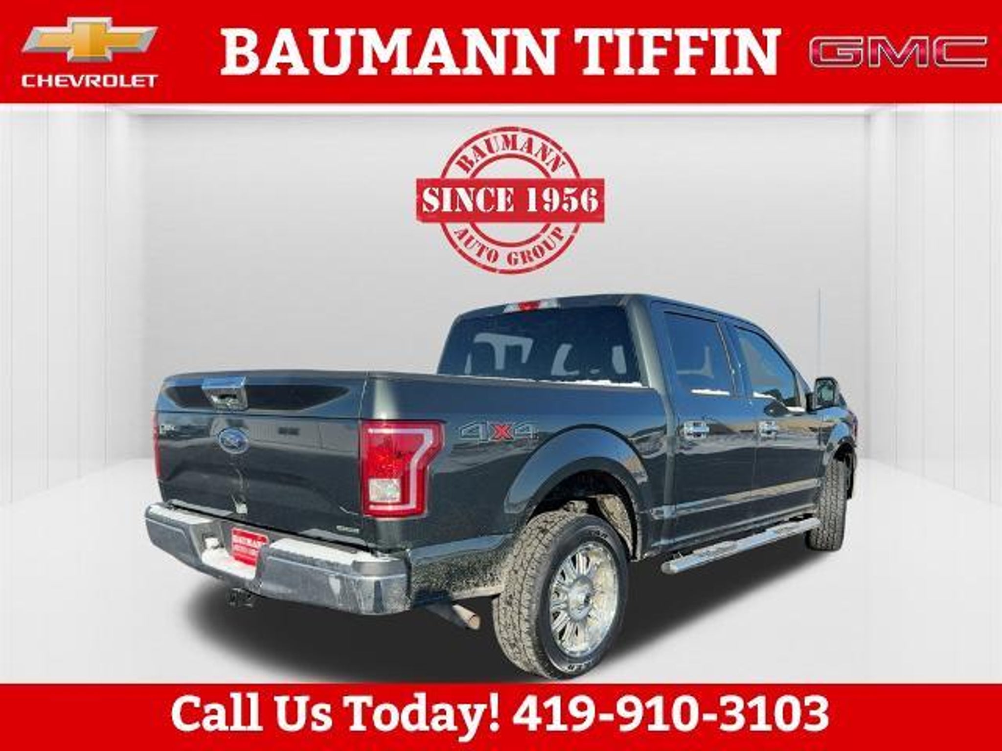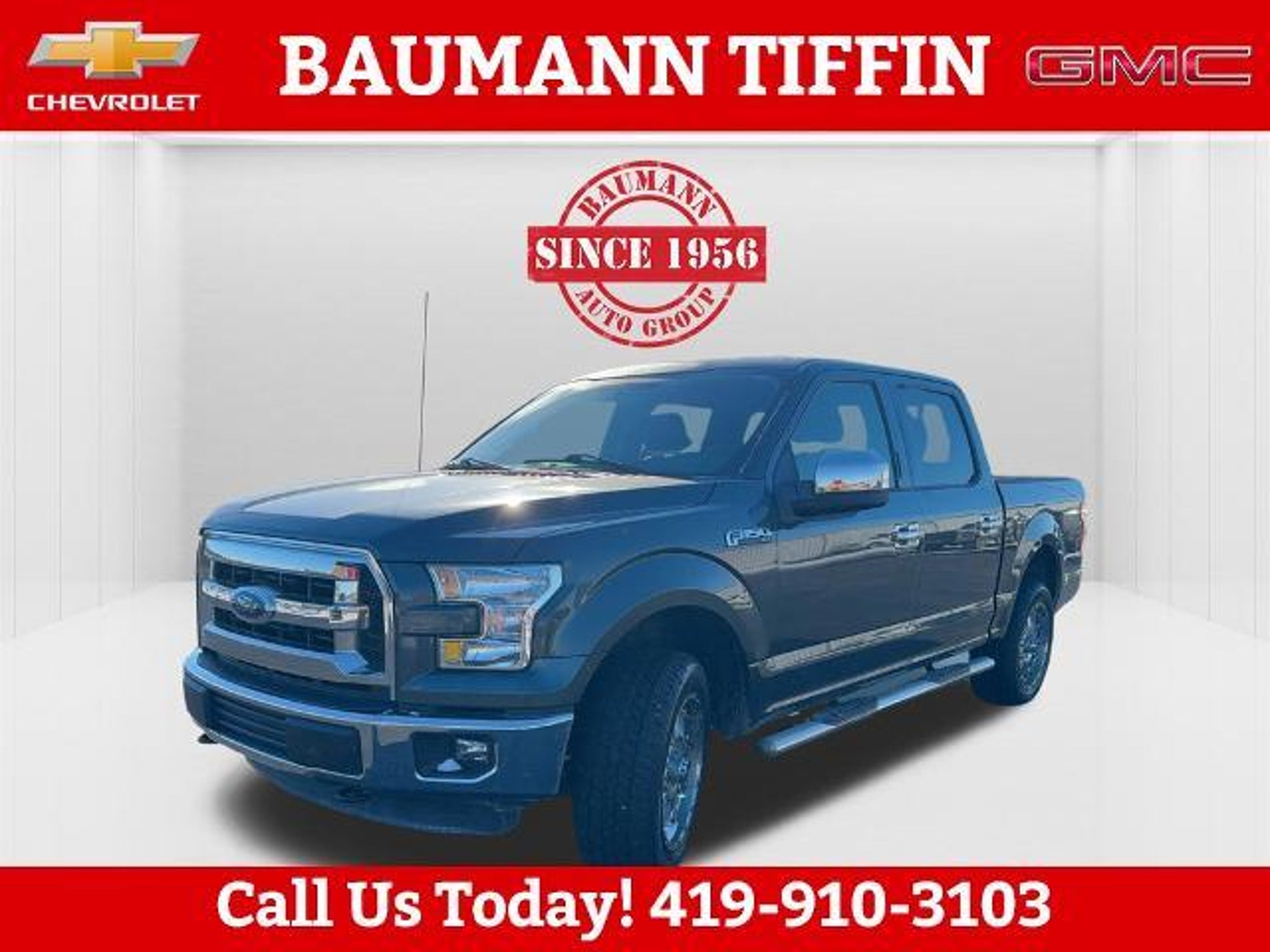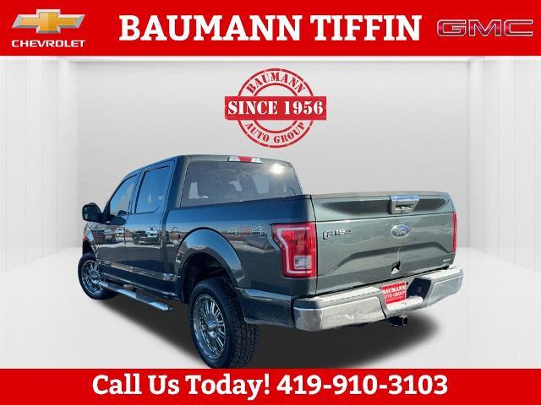 Guard Metallic 2015 Ford F-150 XLT 4D SuperCrew 5.0L V8 FFV 6-Speed Automatic Electronic 4WD 4WD, 3.31 Axle Ratio, 4-Wheel Disc Brakes, ABS brakes, Accent-Color Step Bars, Air Conditioning, Black Billet Style Grille w/Body-Color Surround, Body-Color Door & Tailgate Handles, Body-Color Front & Rear Bumpers, Box Side Decal, Brake assist, Class IV Trailer Hitch Receiver, Compass, Driver door bin, Dual front impact airbags, Dual front side impact airbags, Electronic Stability Control, Front anti-roll bar, Front wheel independent suspension, Integrated Trailer Brake Controller, Low tire pressure warning, Occupant sensing airbag, Outside temperature display, Overhead airbag, Passenger door bin, Passenger vanity mirror, Power steering, Rear step bumper, Single-Tip Chrome Exhaust, Speed-sensing steering, Split folding rear seat, Tachometer, Telescoping steering wheel, Tilt steering wheel, Traction control, Unique Sport Cloth 40/Console/40 Front-Seats, Variably intermittent wipers, Voltmeter, Wheels: 18 6-Spoke Machined-Aluminum, XLT Sport Appearance Package, 4WD.