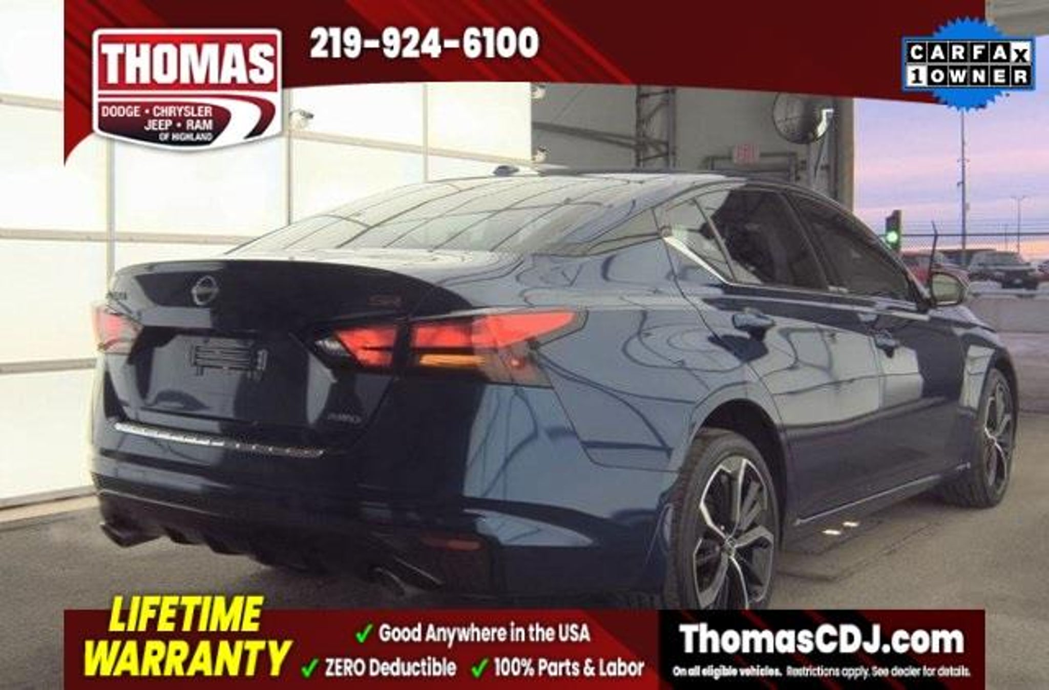 2023 Deep Blue Pearl Nissan Altima 26/36 City/Highway MPG One Owner, Moonroof, 6 Speakers, Alloy wheels, Auto High-beam Headlights, Black Outside Mirrors, Blind Spot Warning, Fully automatic headlights, Heated Front Seats, Leather Shift Knob, Leather-Appointed Seat Trim, NissanConnect, NissanConnect featuring Apple CarPlay and Android Auto, Power door mirrors, Power driver seat, Premium Sport Interior Finishers, Rear Parking Sensors, Security system, Single Panel Moonroof, Speed control, SR Premium Package, Wheels: 19 Sport Alloy. LIFETIME WARRANTY FOREVER! On ALL eligible new & used vehicles - $0 Deductible Parts and Labor! - Valid Anywhere in the USA! - Can be Serviced at any Licensed Facility in the USA! - No Expiration Full Powertrain Coverage for Your Entire Ownership! * NO CATCH & NO COST TO YOU! * On All Eligible New and Used Vehicles * Only at ThomasDCJ.com.