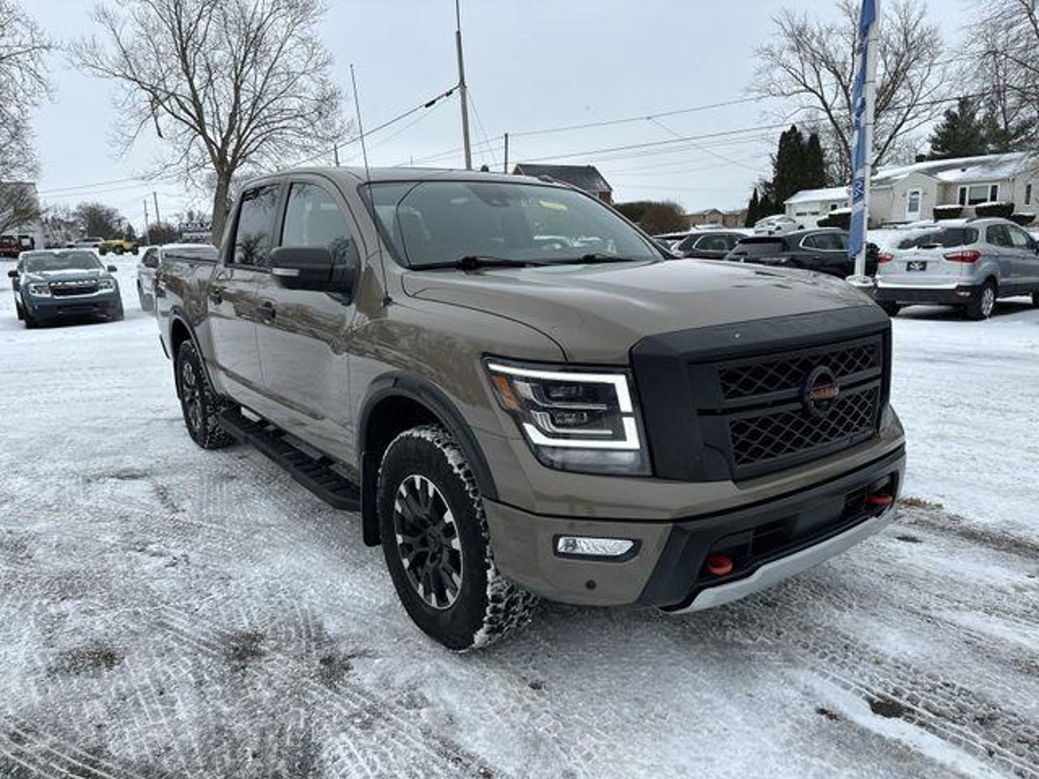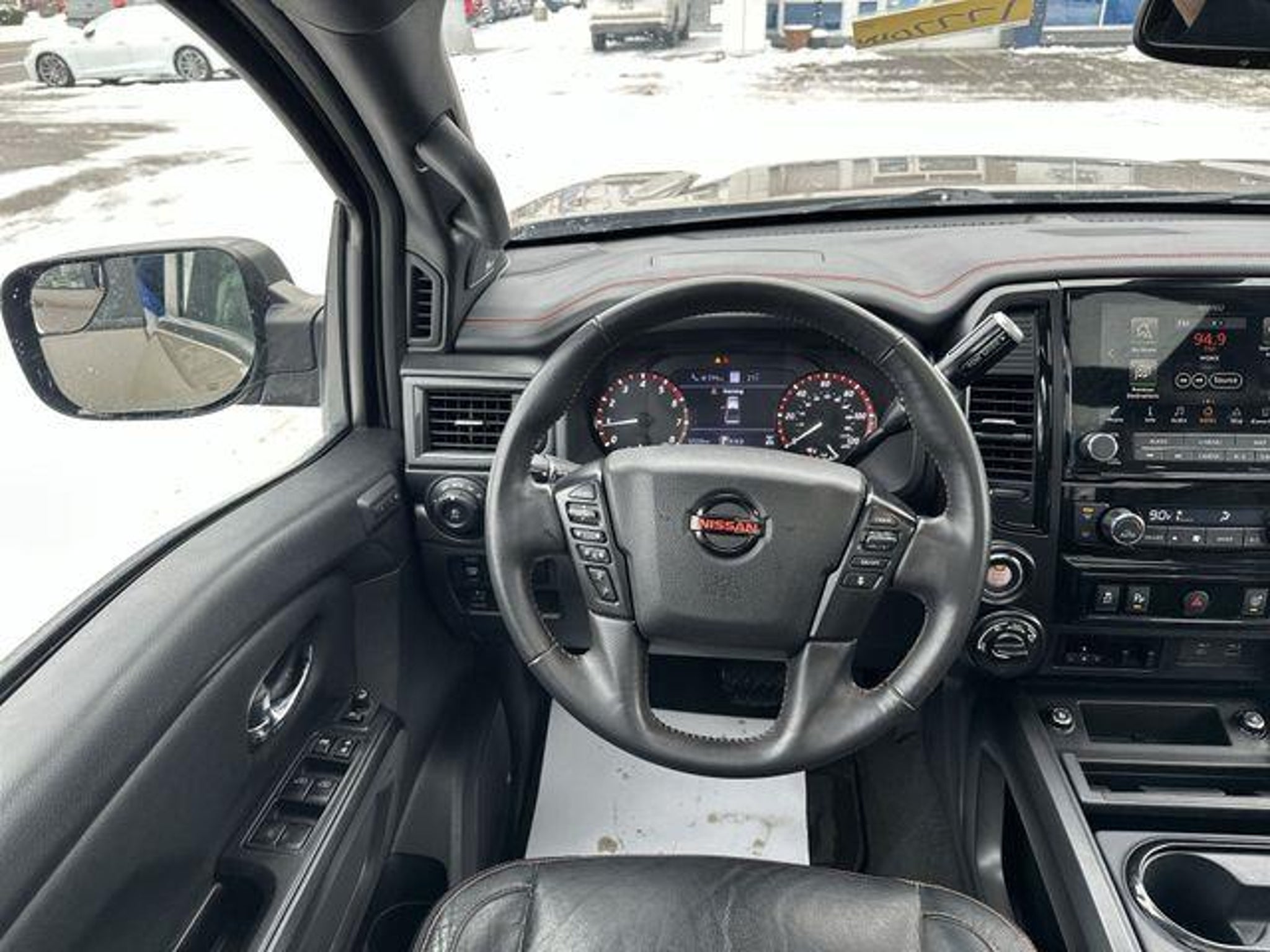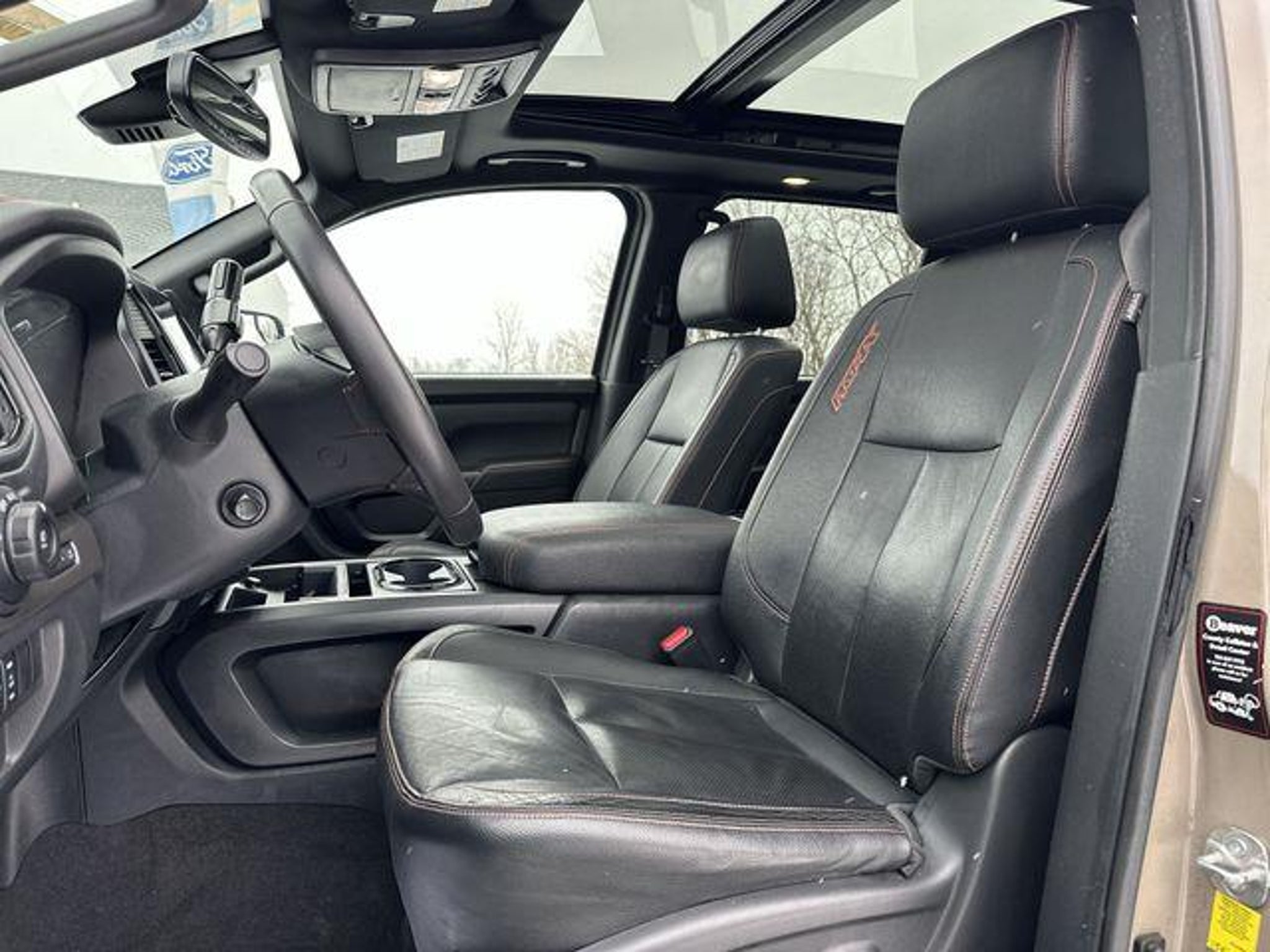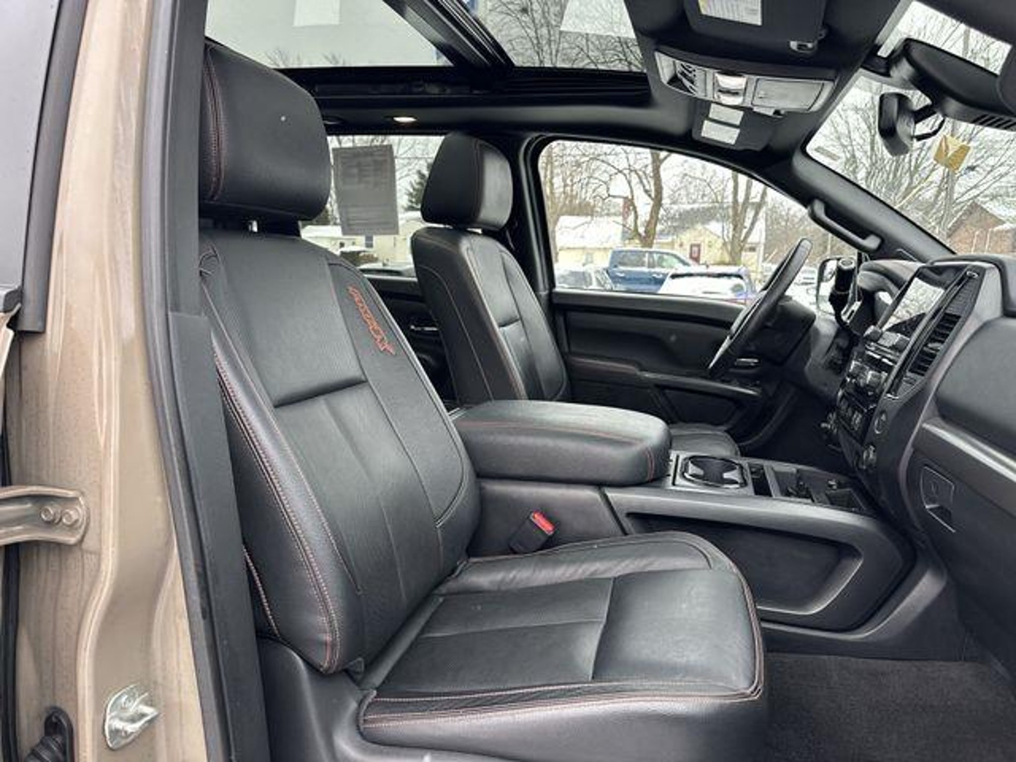 2021 Nissan Titan PRO-4X 4WD - FOUR WHEEL DRIVE, APPLE CAR PLAY / ANDROID AUTO, BACKUP CAMERA, BLUETOOTH, Titan PRO-4X, 4WD, Baja Storm, 110V Outlet in Bed, 3.692 Axle Ratio, 4-Way Power Assist Seat, 4-Wheel Disc Brakes, 6 Speakers, ABS brakes, Air Conditioning, All Season Floor Mats, Alloy wheels, AM/FM radio: SiriusXM, Auto High-beam Headlights, Auto-dimming Rear-View mirror, Auto-leveling suspension, Automatic temperature control, Bed Assist Grip, Blind Spot Warning, Brake assist, Cloth Seat Trim w/Vinyl Bolsters, Compass, Delay-off headlights, Driver & Passenger Ventilated Front Seats, Driver door bin, Driver vanity mirror, Dual front impact airbags, Dual front side impact airbags, Dual Panel Panoramic Moonroof w/Tilt & Slide, Electronic Locking Tailgate, Electronic Stability Control, Emergency communication system: NissanConnect Services, Fender Premium Audio System w/12 Speakers, Front & Rear Parking Sensors, Front anti-roll bar, Front Bucket Seats, Front Captain's Seats, Front Center Armrest, Front dual zone A/C, Front fog lights, Front reading lights, Front wheel independent suspension, Fully automatic headlights, Garage door transmitter: HomeLink, Heated door mirrors, Heated Driver & Passenger Seat, Heated Power Tilt/Telescopic Steering Wheel, Heated Rear Seats, Illuminated entry, Intelligent Around View Monitor (I-AVM), Knee airbag, Leather Seat Trim, Leather steering wheel, LED Tailgate Area Illumination, LED Under Rail Bed Lighting, Low tire pressure warning, Memory Driver Seat w/Auto Entry/Exit Feature, Navigation system: NissanConnect Navigation, NissanConnect featuring Apple CarPlay and Android Auto, Occupant sensing airbag, Off Road Protection Package, Outside temperature display, Overhead airbag, Overhead console, Panic alarm, Passenger door bin, Passenger vanity mirror, Power door mirrors, Power driver seat, Power Folding Auto Dimming Outside Mirrors, Power Sliding Rear Window w/Defogger, Power steering, Power windows, PRO-4X Badged Floor Mats (DISC), PRO-4X Convenience Package, PRO-4X Illuminated Kick Plate, PRO-4X Moonroof Package, PRO-4X Utility Package, Pro4X Mud Flaps, Pro4X Rugged Step Boards, Proximity Activation, Puddle Lamps, Radio data system, Radio: NissanConnect w/Navigation, Rain sensing wipers, Rear anti-roll bar, Rear Bumper Step w/Electronic Tailgate Lock, Rear Parking Sensors, Rear seat center armrest, Rear Seat Entertainment (H93) (DISC), Rear step bumper, Rear Utility Bed Step, Rear window defroster, Remote Engine Start on Key Fob, Remote keyless entry, Security system