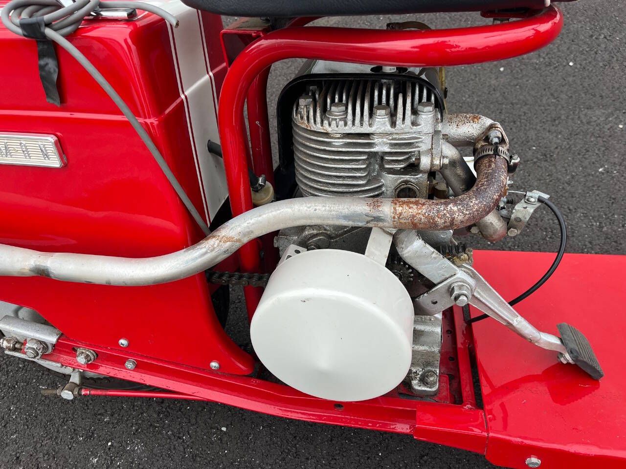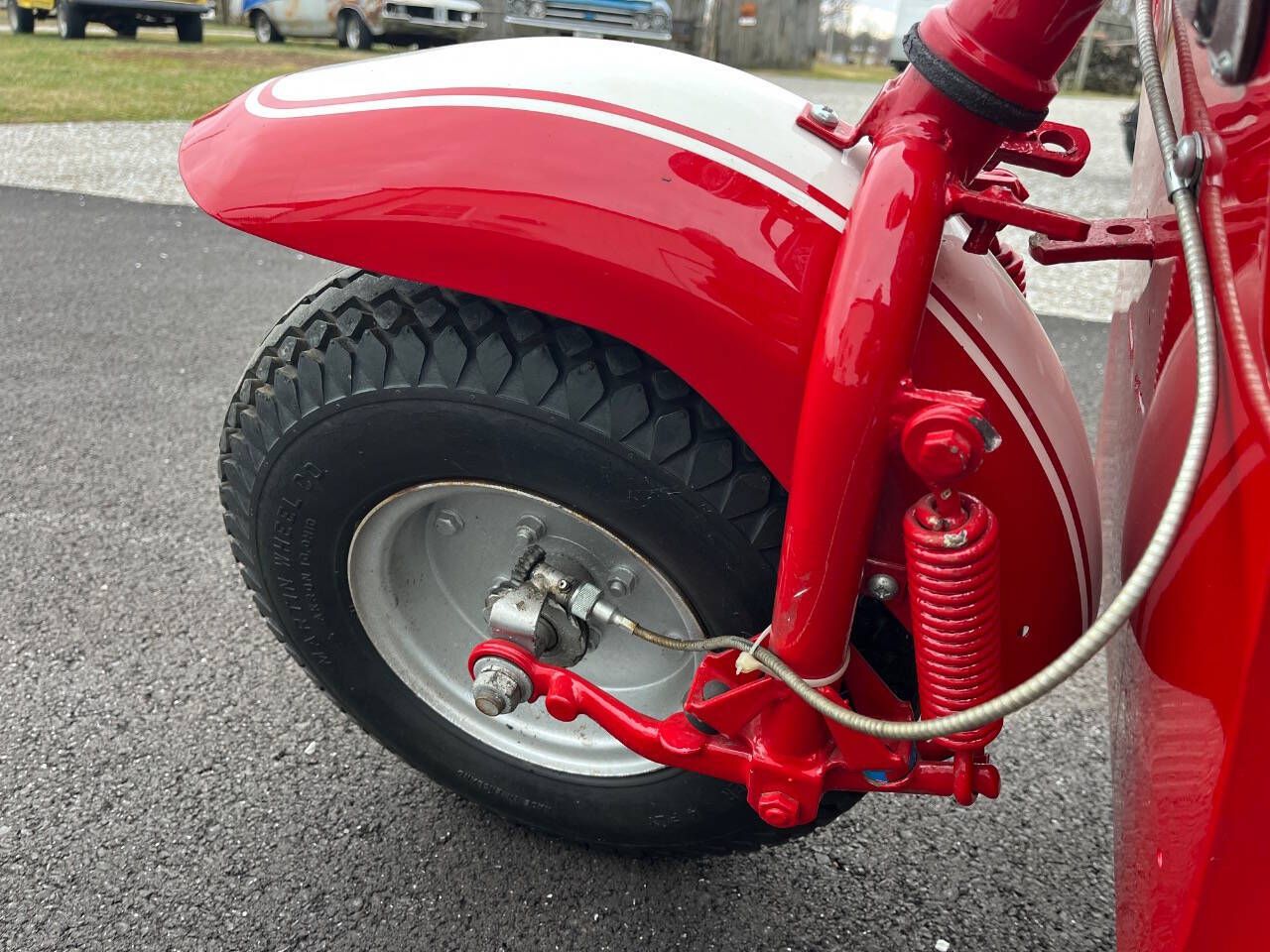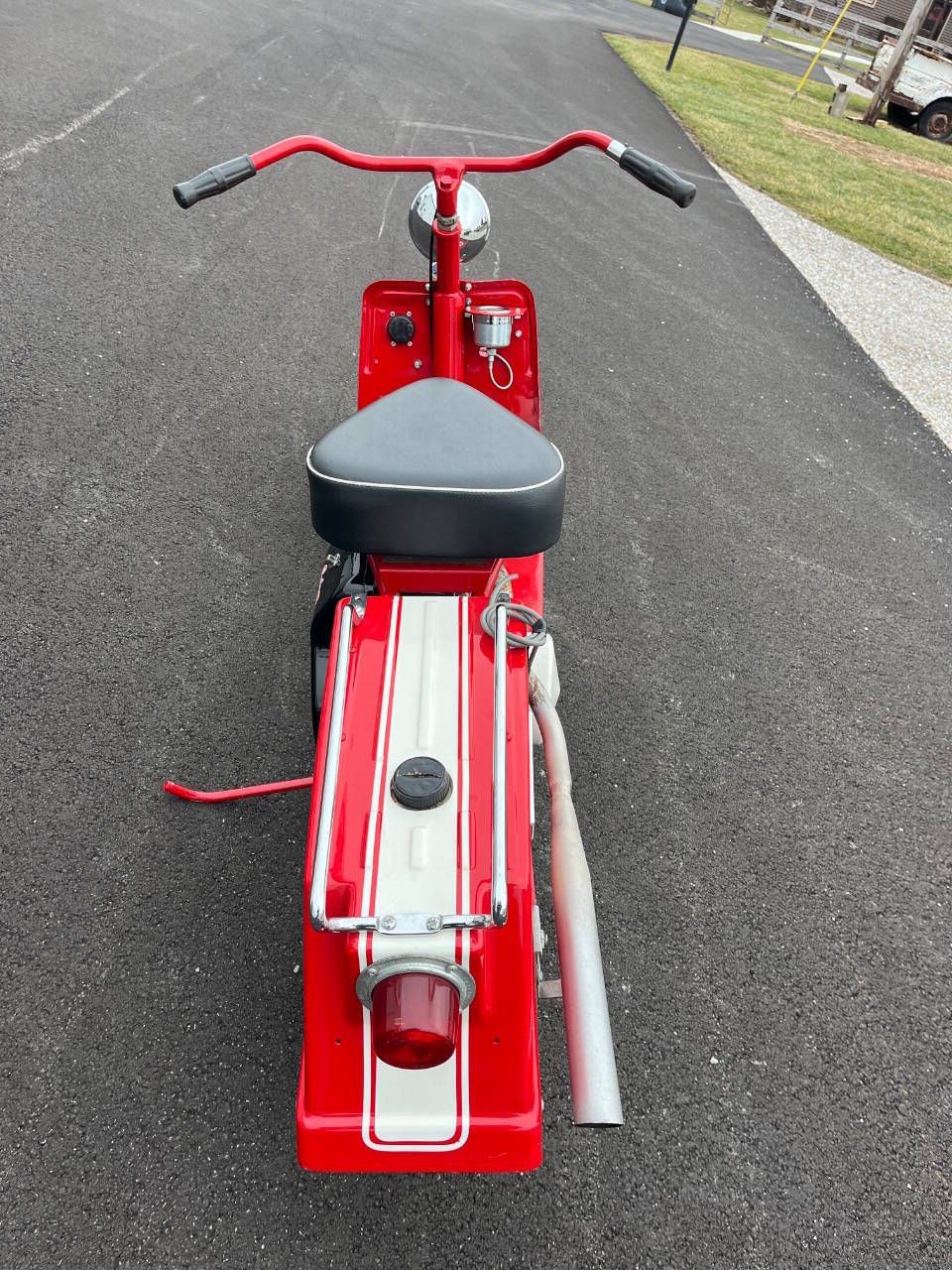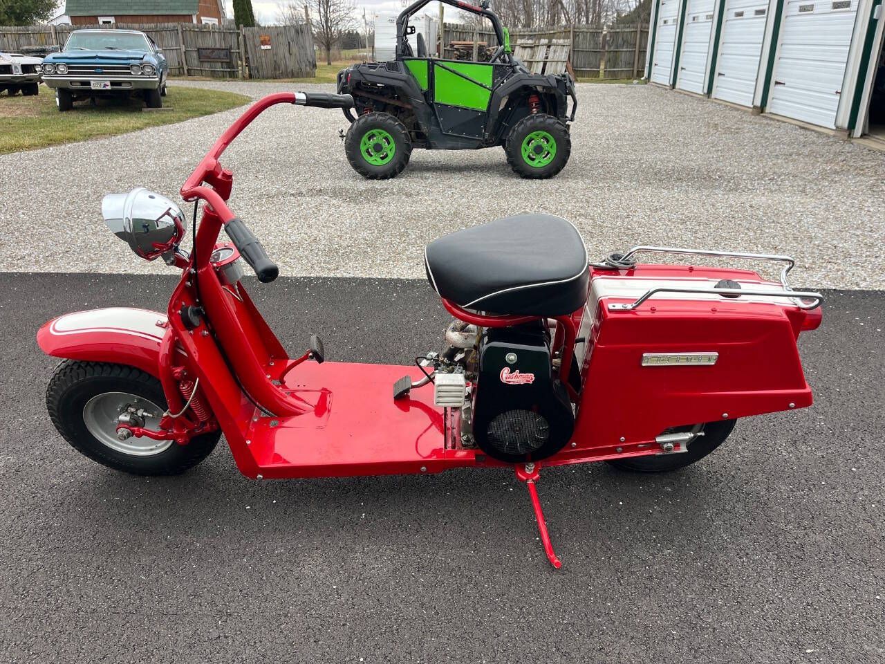 FOR SALE BY 500 CLASSIC AUTO. CALL 765-345-5211. THIS 59 CUSHMAN IS IN EXCELLENT RESTORED CONDITION. SHINNY PAINT WAS DONE VERY HIGH QUALITY. FINISHED JUST A COUPLE YEARS AGO BY SOMEONE ELSE. NO TITLE. SELLING AS IS WITH NO WARRANTY. NOTE: 27 PHOTOS AND A VIDEO AT WWW.500CLASSICAUTO.COM. YOU CAN TELL IT HAS NEW TIRES. NEW HEADLIGHT. NEW SPEEDO AND IT WORKS. NEW SEAT AND MORE. I STARTED IT IN 20 DEGREE WEATHER THE OTHER DAY AND WITH 3 KICKS SHE FIRED UP. THEN STALLED BECAUSE I DIDN'T TURN DOWN CHOKE FAST ENOUGH BUT STARTED WRIGHT BACK UP. STILL NEEDS WIRED FOR LIGHTS AND HORN. NEEDS A CHOKE CABLE TOO. WOULD LOOK NICER IF EXHAUST WAS CHROMED AND REPLACE GAS CAP. ENGINE NOT PAINTED PRETTY BUT NO SMOKE AND RUNS GREAT. THE CHAIN IS A LITTLE LOOSE AND HIT COVER SLIGHTLY. YOU CAN HERE IT IN VIDEO. DELIVERY - I CAN GET A PRICE FOR SHIPPING IN USA OR YOU CAN OR PICK UP IN PERSON.