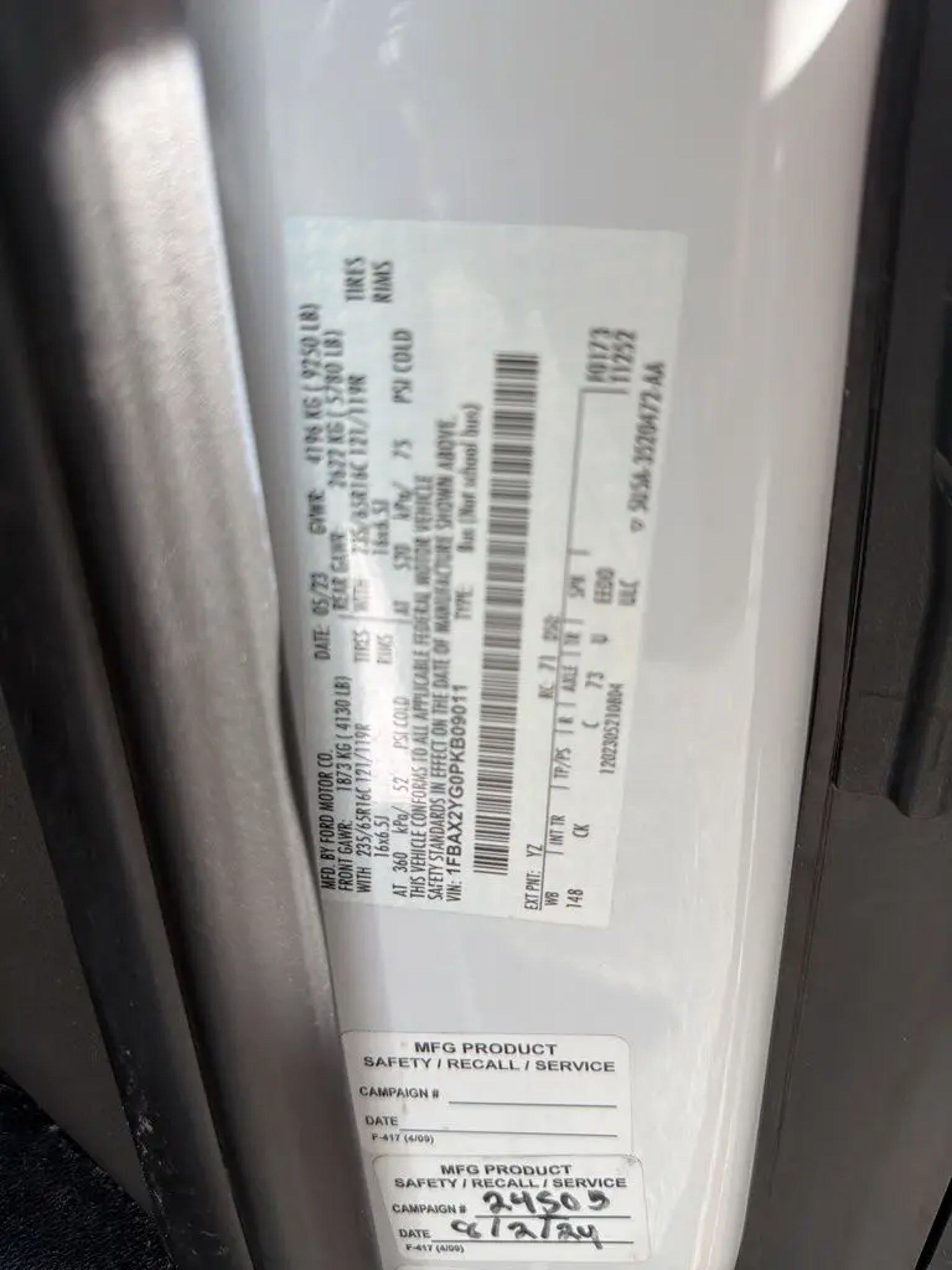 VIN 1FBAX2YG0PKB09011