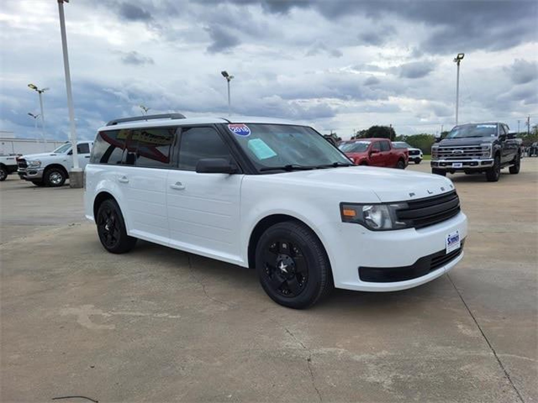 2018 Ford Flex SE 6-Speed Automatic with Select-Shift FWD Want us to come to you? No problem! In case we missed a picture or a detail you would like to see of this 2018 Flex, we are happy to send you A PERSONAL VIDEO walking around the vehicle focusing on the closest details that are important to you. We can send it directly to you via text, email, or Facebook messenger. We look forward to hearing from you! This vehicle contains the following features and options: Equipment Group 100A, 3.39 Axle Ratio, 3rd row seats: split-bench, 4-Wheel Disc Brakes, 6 Speakers, ABS brakes, Air Conditioning, Alloy wheels, AM/FM radio, AM/FM Single CD/MP3 Capable, Auto-dimming Rear-View mirror, Black Roof-Rack Side Rails, Brake assist, Bumpers: body-color, CD player, Child-Seat-Sensing Airbag, Cloth Front Bucket Seats, Compass, Delay-off headlights, Driver door bin, Driver vanity mirror, Dual front impact airbags, Dual front side impact airbags, Electronic Stability Control, Emergency communication system: 911 Assist, Exterior Parking Camera Rear, Four wheel independent suspension, Front anti-roll bar, Front Bucket Seats, Front Center Armrest, Front reading lights, Fully automatic headlights, Heated door mirrors, Illuminated entry, Low tire pressure warning, Occupant sensing airbag, Outside temperature display, Overhead airbag, Overhead console, Panic alarm, Passenger door bin, Passenger vanity mirror, Power door mirrors, Power driver seat, Power steering, Power windows, Radio data system, Rear air conditioning, Rear anti-roll bar, Rear Parking Sensors, Rear reading lights, Rear window defroster, Rear window wiper, Remote keyless entry, Security system, Speed control, Speed-Sensitive Wipers, Split folding rear seat, Steering wheel mounted audio controls, SYNC Communications & Entertainment System, Tachometer, Telescoping steering wheel, Tilt steering wheel, Traction control, Trip computer, Variably intermittent wipers, and Wheels: 17 Sparkle Silver-Painted Aluminum.