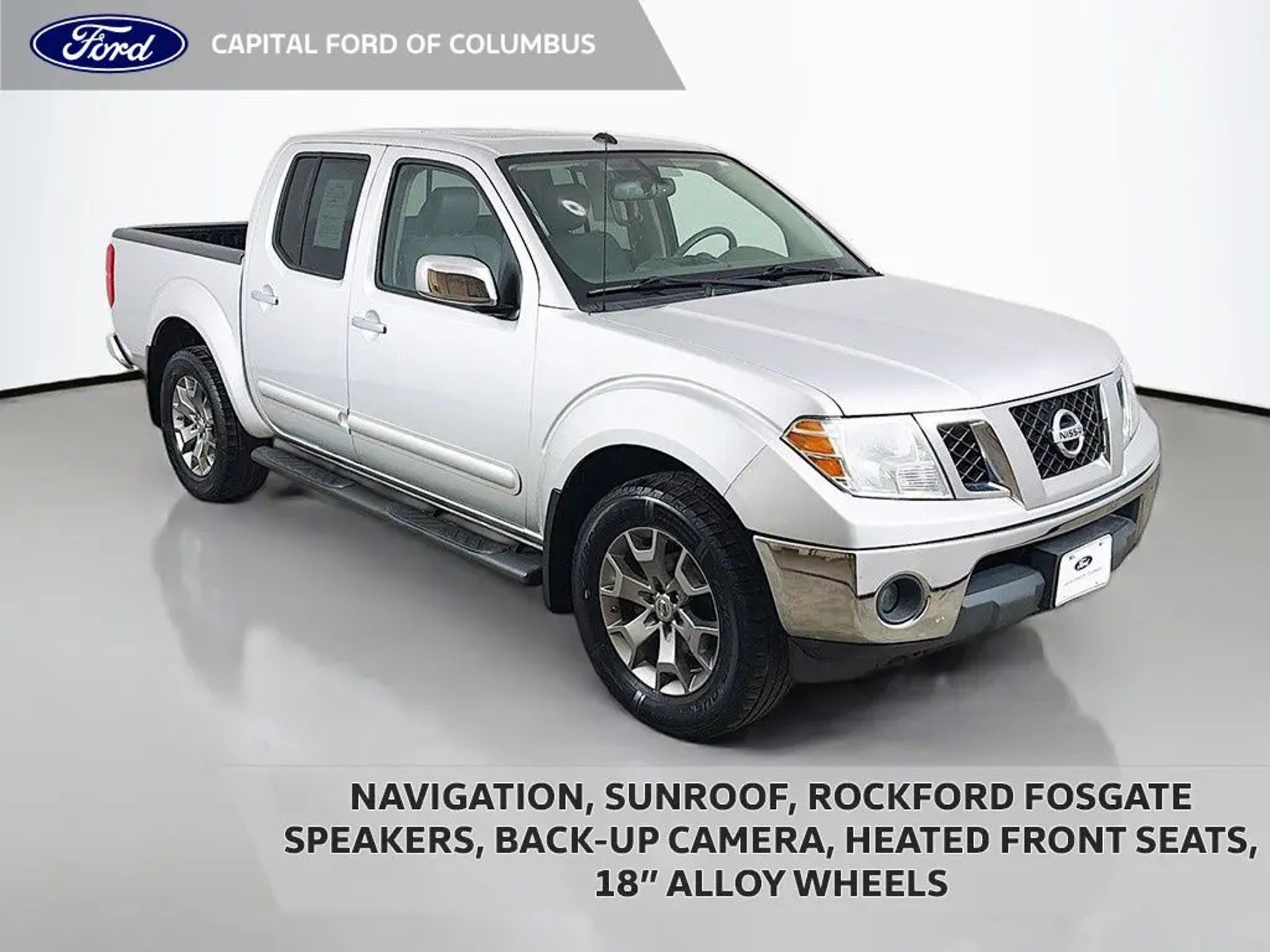 Discover the perfect blend of power, capability, and comfort in this 2019 Nissan Frontier SL. This rugged midsize pickup boasts a 4.0L V6 DOHC engine and 4WD, delivering the performance you need for your adventures. With an impressive array of premium features, this Frontier SL is ready to elevate your driving experience. "¢ Bluetooth "¢ Navigation System "¢ Radio: Rockford Fosgate Premium Audio System "¢ Automatic temperature control "¢ Front dual zone A/C "¢ Power driver seat "¢ Power moonroof "¢ Exterior Parking Camera Rear "¢ Rear Parking Sensors "¢ Heated front seats "¢ Power passenger seat "¢ 18 Alloy Wheels Slip into the plush leather-appointed seats and enjoy the convenience of the Frontier's user-friendly technology. Stay connected with the Bluetooth integration, and immerse yourself in the rich sound of the Rockford Fosgate premium audio system. The navigation system will guide you effortlessly to your destination, while the automatic climate control keeps you comfortable no matter the weather. Venture off the beaten path with confidence, thanks to the Frontier's 4WD capability and robust construction. The exterior parking camera and rear parking sensors make maneuvering a breeze, while the power moonroof brings the great outdoors in. Heated front seats and a power-adjustable driver's seat ensure you arrive refreshed, even on the longest drives. This 2019 Nissan Frontier SL is the perfect blend of utility and sophistication. With its impressive list of features and rugged capabilities, it's ready to take on any challenge you throw its way. Experience the difference for yourself "“ schedule a test drive today and discover the Frontier's uncompromising performance and refined comfort.
