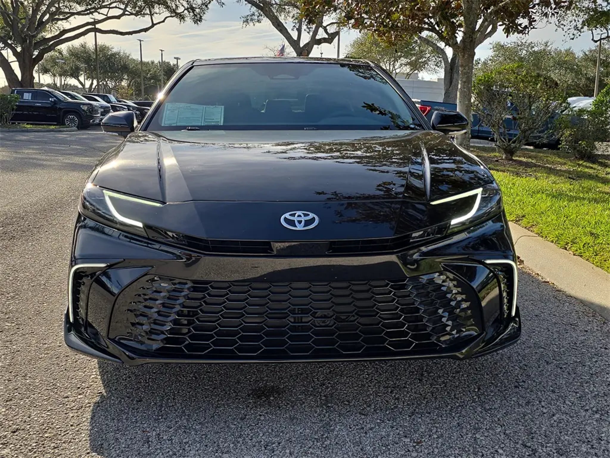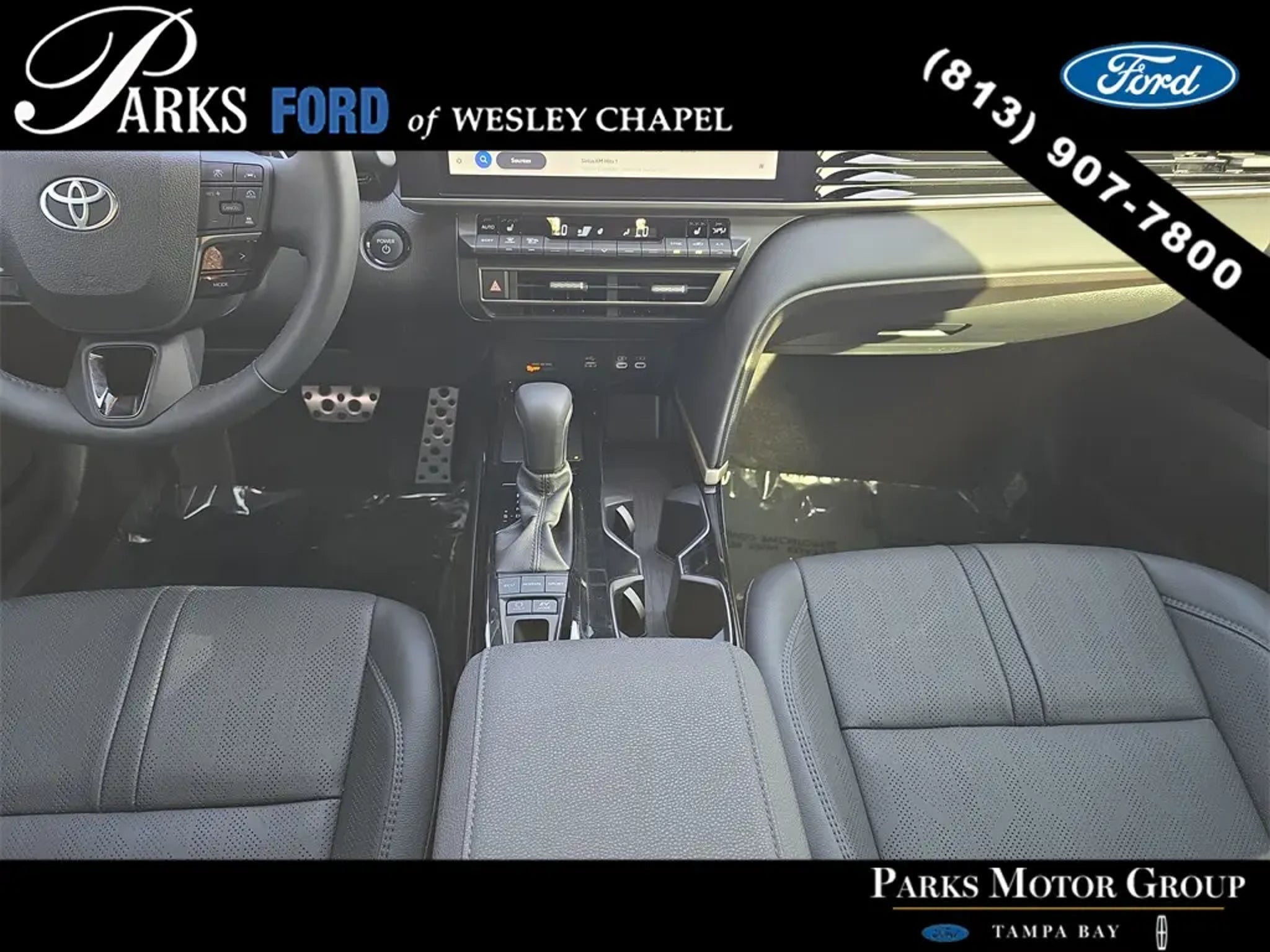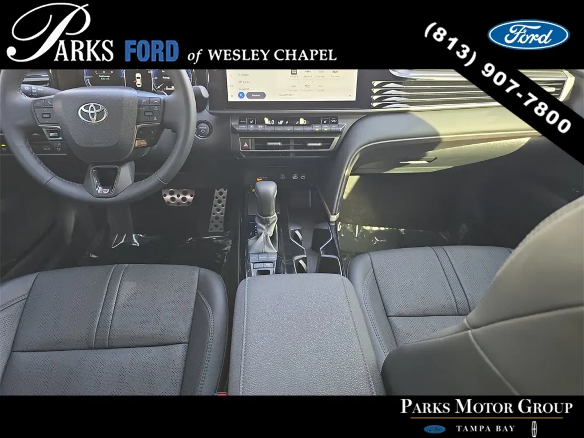 Striking sport-sedan design, advanced hybrid efficiency, and near-new condition define this 2025 Toyota Camry XSE Hybrid FWD, a midsize sedan engineered to deliver exceptional fuel economy, modern technology, and confident everyday performance. With just 3,409 miles and backed by Ford's Blue Certified program, this Camry offers added peace of mind through a comprehensive 139-point inspection, a 90-day/4,000-mile Comprehensive Limited Warranty, 24/7 Roadside Assistance, and fresh maintenance at delivery. Finished in Midnight Black Metallic with a Black interior, it presents a sleek, aggressive appearance well suited for drivers across Wesley Chapel, Tampa, Brandon, Clearwater, and St. Petersburg. Power comes from Toyota's proven 2.5L 4-cylinder hybrid powertrain paired with an electronically controlled continuously variable transmission. This advanced hybrid system delivers smooth acceleration, quiet operation, and outstanding efficiency, making it ideal for commuters and drivers seeking long-term operating savings without sacrificing responsiveness. Front-wheel drive provides predictable handling and a composed ride in both city traffic and highway cruising. This Camry is equipped with the XSE trim, giving it a sport-focused edge inside and out. Exterior enhancements include bold styling cues, LED projector headlamps with automatic high beams, LED brakelights, distinctive sport accents, and 19-inch dark gray metallic alloy wheels that give this sedan a confident, athletic stance. The panoramic glass roof with power tilt-and-slide functionality floods the cabin with natural light, enhancing the driving experience for both front and rear passengers. Inside the cabin, comfort and refinement are immediately apparent. Features include dual-zone automatic climate control, a heated leather-wrapped steering wheel, premium interior materials, ambient accent lighting, illuminated front door sills, and a thoughtfully designed driver cockpit that balances sportiness with everyday usability. The 60/40 split-folding rear seat provides flexibility for passengers and cargo alike, while generous rear legroom ensures comfort on longer drives. Technology is a strong highlight. This Camry features a large touchscreen infotainment system with Bluetooth connectivity, streaming audio, voice activation, steering-wheel-mounted controls, and a premium JBL sound system that delivers crisp, immersive audio throughout the cabin. A digital driver information display keeps essential vehicle data easily visible, while HomeLink garage door integration and smart key access add everyday convenience. Safety and driver-assist technology is comprehensive. Toyota Safety Sense includes forward collision mitigation, pedestrian detection, blind spot monitoring, evasion assist, lane support technology, adaptive cruise control, multiple airbags with full side-curtain coverage, tire pressure monitoring, and stability and traction control systems. These features work together to enhance driver awareness, reduce fatigue, and provide confidence during daily driving. Ride quality is smooth, quiet, and composed. The Camry Hybrid absorbs road imperfections with ease while maintaining confident handling and precise steering response. Regenerative braking enhances efficiency while delivering a natural brake feel, reinforcing the refined driving experience Toyota is known for. This vehicle is backed by the Parks Plus Program, which includes cabin sanitizer and antimicrobial protectant, adding an extra layer of cleanliness and comfort for you and your passengers. For drivers in Wesley Chapel, Tampa, Brandon, Clearwater, and St. Petersburg seeking a low-mileage, Blue Certified hybrid sedan with sporty XSE styling, outstanding efficiency, and advanced safety technology, this 2025 Toyota Camry XSE Hybrid FWD stands out as an exceptional opportunity.