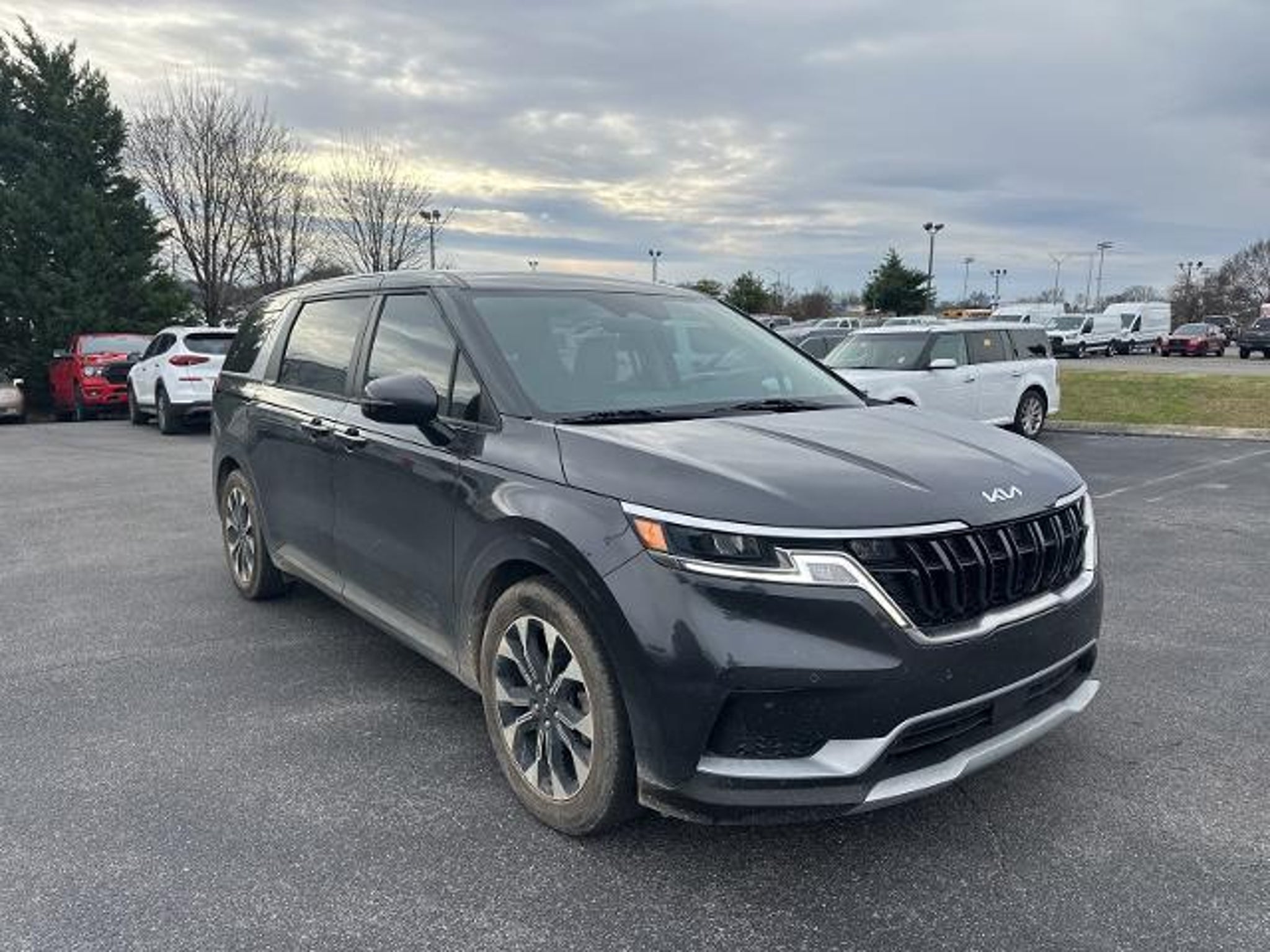 2024 Kia Carnival EX Carnival EX, 4D Passenger Van, V6, 8-Speed Automatic, FWD, Panthera Metal, Gray Artificial Leather, 10 Speakers, AM/FM radio: SiriusXM, Apple CarPlay & Android Auto, Auto High-beam Headlights, Brake assist, Bumpers: body-color, Compass, Cruise Control, Delay-off headlights, Driver door bin, Driver vanity mirror, Electronic Stability Control, Front reading lights, Fully automatic headlights, Heated door mirrors, Illuminated entry, Leather Shift Knob, Leather steering wheel, Navigation System, Outside temperature display, Overhead console, Panic alarm, Passenger vanity mirror, Power door mirrors, Radio: AM/FM/HD Audio System, Rear reading lights, Security system, Spoiler, Tachometer, Telescoping steering wheel, Tilt steering wheel, Trip computer, Turn signal indicator mirrors, 3.51 Axle Ratio, 3rd row seats: split-bench, 4-Wheel Disc Brakes, ABS brakes, Air Conditioning, Alloy wheels, Artificial Leather Seat Trim, Automatic temperature control, Dual front impact airbags, Dual front side impact airbags, Emergency communication system, Four wheel independent suspension, Front anti-roll bar, Front Bucket Seats, Front Center Armrest, Front dual zone A/C, Heated and Cooled Seats, Heated Front Bucket Seats, Knee airbag, Low tire pressure warning, Occupant sensing airbag, Overhead airbag, Passenger door bin, Power driver seat, Power steering, Power windows, Rear air conditioning, Rear anti-roll bar, Rear window defroster, Rear window wiper, Reclining 3rd row seat, Remote keyless entry, Speed-sensing steering, Split folding rear seat, Steering wheel mounted audio controls, Traction control, Variably intermittent wipers, Wheels: 7.5J x 19 Machine-Finished Alloy, (Must finance with Ford Motor Credit to receive online pricing - see dealer for details.) Proudly, Carnival EX, 4D Passenger Van, V6, 8-Speed Automatic, FWD, Panthera Metal, Gray Artificial Leather, 10 Speakers, AM/FM radio: SiriusXM, Apple CarPlay & Android Auto, Auto High-beam Headlights, Brake assist, Bumpers: body-color, Compass, Cruise Control, Delay-off headlights, Driver door bin, Driver vanity mirror, Electronic Stability Control, Front reading lights, Fully automatic headlights, Heated door mirrors, Illuminated entry, Leather Shift Knob, Leather steering wheel, Navigation System, Outside temperature display, Overhead console, Panic alarm, Passenger vanity mirror, Power door mirrors, Radio: AM/FM/HD Audio System, Rear reading lights, Security system, Spoiler, Tachometer, Telescoping steering wheel, Tilt steering wheel, Trip compu