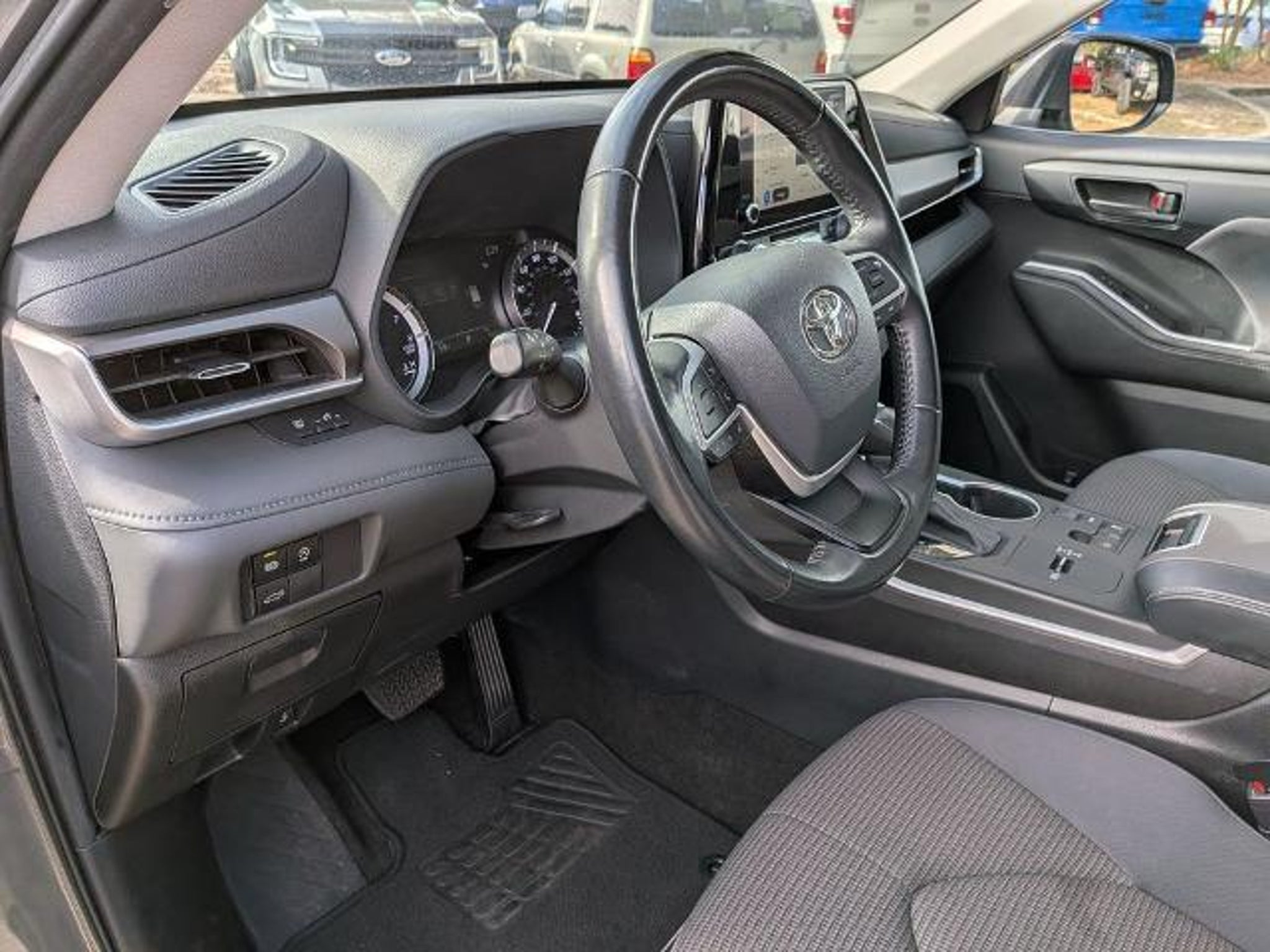 New Price! Here are more details on this Black 2023 Toyota Highlander with Gray Cloth interior trim at Sandy Sansing Dealerships. Come see the largest inventory on the Gulf coast. Backup Camera, Clean CarFax, Local Trade. 18 Painted Alloy Wheels, 3.329 Axle Ratio, 3rd row seats: split-bench, 4-Wheel Disc Brakes, 6 Speakers, ABS brakes, Air Conditioning, Alloy wheels, AM/FM radio: SiriusXM, Apple CarPlay/Android Auto, Auto High-beam Headlights, Automatic temperature control, Brake assist, Bumpers: body-color, Delay-off headlights, Driver door bin, Driver vanity mirror, Dual front impact airbags, Dual front side impact airbags, Electronic Stability Control, Emergency communication system: Safety Connect (up to 10-year trial subscription), Exterior Parking Camera Rear, Fabric Seat Trim, Four wheel independent suspension, Front anti-roll bar, Front Bucket Seats, Front Center Armrest, Front dual zone A/C, Front fog lights, Front reading lights, Fully automatic headlights, Heated door mirrors, Illuminated entry, Knee airbag, Leather Shift Knob, Leather steering wheel, Low tire pressure warning, Occupant sensing airbag, Outside temperature display, Overhead airbag, Overhead console, Panic alarm, Passenger door bin, Passenger vanity mirror, Power door mirrors, Power driver seat, Power Liftgate, Power steering, Power windows, Radio: 8 Toyota Audio Multimedia, Rear air conditioning, Rear anti-roll bar, Rear reading lights, Rear seat center armrest, Rear window defroster, Rear window wiper, Reclining 3rd row seat, Remote keyless entry, Security system, Speed control, Speed-sensing steering, Split folding rear seat, Spoiler, Steering wheel mounted audio controls, Tachometer, Telescoping steering wheel, Tilt steering wheel, Traction control, Trip computer, Turn signal indicator mirrors, and Variably intermittent wipers.