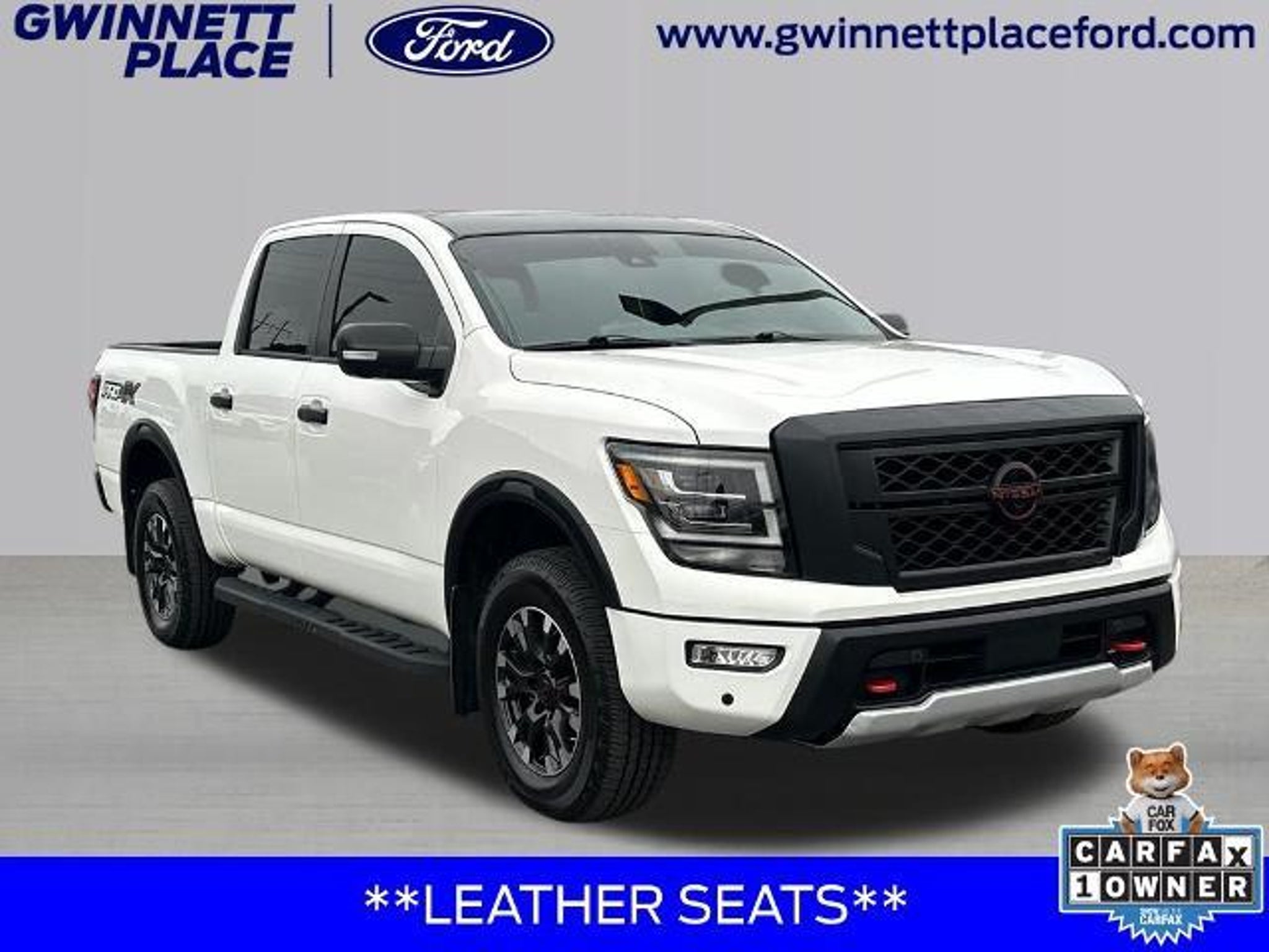 2023 Nissan Titan PRO-4X **PANORAMIC SUNROOF**, **CLEAN CARFAX - ONE OWNER**, **LEATHER SEATS**, **NAVIGATION**, **BLUETOOTH**, **REAR VIEW CAMERA**, **HEATED SEATS**, **COOLED SEATS**, **REMOTE START**, **PUSH BUTTON START**, **FOUR WHEEL DRIVE**, **APPLE CARPLAY**, **ANDROID AUTO**, **BLIND SPOT MONITOR**, **LANE DEPARTURE WARNING**, **LANE KEEP ASSIST**, 4WD. At Gwinnett Place Ford we pride ourselves on being the best and most convenient location in metro Atlanta for all your Pre-Owned needs. Each vehicle goes through a comprehensive inspection before making it to our front lot, ensuring our vehicles meet the highest standards for quality. As the #1 Ford Truck dealer in Gwinnett County, we specialize in trucks and carry a wide variety of makes and models. Our courteous and diverse staff at Gwinnett Place Ford is ready to help. As a diverse staff, we are ready to make the buying process easier for our Spanish, Korean, Bosnian and Japanese speakers. We speak other languages, also! Just ask and we will match you with a staff member to help. We want your trade! We regularly beat our local competitors to get you the best value for your trade-in. We know everyone?s life is busy! To keep you moving, we have free wi-fi in our showroom and customer lounge, so you don?t miss a beat. We can?t wait to see you and look forward to serving you, as we?ve been doing for over 30 years! Please call today to set up an appointment, your vehicle of choice will be cleaned and waiting for you!