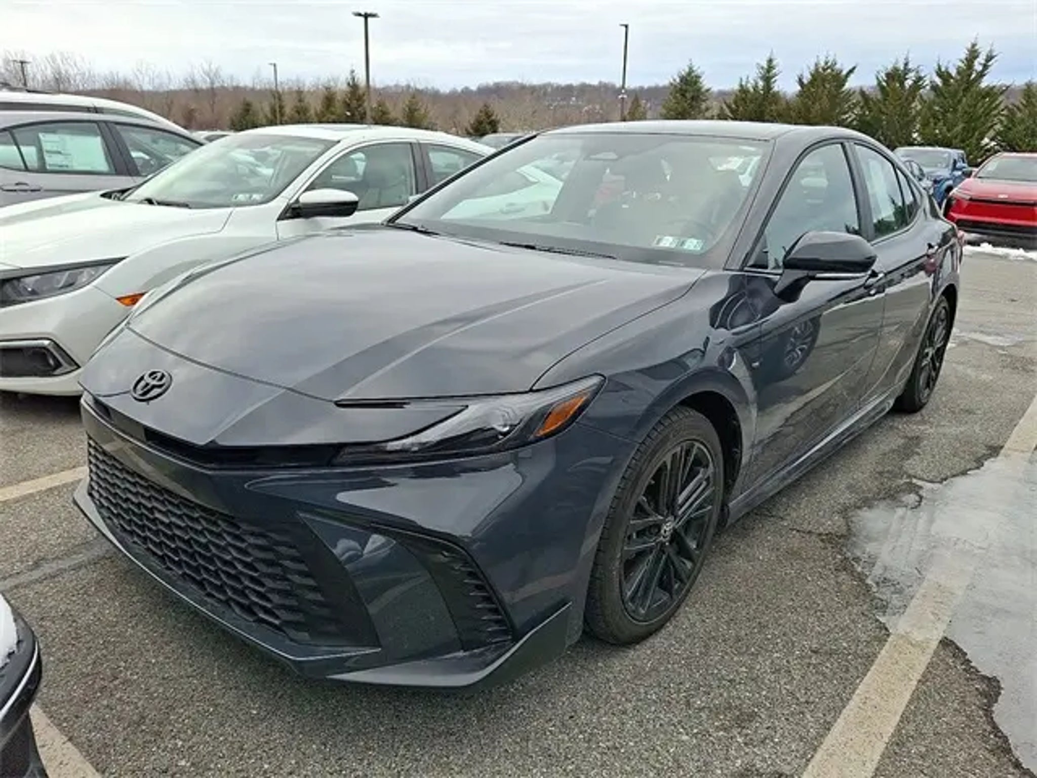 2025 Toyota Camry in charming Underground!! Includes . Just 8458 miles on this perfect Intermediate. Haven't you been looking for a Camry that will make your neighbors drool with envy? When you go somewhere, the rugged eCVT in this Car keeps you rollin' smoothly and efficiently down the road. On top of it all, this vehicle is specially-priced and definitely won't break your budget due to enormous mark-downs that are available now!! TSRP is not the sales price and does not include taxes, tags, title, adjusted market value, dealer installed equipment (if applicable), and $490 dealer documentary fee. Includes Del Protection Package: $995.00 includes interior,exterior and touchscreen protection. Ask a sales associate for details. Toyota Gold Certified Details: * 160 Point Inspection * Transferable Warranty * Warranty Deductible: $0 * Powertrain Limited Warranty: 84 Month/100,000 Mile (whichever comes first) from TCUV purchase date * Roadside Assistance * Roadside Assistance for 7 Year / 100,000 Mile. Standard New-Car Financing Rates Available. Warranty honored at over 1,400 Toyota dealers in the continental U.S. & Canada. Trade-ins accepted. Trouble-free handling of your transaction, including DMV paperwork * Vehicle History * Limited Warranty: 12 Month/12,000 Mile Limited Comprehensive Warranty: 12 Month/12,000 Mile (whichever comes first) from certified purchase date Visit Us Today. Stop by Del Toyota Inc. Located at 2945 E. Lincoln Hwy., Thorndale, PA 19372 for a quick visit and a great vehicle! Questions . Here is a list of the vehicles features Camry SE, Toyota Gold Certified Certified, 4D Sedan, 2.5L 4-Cylinder 16V DOHC, eCVT, FWD, Underground, Boulder w/SofTex and Fabric Seat Trim, 4-Wheel Disc Brakes, 6 Speakers, ABS brakes, Air Conditioning, Alloy wheels, AM/FM radio: SiriusXM, Apple CarPlay/Android Auto, Auto High-beam Headlights, Automatic temperature control, Brake assist, Bumpers: body-color, Delay-off headlights, Driver door bin, Driver vanity mirror, Dual front impact airbags, Dual front side impact airbags, Electronic Stability Control, Emergency communication system: Safety Connect (up to 10-year trial subscription), Exterior Parking Camera Rear, Four wheel independent suspension, Front anti-roll bar, Front Bucket Seats, Front Center Armrest, Front dual zone A/C, Front reading lights, Fully automatic headlights, Heated door mirrors, Illuminated entry, Knee airbag, Leather Shift Knob, Leather steering wheel, Low tire pressure warning, Occupant sensing airbag, Outside temperature display, Overhead airbag, Overhead console, Panic alarm, Passenger door bin, Passenger vanity mirror, Power door mirrors, Power driver seat, Power steering, Power windows, Radio data system, Radio: Toyota Audio Multimedia w/12.3 Touchscreen, Radio: Toyota Audio Multimedia w/8 Touchscreen, Rear anti-roll bar, Rear reading lights, Rear seat center armrest, Rear side impact airbag, Rear window defroster, Remote keyless entry, Security system, SofTex & Fabric Seat Trim, Speed control, Speed-sensing steering, Split folding rear seat, Spoiler, Steering wheel mounted audio controls, Telescoping steering wheel, Tilt steering wheel, Traction control, Trip computer, Turn signal indicator mirrors, Variably intermittent wipers, and Wheels: 18 Black-Finished Alloy TSRP is not the sales price and does not include taxes, tags, title, adjusted market value, dealer installed equipment (if applicable), and $490 dealer documentary fee.