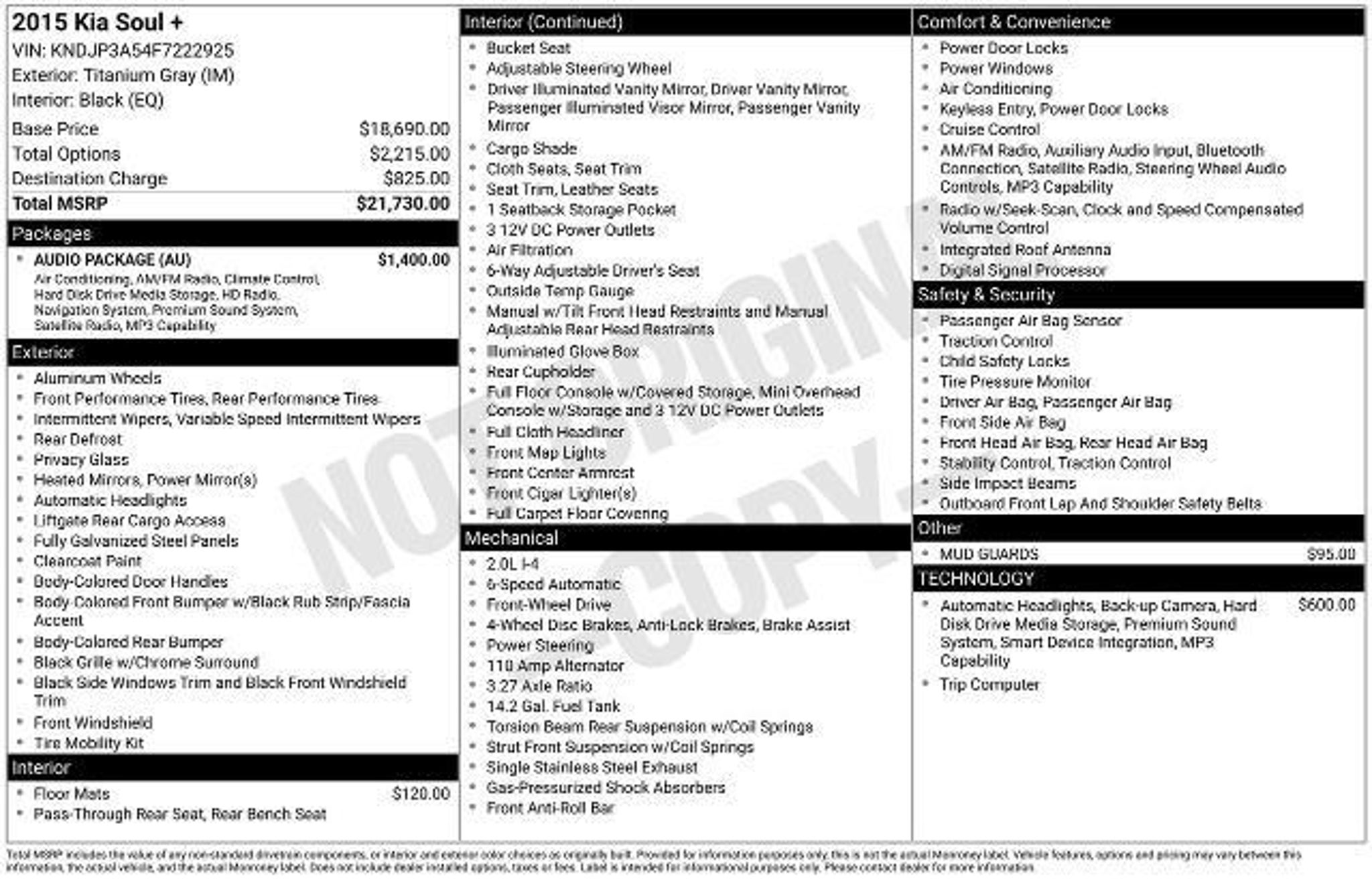 2015 Kia Soul Plus **NAVIGATION**, **BLUETOOTH**, **REAR VIEW CAMERA**, **ALLOY WHEELS**. At Gwinnett Place Ford we pride ourselves on being the best and most convenient location in metro Atlanta for all your Pre-Owned needs. Each vehicle goes through a comprehensive inspection before making it to our front lot, ensuring our vehicles meet the highest standards for quality. As the #1 Ford Truck dealer in Gwinnett County, we specialize in trucks and carry a wide variety of makes and models. Our courteous and diverse staff at Gwinnett Place Ford is ready to help. As a diverse staff, we are ready to make the buying process easier for our Spanish, Korean, Bosnian and Japanese speakers. We speak other languages, also! Just ask and we will match you with a staff member to help. We want your trade! We regularly beat our local competitors to get you the best value for your trade-in. We know everyoneâs life is busy! To keep you moving, we have free wi-fi in our showroom and customer lounge, so you donât miss a beat. We canât wait to see you and look forward to serving you, as weâve been doing for over 30 years! Please call today to set up an appointment, your vehicle of choice will be cleaned and waiting for you! 23/31 City/Highway MPG Awards: * JD Power Initial Quality Study (IQS), Initial Quality Study (IQS) * 2015 KBB.com Best Buy Awards Finalist * 2015 KBB.com 10 Coolest New Cars Under $18,000 * 2015 KBB.com 15 Best Family Cars Reviews: * Whether you desire value, practicality, stylish looks or surprising technology and amenities in your economy hatchback, the 2015 Soul checks all the boxes. The new plug-in Kia Soul EV, meanwhile, offers all that in an electric car with an EPA-estimated range of 93 miles. Source: KBB.com * Loads of available features; attractive cabin with user-friendly controls and ample passenger space; long warranty; excellent crash test scores. Source: Edmunds