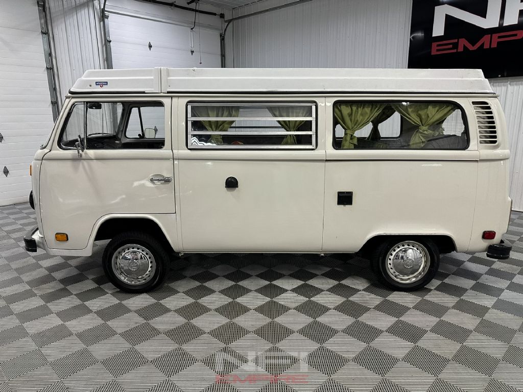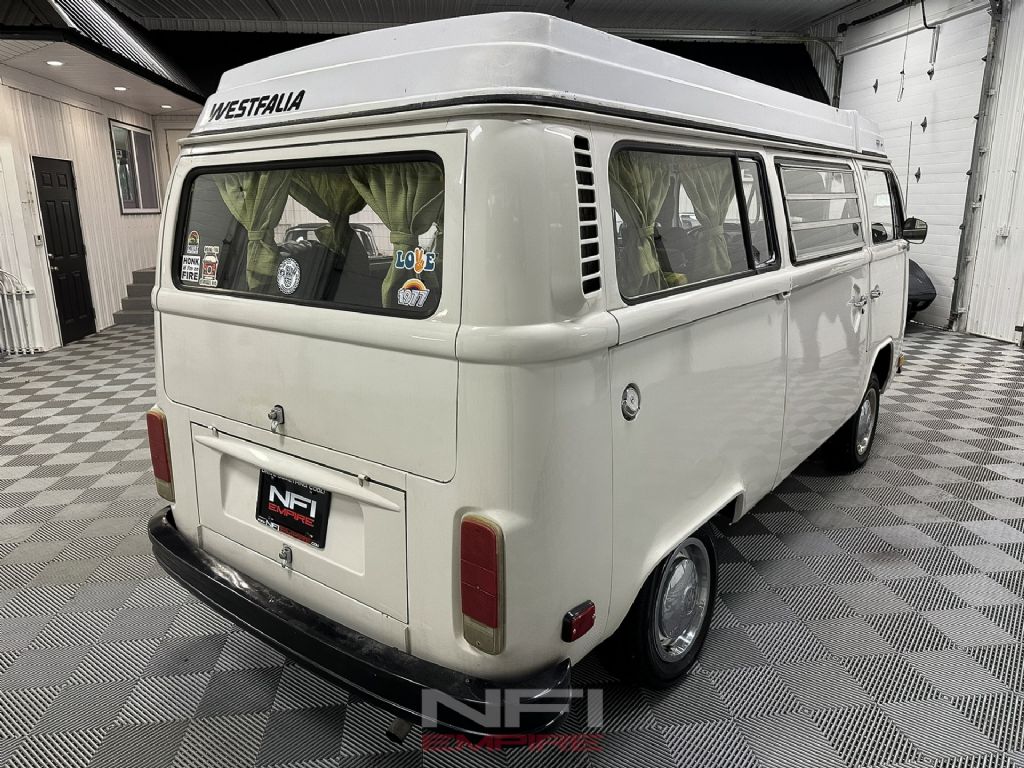 This 1977 Volkswagen Type II Westfalia Camper brings together the charm of the classic VW Bus with the practicality of a factory Westfalia-Werke camper conversion. Powered by its 1.8L air-cooled flat-four with dual carburetors and paired to a 4-speed manual transmission, it delivers the honest, simple driving experience these vans are known for. The braking system consists of front discs and rear drums, consistent with late-'70s VW setup.