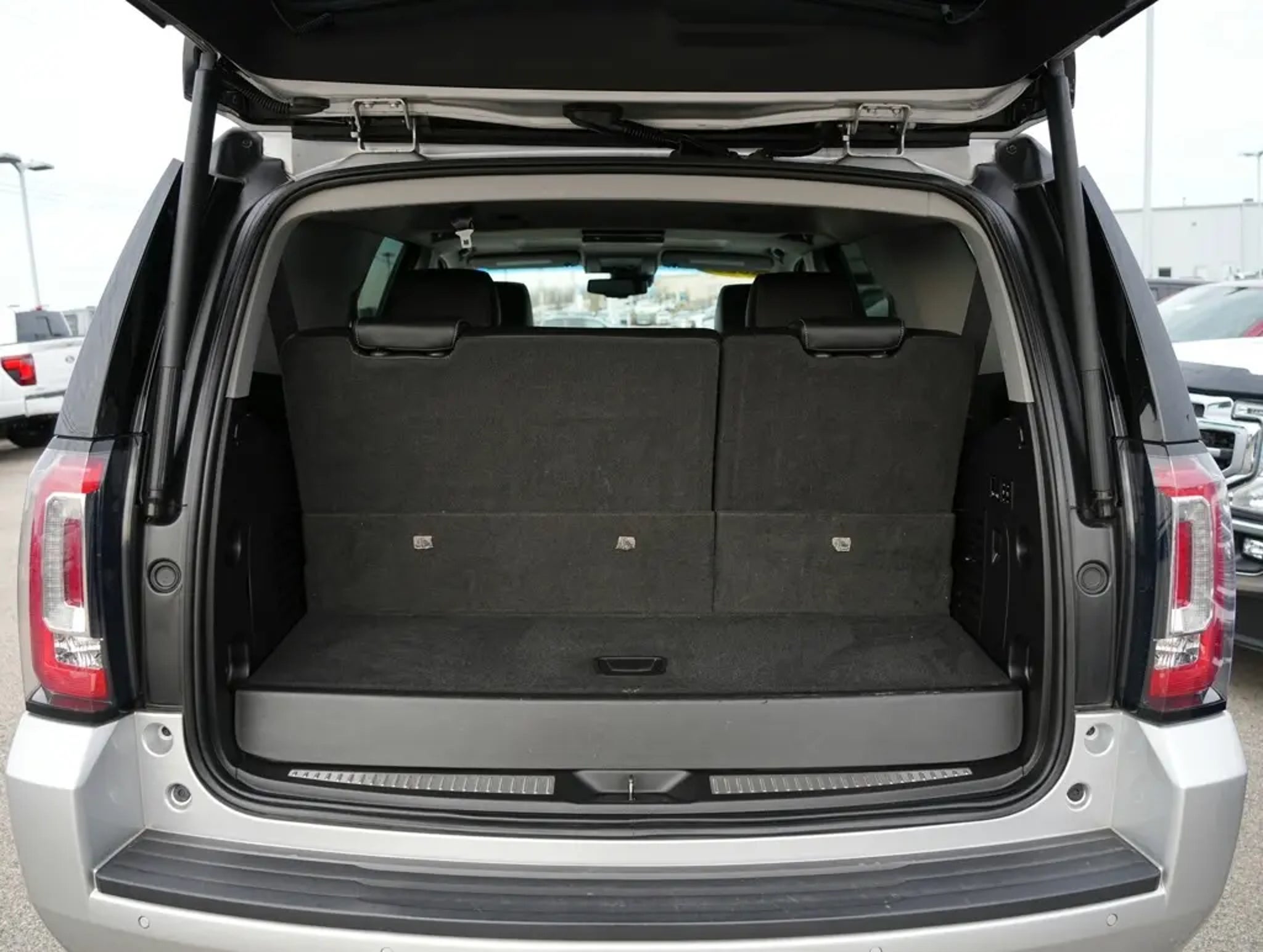 Quicksilver Metallic 2020 GMC Yukon SLT 4WD 6-Speed Automatic Electronic with Overdrive EcoTec3 5.3L V8 4WD, 3.08 Rear Axle Ratio, 3rd row seats: split-bench, 4-Wheel Antilock Disc Brakes, 4-Wheel Disc Brakes, 5 Auxiliary 12-volt Power Outlets, 9 Speakers, ABS brakes, Adjustable pedals, Air Conditioning, Alloy wheels, AM/FM radio: SiriusXM, Apple CarPlay/Android Auto, Auto High-beam Headlights, Auto-dimming door mirrors, Auto-dimming Rear-View mirror, Automatic Emergency Braking, Automatic temperature control, Black Assist Steps w/Chrome Strip, Bose Premium 9-Speaker System, Brake assist, Bumpers: body-color, CD Player, CD player, Compass, Delay-off headlights, Driver door bin, Driver vanity mirror, Dual front impact airbags, Dual front side impact airbags, Electronic Stability Control, Emergency communication system: OnStar and GMC connected services capable, Enhanced Driver Alert Package, Exterior Parking Camera Rear, Forward Collision Alert, Front anti-roll bar, Front Bucket Seats, Front Center Armrest, Front dual zone A/C, Front fog lights, Front reading lights, Front wheel independent suspension, Full-Feature Reclining Bucket Seats, Fully automatic headlights, Garage door transmitter, Hands Free Power Programmable Rear Liftgate, Heated & Ventilated Driver & Front Passenger Seats, Heated door mirrors, Heated front seats, Heated Leather-Wrapped Steering Wheel, Heated rear seats, Heated steering wheel, Illuminated entry, Inside Rear-View Auto-Dimming Mirror, IntelliBeam Automatic High Beam On/Off, Lane Change Alert w/Side Blind Zone Alert, Lane Keep Assist w/Lane Departure Warning, Leather steering wheel, Low tire pressure warning, Memory Package, Memory seat, Occupant sensing airbag, Open Road Package, Outside temperature display, Overhead airbag, Overhead console, Panic alarm, Passenger door bin, Passenger vanity mirror, Passive Entry System, Pedal memory, Perforated Leather-Appointed Seat Trim, Power door mirrors, Power driver seat, Power Liftgate, Power passenger seat, Power Release 2nd Row 60/40 Split-Folding Bench Seat, Power steering, Power Tilt & Telescopic Steering Column, Power Tilt-Sliding Sunroof w/Express-Open/Close, Power windows, Power-Adjustable Pedals For Accelerator & Brake, Preferred Equipment Group 4SA, Premium audio system: IntelliLink, Premium Smooth Ride Suspension Package, Push Button Keyless Start, Radio: AM/FM/SiriusXM, Radio: AM/FM/SiriusXM w/Navigation, Rain sensing wipers, Rear air conditioning, Rear anti-roll bar, Rear Cross Traffic Alert, Rear reading lights, Rear Seat Blu-Ray/DVD Entertainment System, Rear seat center armrest, Rear window defroster, Rear window wiper, Remote Keyless Entry, Remote keyless entry, Roof rack: rails only, Security system, SiriusXM NavTraffic, SiriusXM Radio, Speed control, Speed-sensing steering, Split folding rear seat, Spoiler, Steering wheel memory, Steering wheel mounted audio controls, Tachometer, Telescoping steering wheel, Tilt steering wheel, Traction control, Trip computer, Turn signal indicator mirrors, Universal Home Remote, Variably intermittent wipers, Ventilated front seats, Voltmeter, Wheels: 18 x 8.5 Bright Machined Aluminum, 4WD. We are a family owned and operated business that began in 1915. We are now in our 4th generation of family ownership. As a family-run business, it's never been about gimmicks to get customers. We believe in earning our business the hard way - the only way - with referrals and satisfied customers. We're very proud of our business and dedication to superior customer service, but we couldn't have done it without our customers. Recent Arrival! Odometer is 21045 miles below market average! We are open online 24/7! Get pre-approved, receive a prompt trade evaluation and purchase from the comfort of your home. We will do the rest. Within a 100 mile radius, we offer free delivery to your door for any new or pre-owned vehicle. Call us, message us via online chat or email us to get started! Thank you for allowing our family the