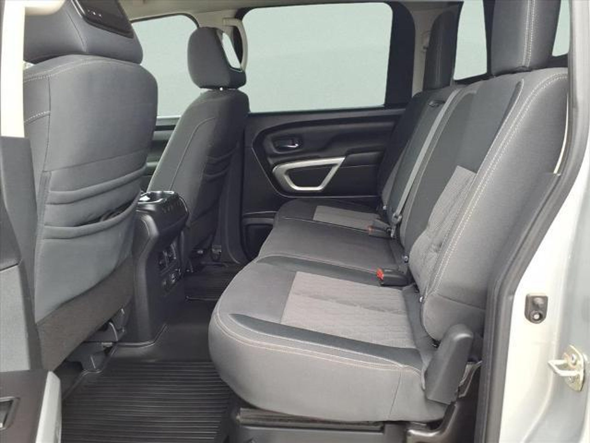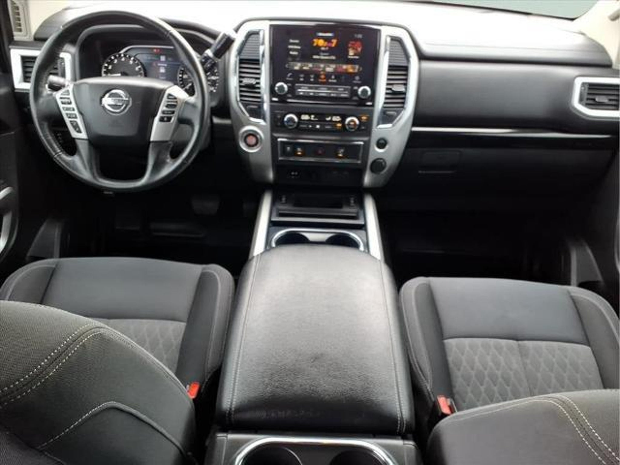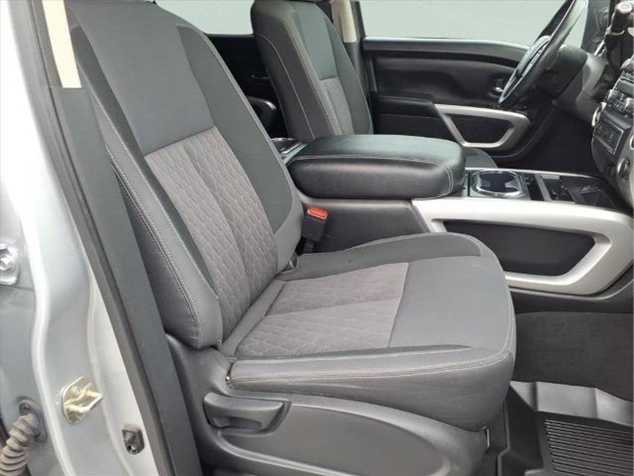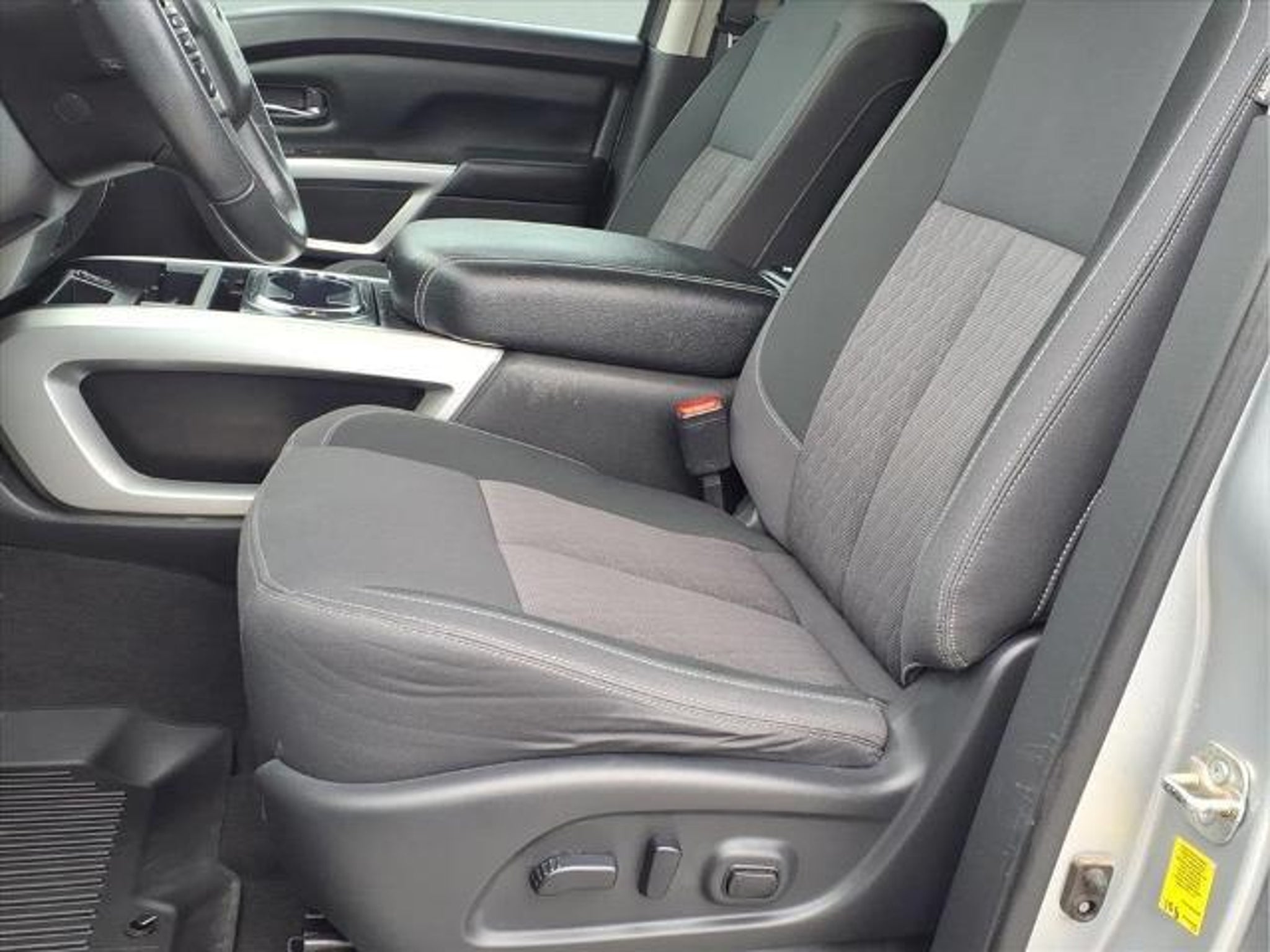 This 2021 Nissan Titan SV in Brilliant Silver Metallic comes with the following features: 5.6L V8 DOHC 32V 400hp 9-Speed Automatic RWD SV Convenience Package (110V/12V Outlets In Back Of Center Console, 2 Illuminated USB-A Ports In Back Of Center Console, Auto-Dimming Rear-View Mirror, Chrome Interior Door Locks, Convex Spotter Mirror, Dedicated Cell Phone Holder, Dual Zone Automatic HVAC, Front & Rear Parking Sensors, Heated Front Captain's Chairs, Intelligent Key System, Leather-Wrapped Steering Wheel, Power Sliding Rear Window w/Defogger, Radio: NissanConnect w/Navigation, Rear HVAC Vents, Remote Engine Start on Key Fob, and Traffic Sign Recognition (TSR)), SV Tow Package (4-Pin/7-Pin Wiring Harness Connector (Rear Bumper), Black Front Tow Hooks, Heated Manually Extendable Tow Mirrors, Puddle Lamps, Receiver Hitch, Trailer Brake Controller, and Trailer Light Check Function On Key Fob), SV Utility Package (110V Outlet in Bed, Auto-Dimming Rearview Mirror w/UGDO, Electronic Locking Tailgate, Flat Floor Function w/Tie Down Hooks, LED Tailgate Area Illumination, LED Under Rail Bed Lighting, Rain Sensing Wipers, Rear Utility Bed Step, Spray-On Bedliner, Universal Garage Door Opener, and Utilitrack System w/4 Tie-Down Cleats), 3.692 Axle Ratio, 4-Wheel Disc Brakes, 6 Speakers, ABS brakes, Air Conditioning, Alloy wheels, AM/FM radio: SiriusXM, Auto High-beam Headlights, Blind Spot Warning, Brake assist, Bumpers: chrome, Carpet Floor Mats (L95), Cloth Seat Trim, Driver door bin, Driver vanity mirror, Dual front impact airbags, Dual front side impact airbags, Electronic Stability Control, Emergency communication system: NissanConnect Services, Front anti-roll bar, Front Center Armrest w/Storage, Front reading lights, Front Split Bench Seat (40/20/40), Front wheel independent suspension, Fully automatic headlights, Heated door mirrors, Illuminated entry, Knee airbag, Loop Side Steps, Low tire pressure warning, NissanConnect featuring Apple CarPlay and Android Auto, Occupant sensing airbag, Outside temperature display, Overhead airbag, Overhead console, Panic alarm, Passenger door bin, Passenger vanity mirror, Power door mirrors, Power steering, Power windows, Radio data system, Radio: NissanConnect AM/FM, Rear anti-roll bar, Rear Bumper Step w/Electronic Tailgate Lock, Rear Parking Sensors, Rear seat center armrest, Rear Seat Entertainment (DISC), Rear step bumper, Rear window defroster, Remote keyless entry, Security system, Speed control, Speed-sensing steering, Speed-Sensitive Wipers, Splash Guards, Split fol
