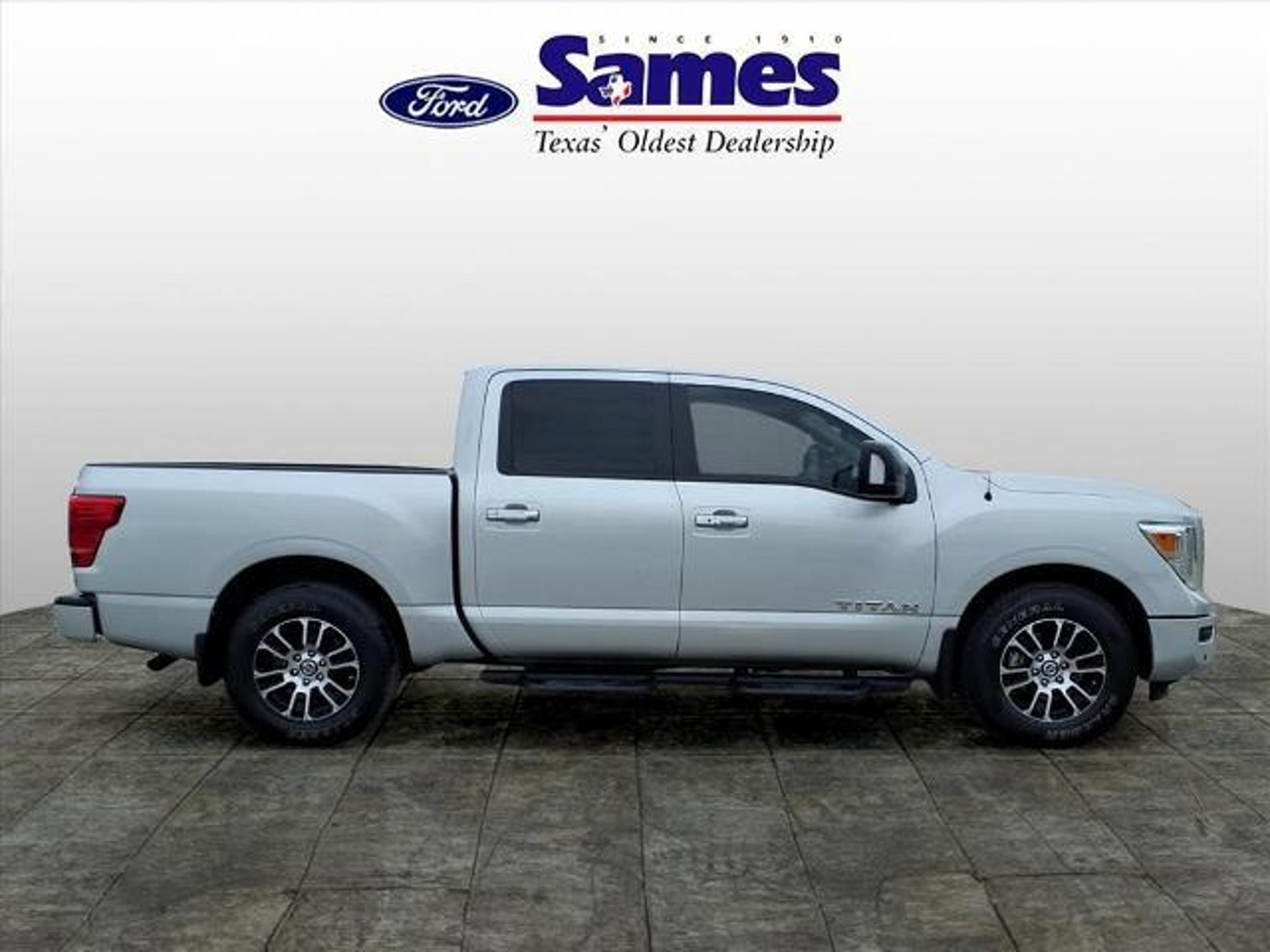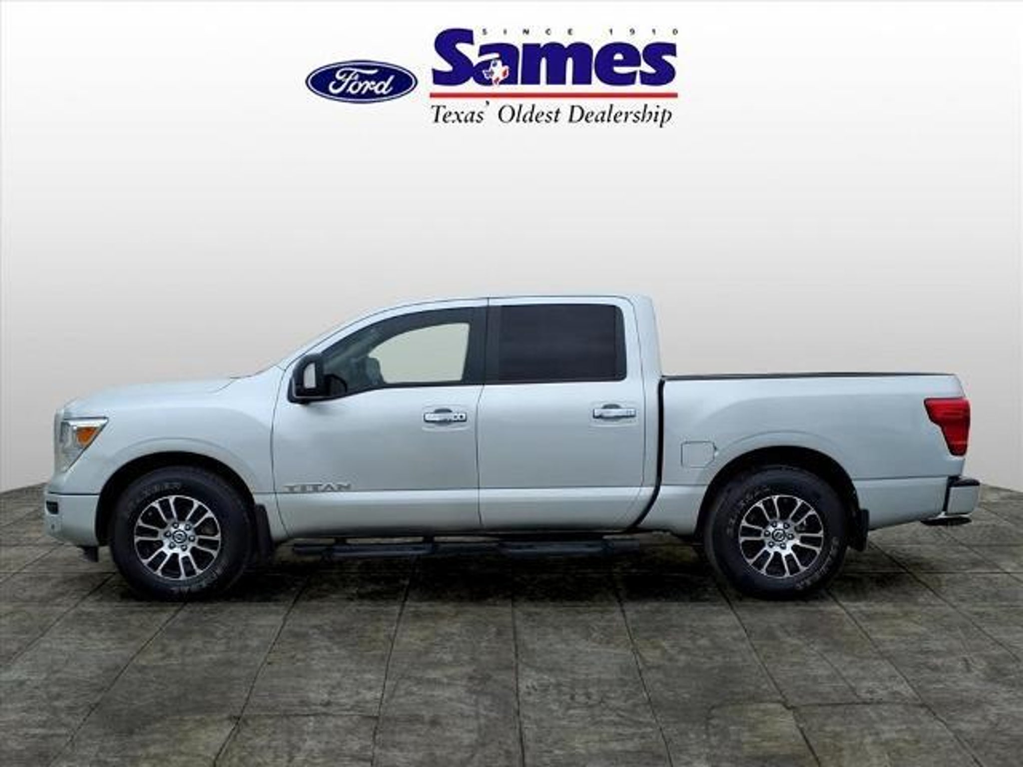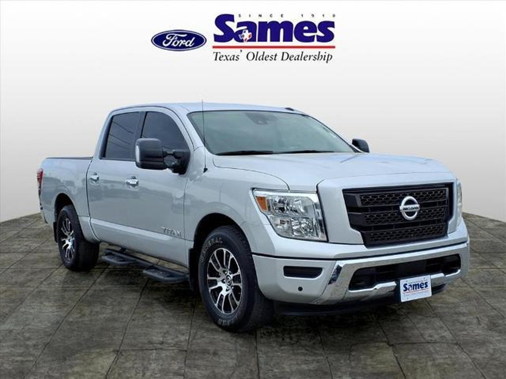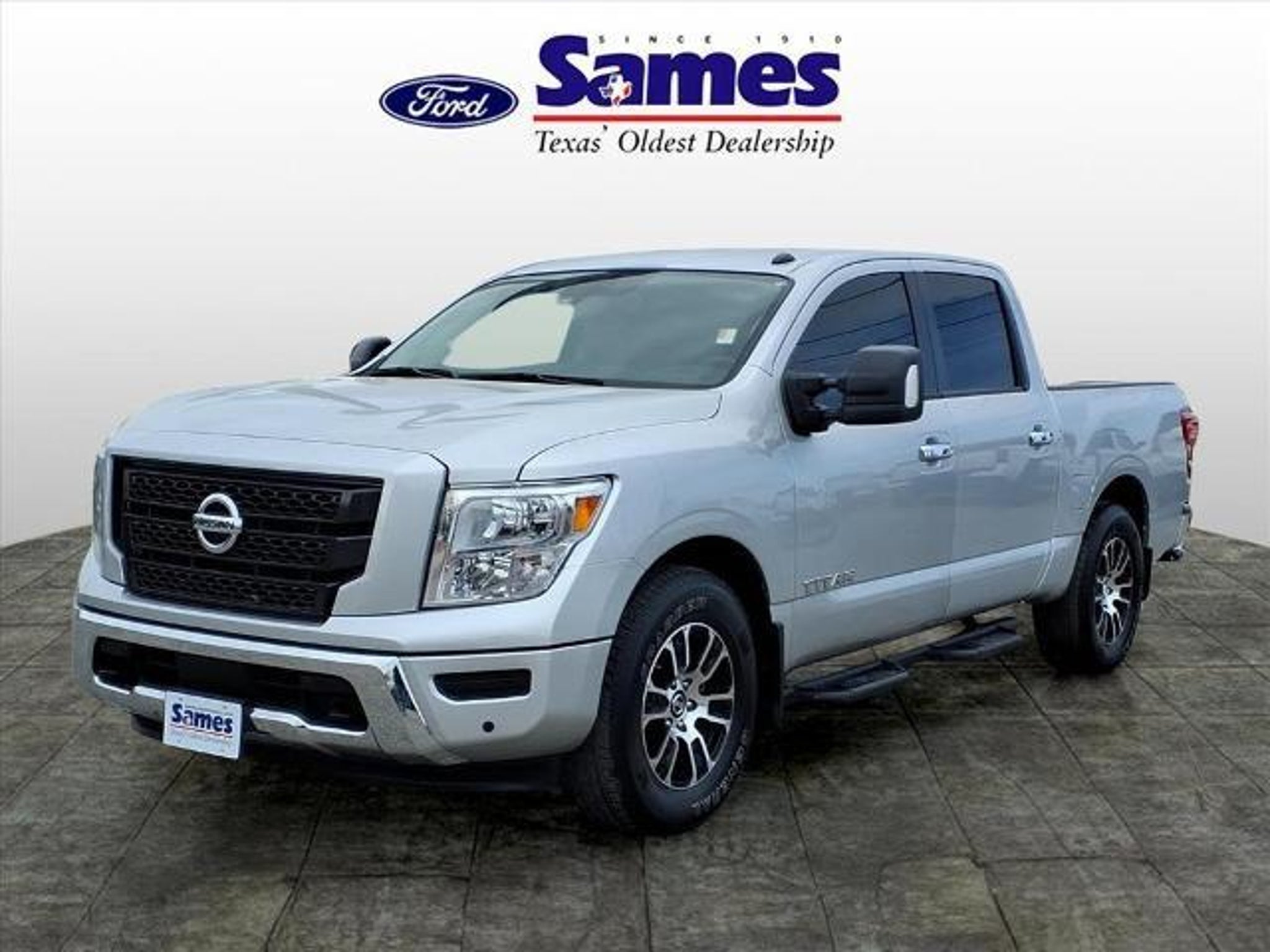 This 2021 Nissan Titan SV in Brilliant Silver Metallic comes with the following features: 5.6L V8 DOHC 32V 400hp 9-Speed Automatic RWD SV Convenience Package (110V/12V Outlets In Back Of Center Console, 2 Illuminated USB-A Ports In Back Of Center Console, Auto-Dimming Rear-View Mirror, Chrome Interior Door Locks, Convex Spotter Mirror, Dedicated Cell Phone Holder, Dual Zone Automatic HVAC, Front & Rear Parking Sensors, Heated Front Captain's Chairs, Intelligent Key System, Leather-Wrapped Steering Wheel, Power Sliding Rear Window w/Defogger, Radio: NissanConnect w/Navigation, Rear HVAC Vents, Remote Engine Start on Key Fob, and Traffic Sign Recognition (TSR)), SV Tow Package (4-Pin/7-Pin Wiring Harness Connector (Rear Bumper), Black Front Tow Hooks, Heated Manually Extendable Tow Mirrors, Puddle Lamps, Receiver Hitch, Trailer Brake Controller, and Trailer Light Check Function On Key Fob), SV Utility Package (110V Outlet in Bed, Auto-Dimming Rearview Mirror w/UGDO, Electronic Locking Tailgate, Flat Floor Function w/Tie Down Hooks, LED Tailgate Area Illumination, LED Under Rail Bed Lighting, Rain Sensing Wipers, Rear Utility Bed Step, Spray-On Bedliner, Universal Garage Door Opener, and Utilitrack System w/4 Tie-Down Cleats), 3.692 Axle Ratio, 4-Wheel Disc Brakes, 6 Speakers, ABS brakes, Air Conditioning, Alloy wheels, AM/FM radio: SiriusXM, Auto High-beam Headlights, Blind Spot Warning, Brake assist, Bumpers: chrome, Carpet Floor Mats (L95), Cloth Seat Trim, Driver door bin, Driver vanity mirror, Dual front impact airbags, Dual front side impact airbags, Electronic Stability Control, Emergency communication system: NissanConnect Services, Front anti-roll bar, Front Center Armrest w/Storage, Front reading lights, Front Split Bench Seat (40/20/40), Front wheel independent suspension, Fully automatic headlights, Heated door mirrors, Illuminated entry, Knee airbag, Loop Side Steps, Low tire pressure warning, NissanConnect featuring Apple CarPlay and Android Auto, Occupant sensing airbag, Outside temperature display, Overhead airbag, Overhead console, Panic alarm, Passenger door bin, Passenger vanity mirror, Power door mirrors, Power steering, Power windows, Radio data system, Radio: NissanConnect AM/FM, Rear anti-roll bar, Rear Bumper Step w/Electronic Tailgate Lock, Rear Parking Sensors, Rear seat center armrest, Rear Seat Entertainment (DISC), Rear step bumper, Rear window defroster, Remote keyless entry, Security system, Speed control, Speed-sensing steering, Speed-Sensitive Wipers, Splash Guards, Split fol
