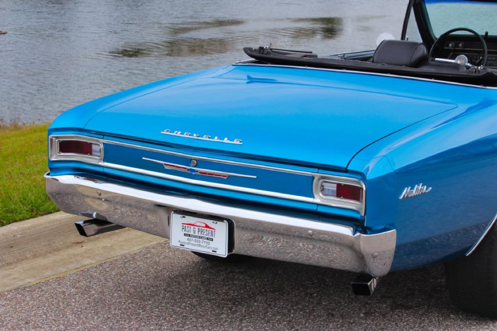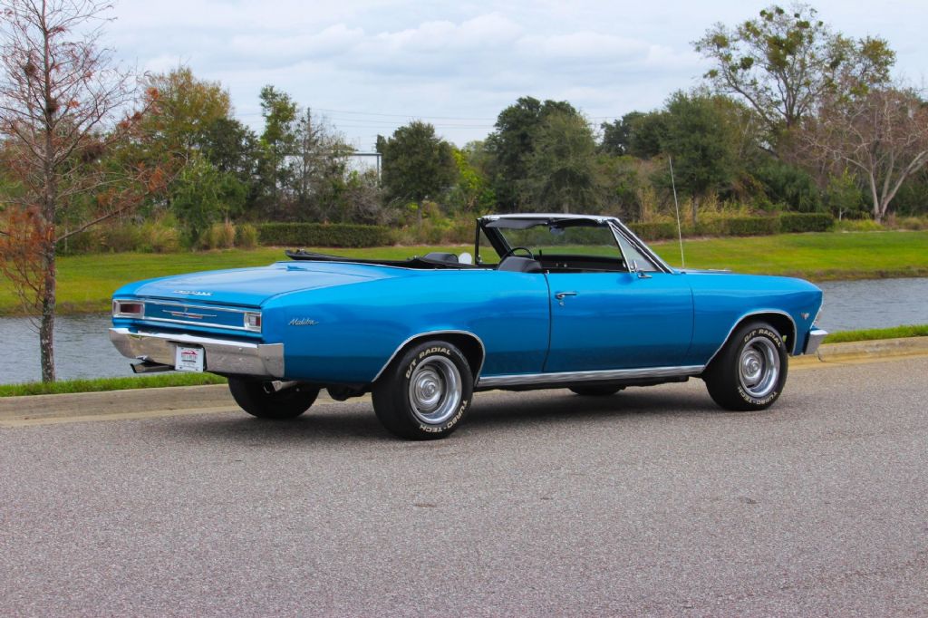 1966 Chevrolet Chevelle Malibu Convertible, Marina Blue, Fresh Restoration. This 1966 Chevrolet Chevelle Malibu Convertible is a timeless A-body drop-top finished in beautiful new Marina Blue paint, a color that perfectly complements the Chevelles clean lines and classic muscle-era styling. Fresh from restoration with less than 500 miles driven since completion, this Malibu presents as a very clean and well-sorted classic convertible ready to be enjoyed. Power comes from a recently rebuilt V8 engine, paired with a recently rebuilt Turbo 350 automatic transmission. The combination delivers smooth acceleration and dependable performance, making this Chevelle easy and enjoyable to drive. Headers and a great-sounding dual exhaust system give the car a strong, authoritative tone without being overbearing. The new Marina Blue paint shows beautifully and gives the car a vibrant, fresh appearance that highlights the Chevelles iconic mid-1960s styling. The black convertible top is in great condition and operates as it should. Inside, the car features a black bench seat interior that has been recently redone and is very nice throughout, offering a clean, comfortable, and period-correct appearance. Power steering and power brakes add to the overall drivability, making this Chevelle a relaxed cruiser whether around town or on longer drives. It rides on 15-inch Rally wheels fitted with white letter radial tires, completing the classic muscle car look. With less than 500 miles since restoration, this Chevelle Malibu Convertible runs and drives beautifully and represents a great opportunity to own a freshly restored, highly desirable 1960s convertible that is ready for cruising, shows, or weekend enjoyment. Vehicle Highlights: 1966 Chevrolet Chevelle Malibu Convertible New Marina Blue paint Less than 500 miles since restoration Recently rebuilt V8 engine Recently rebuilt Turbo 350 automatic transmission Headers with great-sounding dual exhaust Power steering Power brakes Black convertible top in great condition Black bench seat interior, recently redone Interior presents very nicely throughout 15-inch Rally wheels White letter radial tires Runs and drives nicely While we do our best to provide the highest quality muscle cars with an honest and reliable description and realize the importance of transparency when selling vehicles. That being said, we have not built, modified, changed or personally owned this vehicle. Whether this vehicle is consigned or owned by Past & Present Motor Cars we do not know the vehicles complete history since new. We want to be clear and try to answer any questions our customers might have prior to purchasing. Additionally, we not only welcome but we encourage 3rd party independent inspections. Please inquire prior to purchase to make sure the advertised vehicle has not already been sold. We list our vehicles on multiple websites and a vehicle can sell at any time. If a customer chooses to purchase sight unseen (many of our customers choose this option) the customer accepts the vehicle AS IS and WHERE IS and understands we cannot address concerns after purchase. For this reason, it's important all concerns are addressed prior to purchase. We make every effort to present accurate and reliable information, but use of this information is voluntary, and should only be deemed reliable after an independent review of its accuracy, completeness, and timeliness. It is the sole responsibility of the customer to verify the existence of options, accessories and the vehicle condition before time of sale. Financing is Available with low rates and Vehicle Shipping is available from our Showroom to your Garage. A Classic Car Warranty is Available for Purchase from a 3rd Party. Please speak to our Sales Associate or Company Representative for more information. Our team is working and available anytime by Phone or Text for your convenience at 407-559-7759. Thank you for your interest!