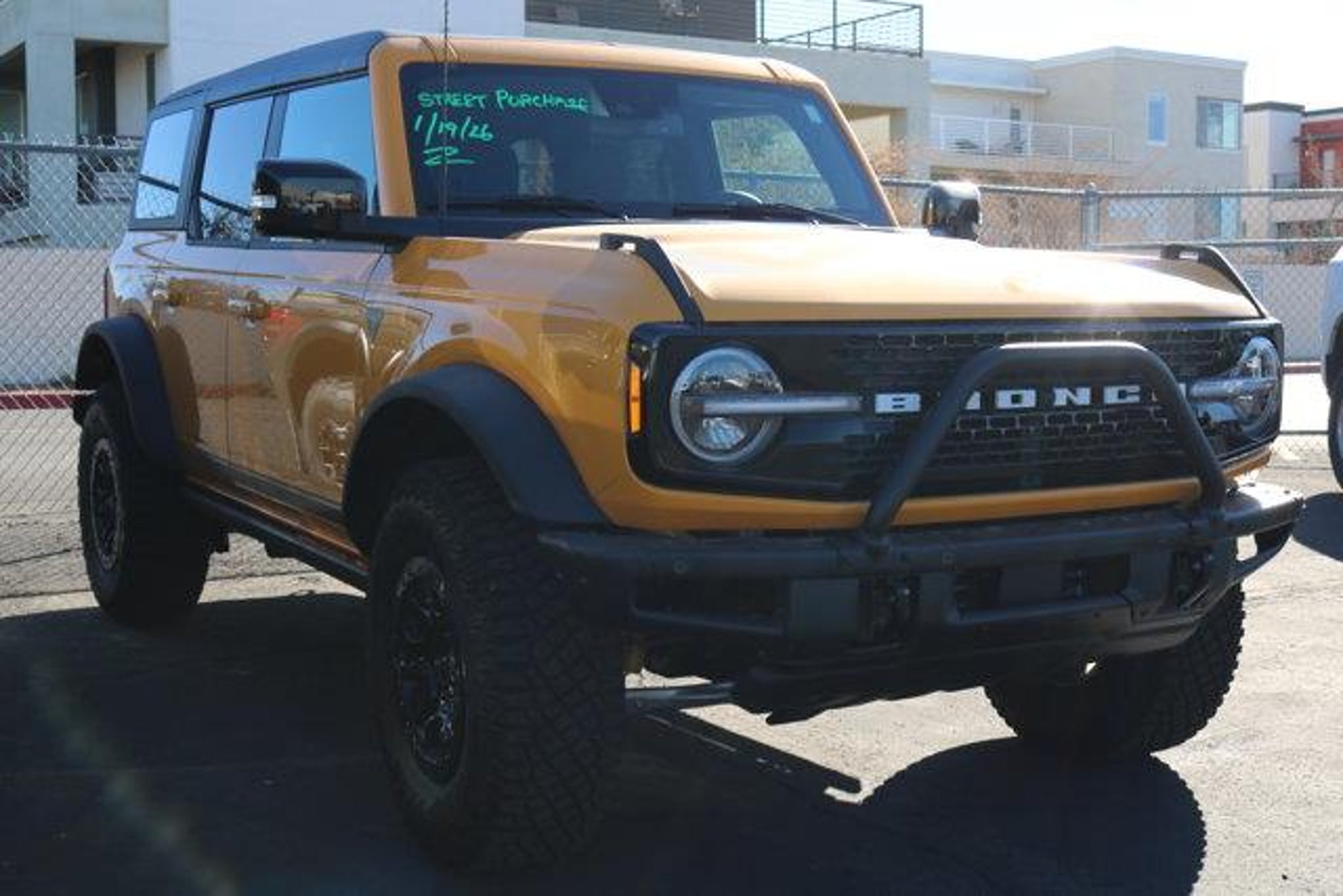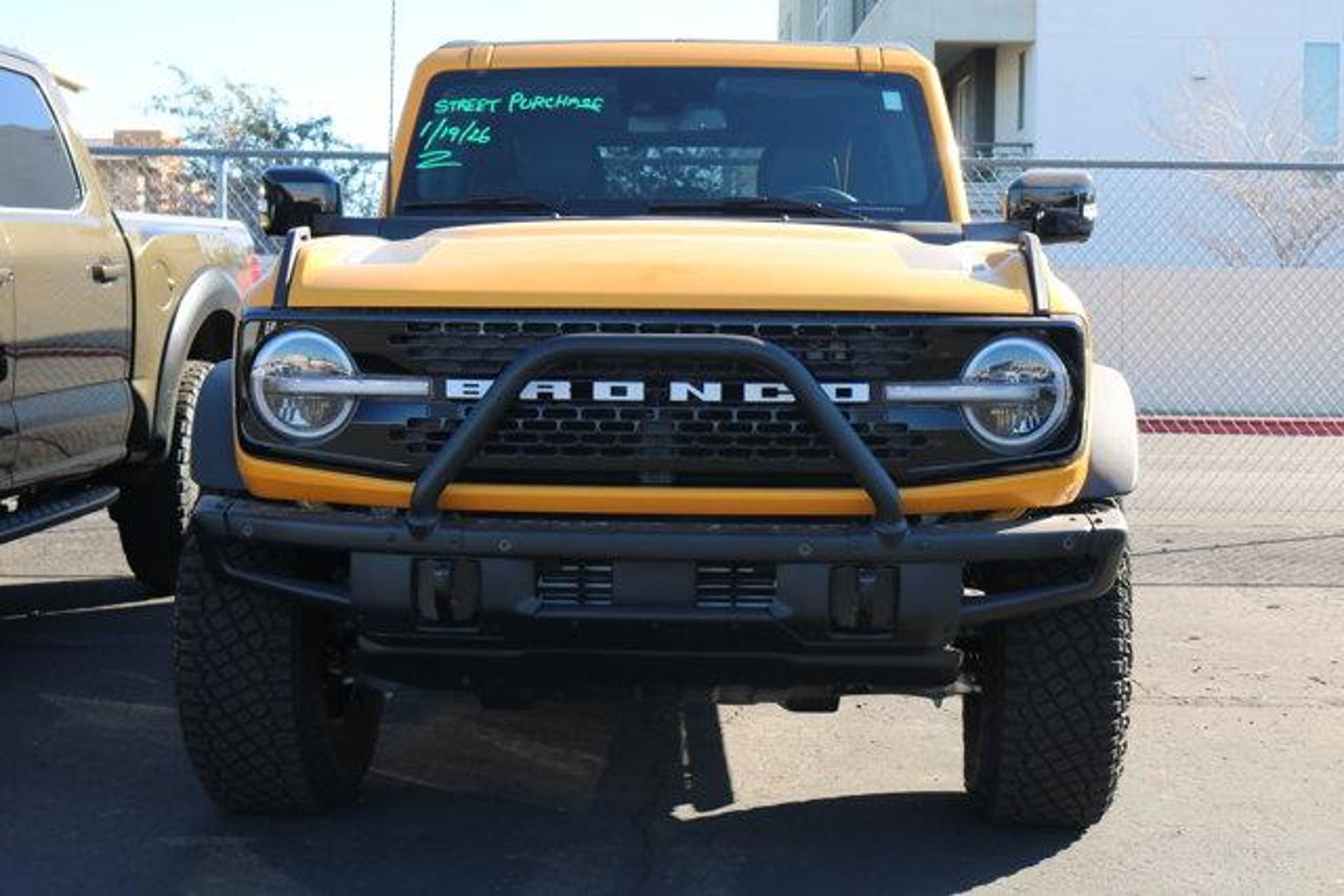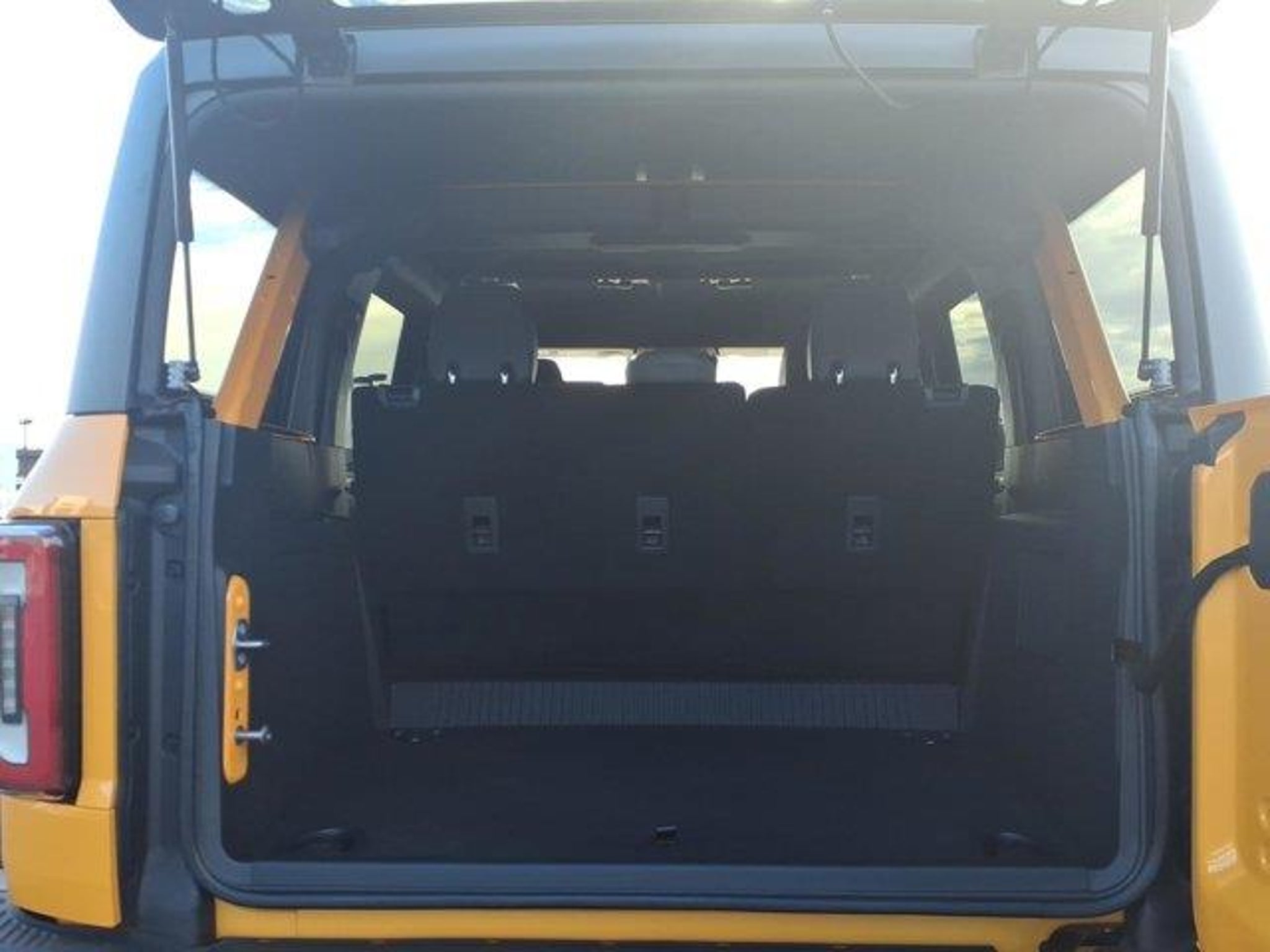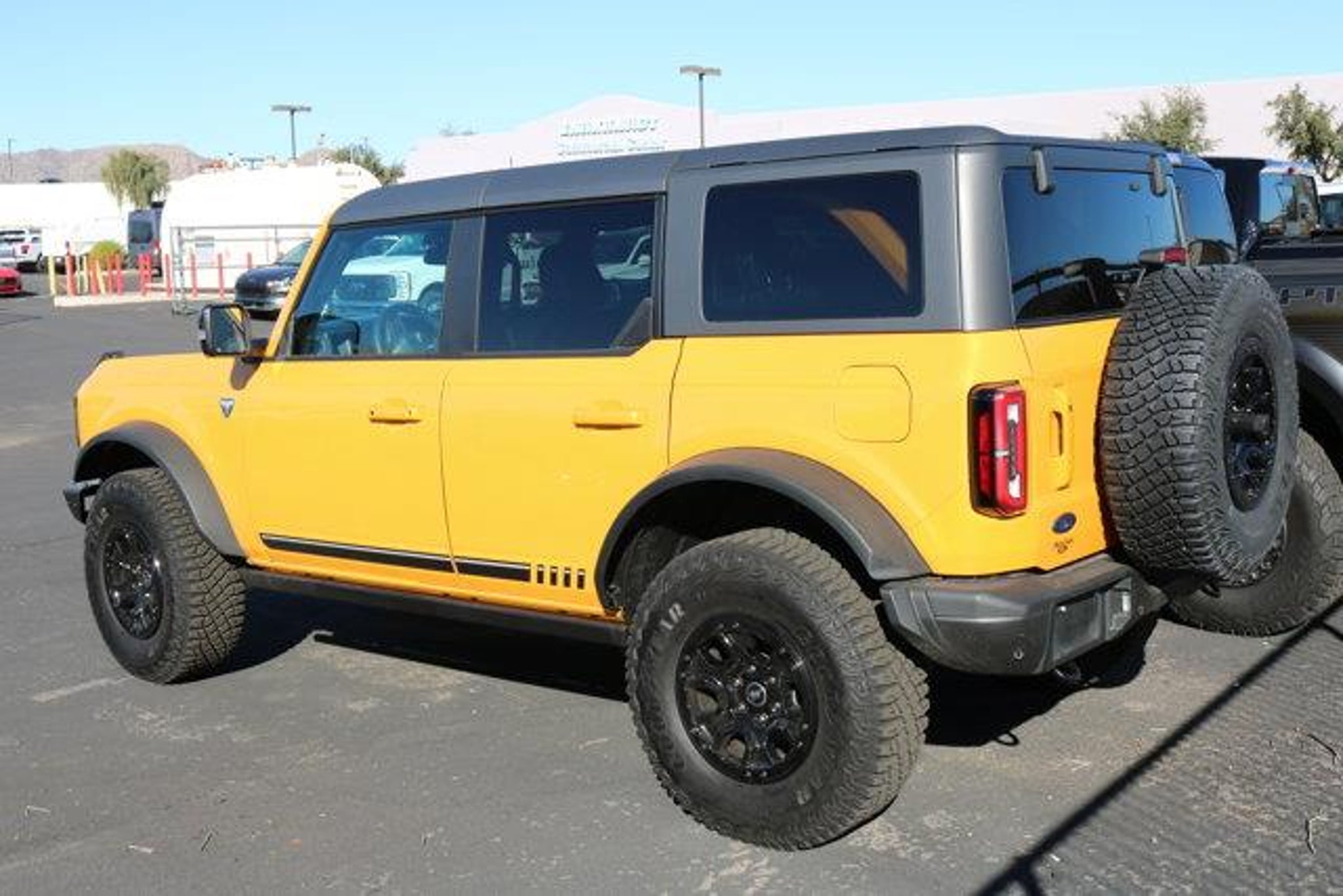 New Price! Yellow 2021 Ford Bronco First Edition 4WD 10-Speed Automatic 2.7L EcoBoost V6 10 Speakers, 4-Wheel Disc Brakes, 4.7 Axle Ratio, ABS brakes, Air Conditioning, Alloy wheels, AM/FM radio: SiriusXM with 360L, Auto High-beam Headlights, Auto-dimming Rear-View mirror, Automatic temperature control, Brake assist, Compass, Connected Built-In Navigation, Convertible HardTop, Delay-off headlights, Driver door bin, Driver vanity mirror, Dual front impact airbags, Dual front side impact airbags, Electronic Stability Control, Emergency communication system: 911 Assist, Front anti-roll bar, Front Bucket Seats, Front Center Armrest, Front dual zone A/C, Front reading lights, Front wheel independent suspension, Fully automatic headlights, Glass rear window, Heated door mirrors, Heated front seats, Heated Leather-Trimmed/Vinyl Bucket Seats, Heated steering wheel, Illuminated entry, Integrated roll-over protection, Leather Shift Knob, Low tire pressure warning, Navigation system: Connected Navigation, Occupant sensing airbag, Outside temperature display, Overhead airbag, Overhead console, Panic alarm, Passenger door bin, Passenger vanity mirror, Power door mirrors, Power driver seat, Power passenger seat, Power steering, Power windows, Radio data system, Radio: B&O Sound System by Bang & Olufsen, Rear seat center armrest, Rear window defroster, Rear window wiper, Remote keyless entry, Security system, SiriusXM Radio w/360L, Speed control, Split folding rear seat, Steering wheel mounted audio controls, SYNC 4, Tachometer, Telescoping steering wheel, Tilt steering wheel, Traction control, Trip computer, Turn signal indicator mirrors, Variably intermittent wipers, Voltmeter, Wheels: 17 Black High Gloss-Painted Aluminum.Recent Arrival! Odometer is 23055 miles below market average!