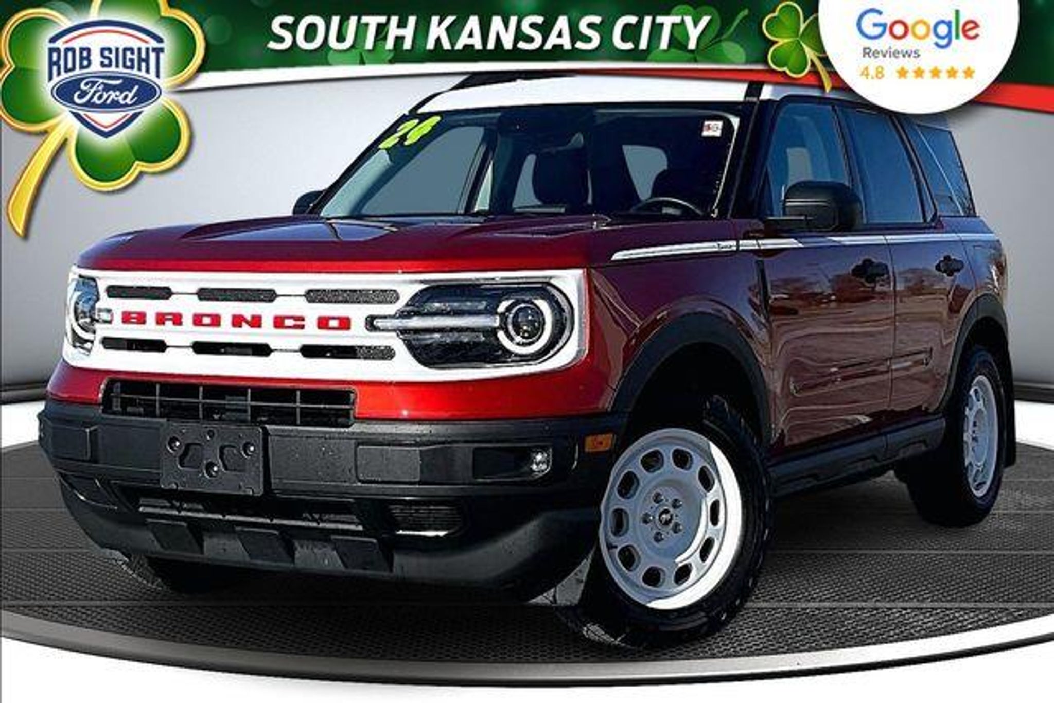 4X4, Ecoboost, Heated Leather Seats, Rear View Camera, SYNC Bluetooth, Remote Start, Power Windows and Locks, Keyless Entry, Apple CarPlay/Andriod Auto, Heated Front Seats, Heritage Convenience Package, Premium Wrapped Steering Wheel, Rear Parking Sensors, Universal Garage Door Opener (UGDO), Wheels: 17 Oxford White-Painted Aluminum, Wireless Charging Pad. Odometer is 12382 miles below market average! We make it EASY. Zero Pressure, Non-Commission Staff, & Kansas City's lowest Prices! All prices plus $599 admin fee. Please call today to schedule your test drive on this..... 2024 Ford Bronco Sport Heritage 4D Sport Utility 1.5L EcoBoost 8-Speed Automatic 4WD Hot Pepper Red Metallic Tinted Clearcoat
