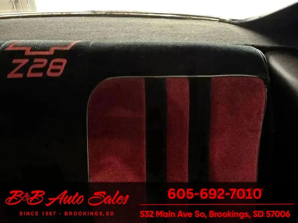 INTERIOR- The interior is in good shape. Has had the seats recovered in custom velour with Z28 in the headrest.