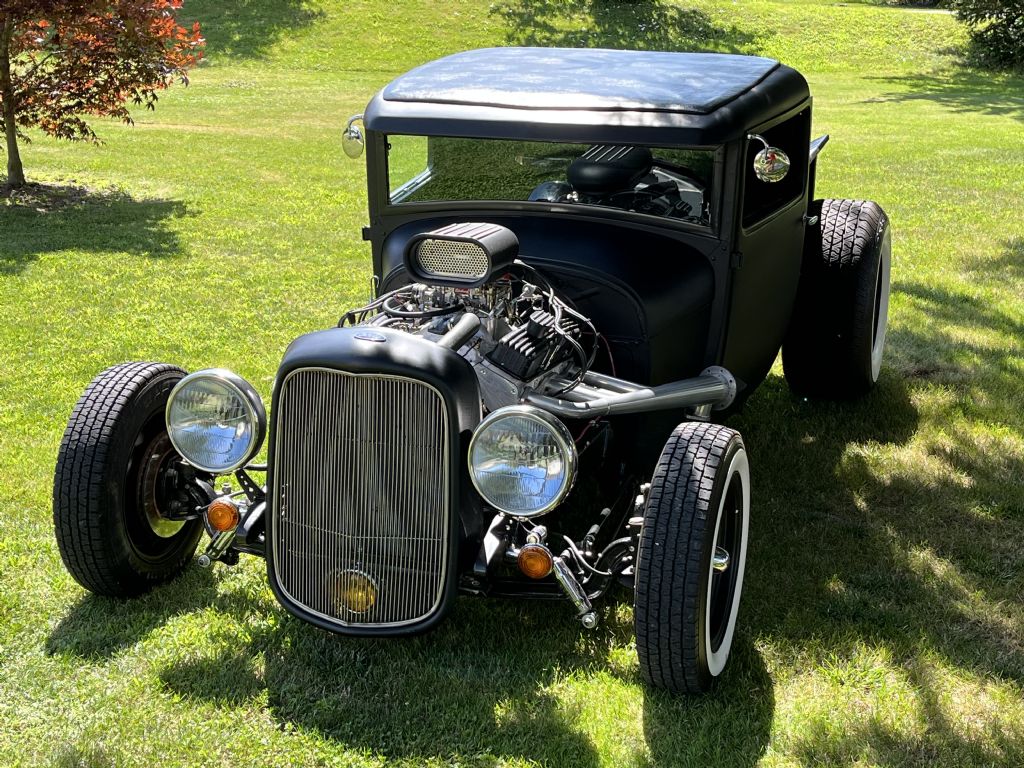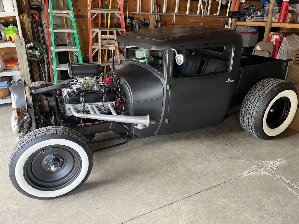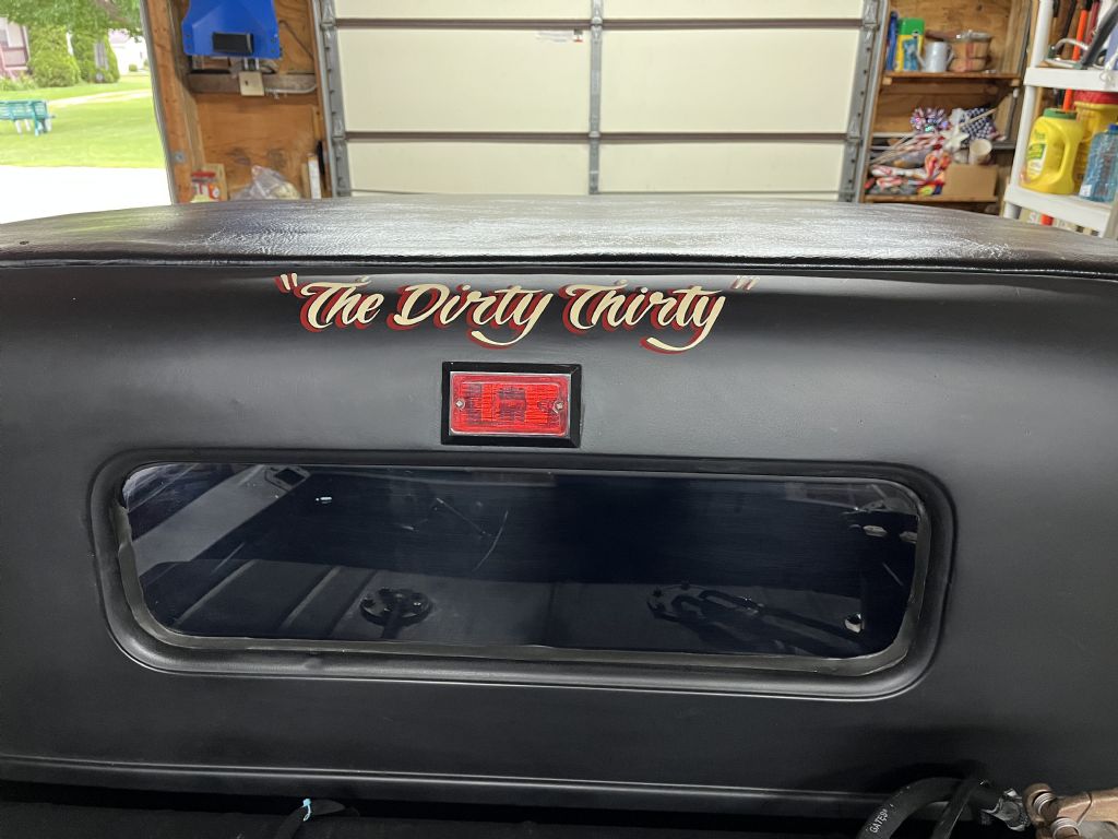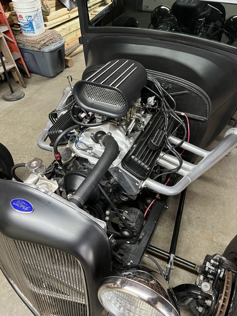 Body chopped, 350 crate-roller engine, 700R-2 overdrive trans w/ shift kit, Corvette servo, Flotek aluminum heads, stainless steel pushrods, small cam, MSD distributor, Edelbrock 600 CFM carb, 14" cooling fan, Yukon 3.23 gears and Posi-Trac differential.