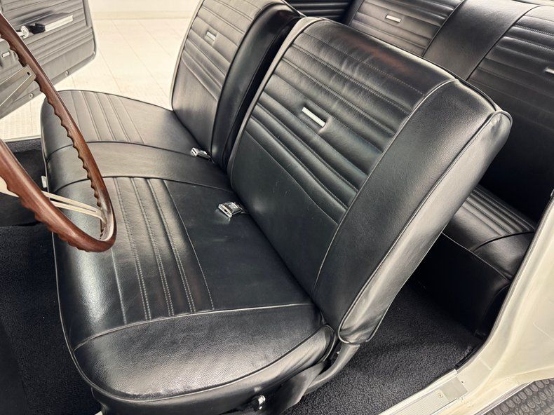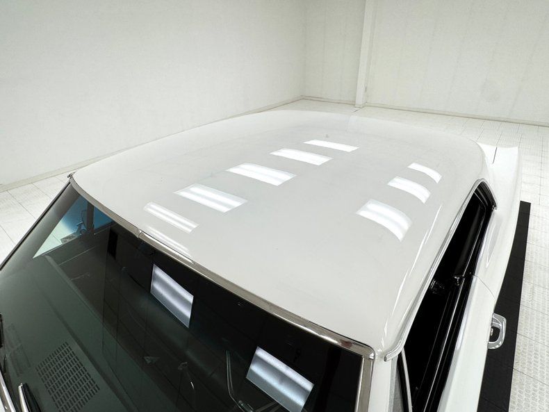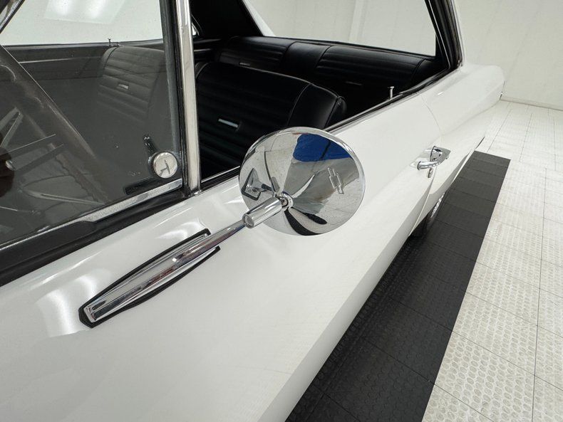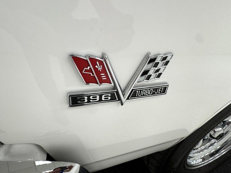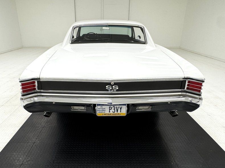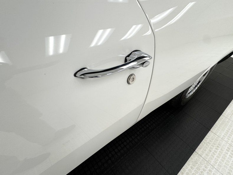Named for an Arctic weasel, Ermine White now covers the car in two stage application and like that snow loving mammal, it's bright and beautiful. Ermines have black tips on the tail and so does our Chevelle with a clean, black latch panel and SS insignia dead center between pointed tail lights in an epic muscle car rear end capped off by angle cut exhaust tips. Up front, hood bulges house ornamental vents and the fascia shape mirrors that of the rear, this time with round headlights amongst horizontal bars of the grille. 15-inch polished American Racing Torque Thrust wheels send the right message and are wrapped in 225/70R15 tires with an early 2021 date code. The paint and trim is excellent on the car with a few imperfections noted as scuffs near the cowl and A-pillar, a chip on one of the buttresses and cracking at its base, and scuffs on the window trim in one section.