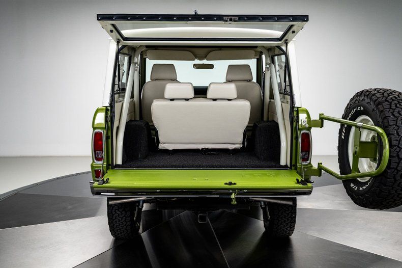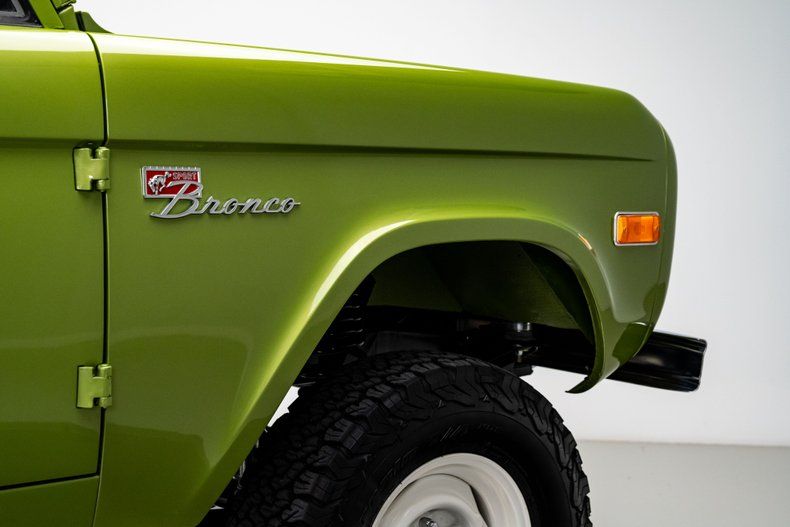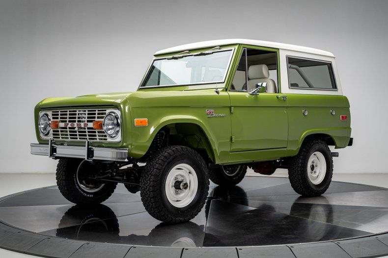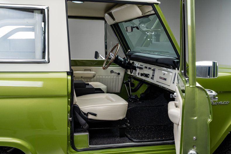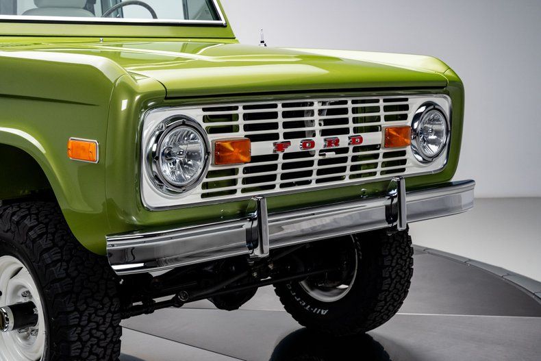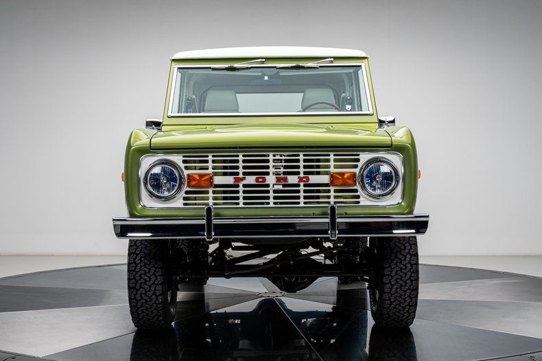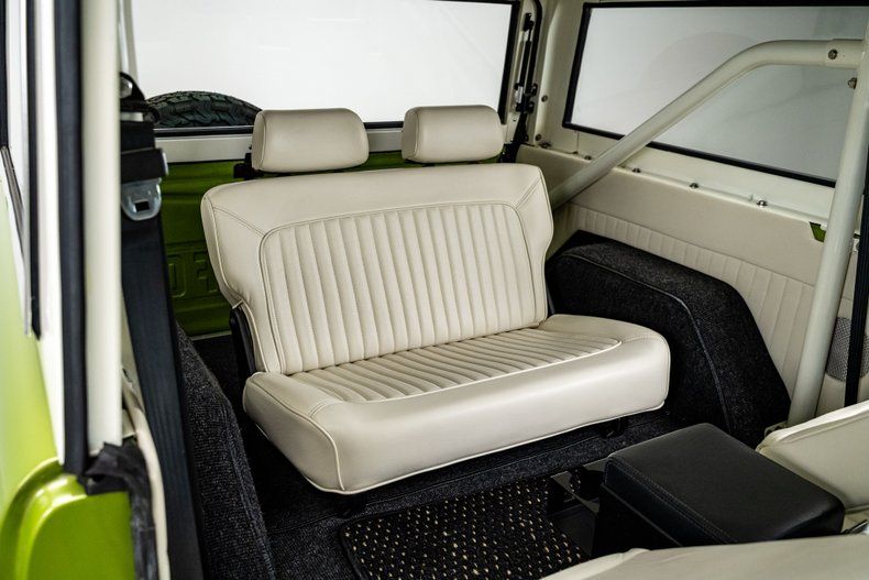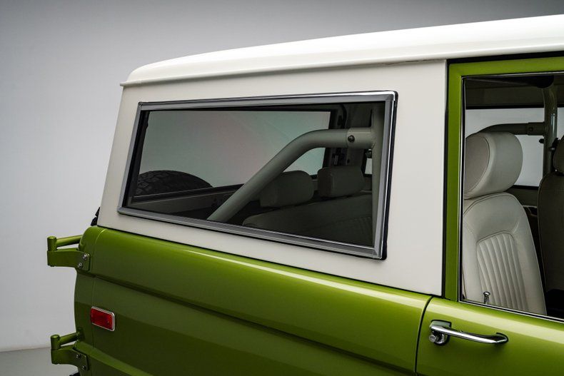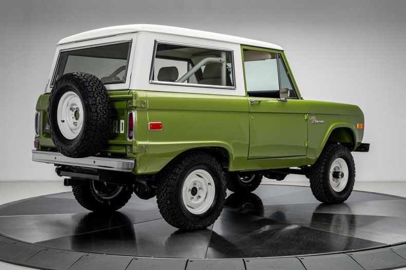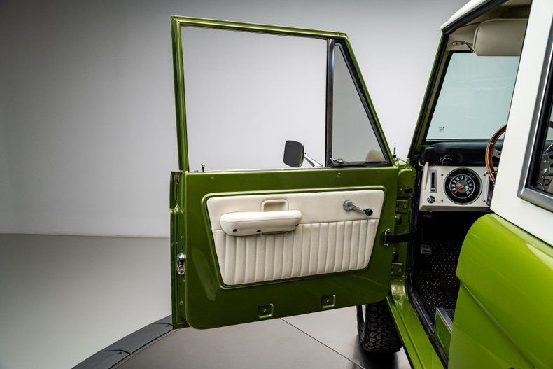 Finished in its factory-correct Limestone Green with an uncut body and period-correct stance, this 1973 Ford Bronco presents exactly as an early Bronco should, enhanced by subtle updates that improve usability without changing its character. That solid foundation was elevated through a comprehensive, frame-off restoration focused on reliability and real-world drivability rather than modern reinterpretation.