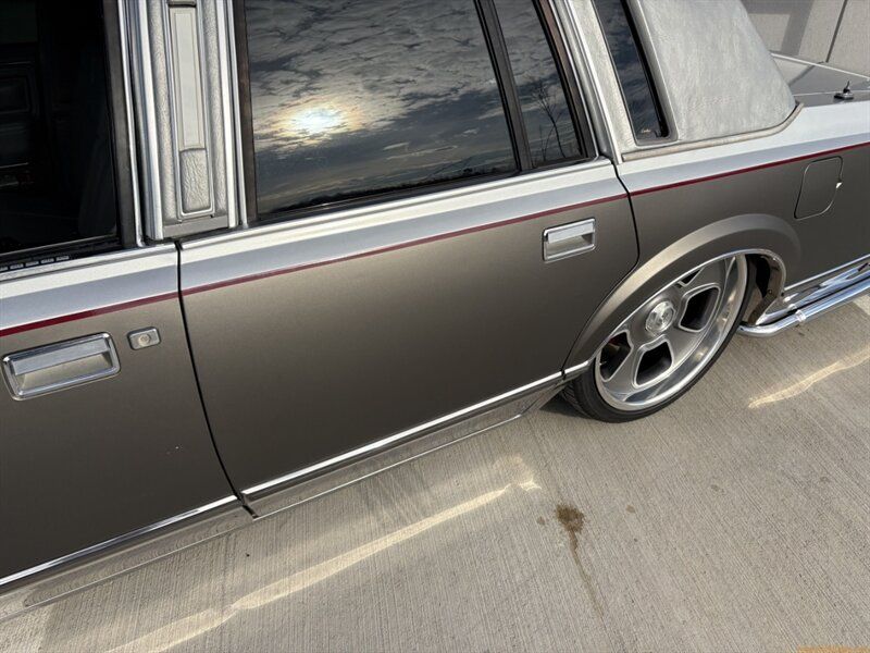 HIGHLIGHTS: Power everything! East Coast car since new! Tastefully customized with adjustable 4-wheel air suspension 20-inch US Mags wheels Dual VIAIR compressors Modern touchscreen audio system with subwoofer and amplifier! Turn-key cruiser with serious presence! BODY OVERVIEW: This Town Car wears its classic lines proudly, with a little bit of a modern custom twist! The body is straight and clean, and the lowered stance completely transforms the cars personality. With the suspension aired out, this Lincoln sits impressively low, giving it a bold, sinister look that still respects its luxury roots. The silver vinyl top is in great condition and adds the perfect finishing touch to this iconic silhouette.Thanks to a lifetime in the southeastern US, the undercarriage is original but clean, and exterior imperfections are limited to minor age-related defects such as faded lenses, etc. PAINT CONDITION OVERVIEW: Finished in what appears to be its original silver paint, complemented by a dark gray two-tone wrapped accent along the lower body, this Lincoln presents beautifully! Both the paint and the wrap look great, with a consistent appearance and minimal visible defects. At first glance, youd think the wrap was paint! The color combination works beautifully with the gray-accented wheels, creating a cohesive and upscale appearance that is also seriously sinister. INTERIOR CONDITION OVERVIEW: The interior has been kept largely true to original form, right down to the Cartier logos on the seatbacks. Power seats, power windows, power vent windows, and a tilt steering column deliver classic 1980s luxury exactly as intended. A modern oversized touchscreen stereo, paired with a SKAR subwoofer and a 3700-watt BOSS amplifier, adds contemporary entertainment without overwhelming the cabins original charm. Overall, the interior presents in great original condition, though there is a stain on the passenger seat as shown in the photos. A dash cap has been installed over the original dash, and this Town Car is seriously comfortable! MECHANICAL OVERVIEW: Underneath the elegance lies a well-executed air suspension setup featuring 4-wheel adjustable air ride and dual VIAIR compressors. Each wheel can be adjusted individually, allowing for precise stance tuning whether cruising or parked. Dual glasspack exhaust adds a tasteful and satisfying soundtrack, and LED headlights improve nighttime visibility"seriously, these things can probably be seen from outer space! The Ford 5.0L V8 absolutely purrs, and fires effortlessly thanks to factory fuel injection. This Lincoln drives well and is ready to be enjoyed immediately! WHAT YOULL LOVE ABOUT THIS CAR: Adjustable air suspension on all four wheels for that laid out look when parked Classic Cartier luxury blended with modern custom flair Strong curb appeal without sacrificing comfort Retains original interior character with tasteful audio upgrades WHAT YOU MIGHT HATE ABOUT THIS CAR: Custom suspension and wheels may not appeal to strict purists Subtle modern and (not so subtle) custom touches may not be for everyone seeking full originality DS IT NEED ANYTHING?: The only known issue is an inoperative driver-side rear window. Regardless, this Lincoln is ready to cruise! WHAT BUYER IS LOOKING FOR THIS CAR?: This Town Car is perfect for the buyer who appreciates classic American luxury but wants something far more distinctive than stock. Ideal for someone who wants a smooth, comfortable cruiser with show-stopping stance, modern audio, and unmistakable 1980s presence all at an agreeable price point! Contact Rare Rides Company at 980-306-8100 or info@rarerides.com for more information The advertised price for this vehicle includes the $250 document fee added by Rare Rides Company. Rare Rides Company ds not collect tax, tag or title fees. Title Status: CLEAN DS IT WORK? Air Conditioning YES - low refrigerant Heater YES Speedometer YES Odometer YES Oil PSI Gauge YES Temperature Gauge YES Fuel Gauge YES Tachometer N/A Wipers YES Windows YES - driver rear NO Horn YES Radio YES Headlights YES Tail Lights YES Brake Lights YES Reverse Lights YES Turn Signals YES Emergency Brake YES 4x4/AWD N/A Tire Condition: High Tread, 2021 date Keys " Ignition YES, Door YES, Trunk YES Seatbelts Front: YES Rear: YES Runs & Drives YES