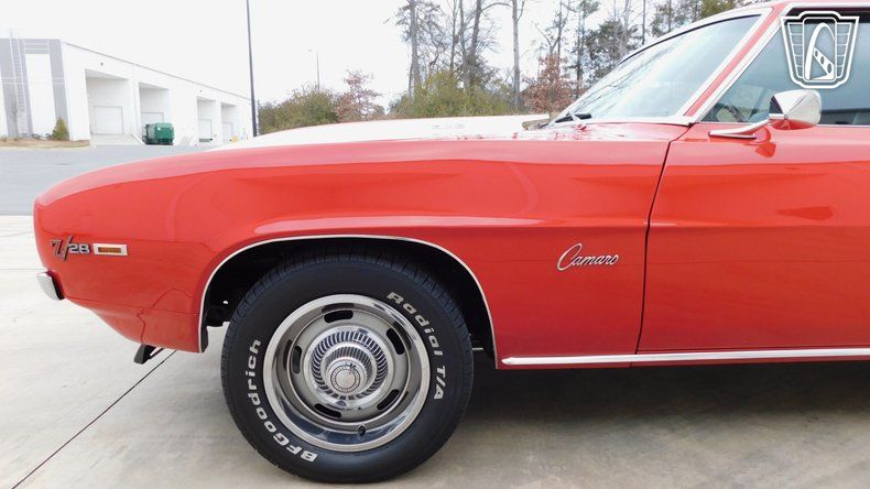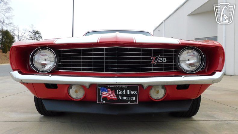 Gateway Classic Cars of Charlotte is proud to digitally present this 1969 Chevrolet Camaro Z/28 captures everything that made the first-gen Z legendary. Under the hood sits the correct-style 302ci 4.6 Liter small-block Chevy, built to rev and backed by a Muncie M21 close-ratio 4-speed manual transmission that delivers the kind of mechanical connection only a true muscle car can. Power is sent to the pavement through classic BFGoodrich tires wrapped around silver Rallye Camaro wheels, giving it the right stance and period-correct attitude. Finished with iconic white racing stripes and topped with the aggressive ZL2 cowl induction hood, this Z/28 looks every bit the part. The D80 rear spoiler completes the profile, adding both style and unmistakable late-'60s performance presence. Inside, the black houndstooth plaid interior sets the tone with unmistakable Z/28 character. A wood-grain steering wheel anchors the cockpit, while the center console gauges keep vital information front and center, just as Chevrolet intended. Modern comfort is subtly integrated thanks to Vintage Air, making the car enjoyable on today's roads without sacrificing its classic feel. This 1969 Z/28 blends authentic muscle car heritage with thoughtful upgrades, delivering a raw, engaging driving experience and timeless Camaro style that never goes out of fashion.