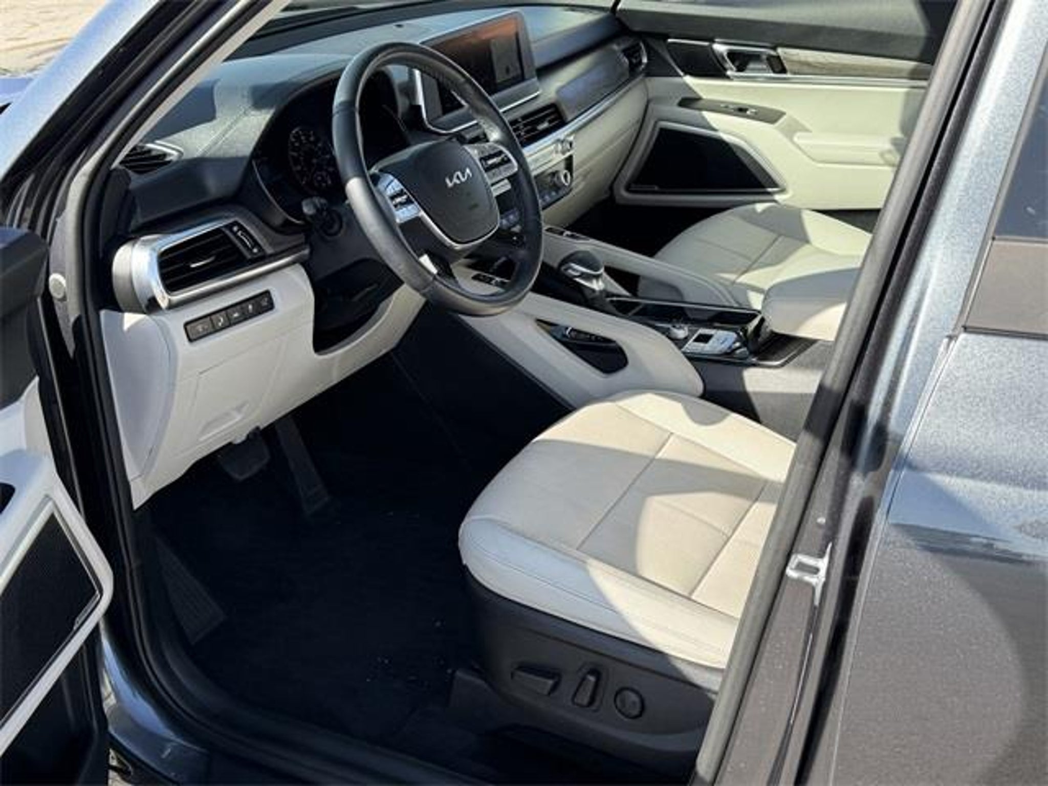 Recent Arrival! Priced below KBB Fair Purchase Price! Gravity Gray 2022 Kia Telluride EX AWD 8-Speed Automatic 3.8L V6 DOHC If you don't drive here, you can't save here! Price may not include recon fee. EX Premium Package (20 x 7.5 Machined Alloy Wheels, 2nd Row Captain Chairs, LED Headlamps, and Satin Chrome Roof Rails), Nightfall Edition Package (Black Finish Radiator Grille, Exclusive Black Headlight Bezels, Front & Rear Gloss Black Finish Bumper Skid Plates, Gloss Black Finish Exterior Emblems, Gloss Black Finish Front & Rear Door Garnish, Gloss Black Finish Roof Rails, and Wheels: 20 x 7.5 Exclusive Black Alloy), 3.648 Axle Ratio, 3rd row seats: split-bench, 4-Wheel Disc Brakes, 6 Speakers, ABS brakes, Air Conditioning, Alloy wheels, AM/FM radio: SiriusXM, Apple CarPlay & Android Auto, Auto-dimming Rear-View mirror, Automatic temperature control, Brake assist, Bumpers: body-color, Compass, Delay-off headlights, Driver door bin, Driver vanity mirror, Dual front impact airbags, Dual front side impact airbags, Electronic Stability Control, Emergency communication system: 911 Connect, Four wheel independent suspension, Front anti-roll bar, Front Bucket Seats, Front Center Armrest, Front dual zone A/C, Front reading lights, Fully automatic headlights, Heated & Ventilated Front Bucket Seats, Heated door mirrors, Heated front seats, Heated steering wheel, Illuminated entry, Knee airbag, Leather Seat Trim, Leather Shift Knob, Leather steering wheel, Low tire pressure warning, Navigation System, Occupant sensing airbag, Outside temperature display, Overhead airbag, Overhead console, Panic alarm, Passenger door bin, Passenger vanity mirror, Power door mirrors, Power driver seat, Power Liftgate, Power moonroof, Power passenger seat, Power steering, Power windows, Radio data system, Radio: AM/FM Display Audio System, Rear air conditioning, Rear anti-roll bar, Rear audio controls, Rear reading lights, Rear seat center armrest, Rear window defroster, Rear window wiper, Reclining 3rd row seat, Remote keyless entry, Roof rack: rails only, Security system, Smart Key w/ Push Button and Remote Start, Speed control, Speed-sensing steering, Split folding rear seat, Spoiler, Steering wheel mounted audio controls, Tachometer, Telescoping steering wheel, Tilt steering wheel, Traction control, Trip computer, Turn signal indicator mirrors, Variably intermittent wipers, Ventilated front seats, and Wheels: 18 x 7.5 Machined Alloy.