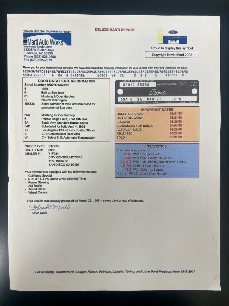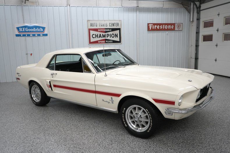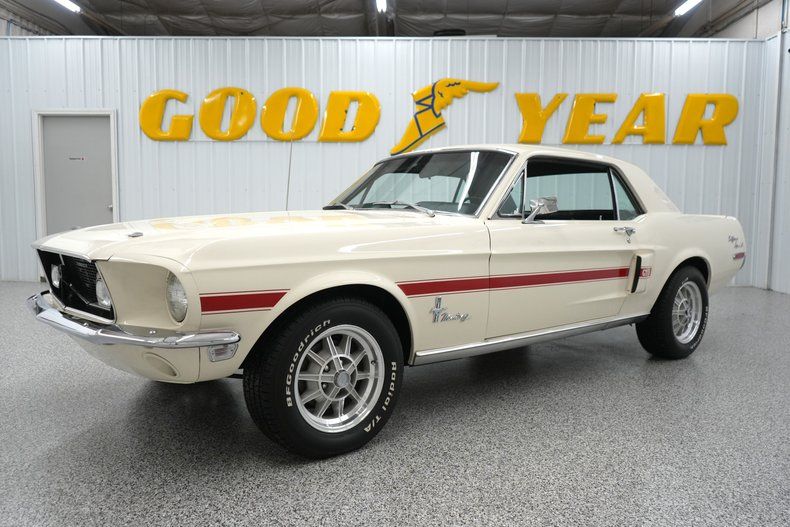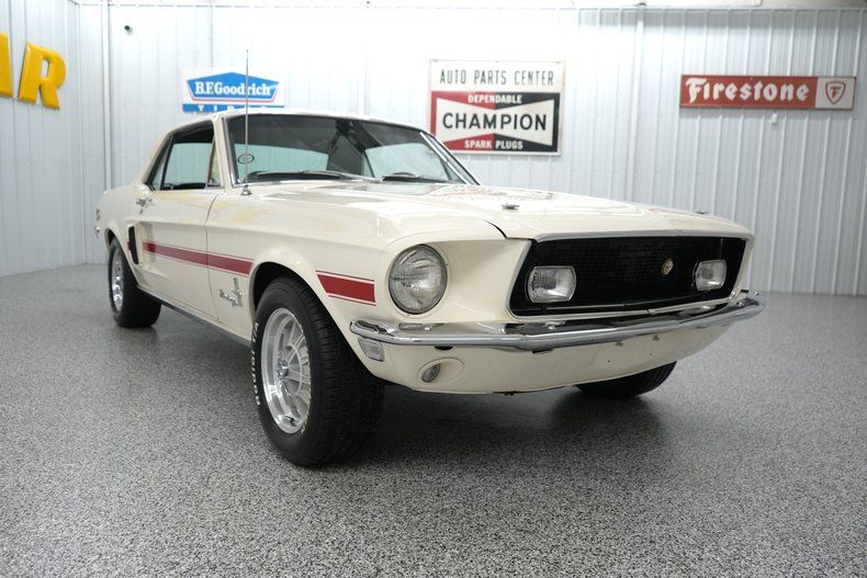 THIS VEHICLE IS LOCATED IN OUR PA. SHOWROOM, FREE SHIPPING AND WARRANTY !!!!! Period Correct 289cid Small Block Ford Engine. C4 Automatic Transmission. Front Drum Brakes. Rear Drum Brakes. Front Tires: 225/60/15. Rear Tires: 225/60/15. BFGoodrich Radial TA Tires. 15 Inch Wheels. Ford 8 Inch Rear End. Cast Aluminum Intake. Edelbrock 1406 600cfm 4 Barrel Carburetor. Electric Choke. Stock Style Distributor. PerTronix Flamethrower II Coil. Mechanical Fuel Pump. Factory Points Ignition. Steel Radiator. 6 Blade Cooling Fan. Pebble Beige Exterior. Red California Side Stripes. Chrome Front & Rear Bumpers. GT Fog Lights. Hood Pins. Hood Scoops. Hood Mounted Turn Signals. Bright Window Trim. Bright Rocker Moldings. Quarter Panel Side Scoops. Drivers Side Mirror. 120MPH Speedometer. Black Vinyl Interior. Black Carpeting. Black Headliner. Black Door Panels. Front Bucket Seats. Rear Bench Seat. Seat Belts. Black Dash. AM/FM/Cassette Radio. Center Console. Trunk Mat. Full Size Spare Tire. 3/4" Front Sway Bar. 2" Dual Exhaust. Crosspipe. Xlerator Mufflers. Double Dual Chrome Slash Cut Exhaust Tips. KYB Excel G Front & Rear Shocks. Finned Aluminum Valve Covers. Chrome Strut Tower Brace. Chrome Fender Brace. Chrome Fan Shroud. Edelbrock In-Line Fuel Filter. Finned Aluminum Air Cleaner Lid. Aluminum Shelby Style Wheels. Red Oxide Floors. Marti Report.