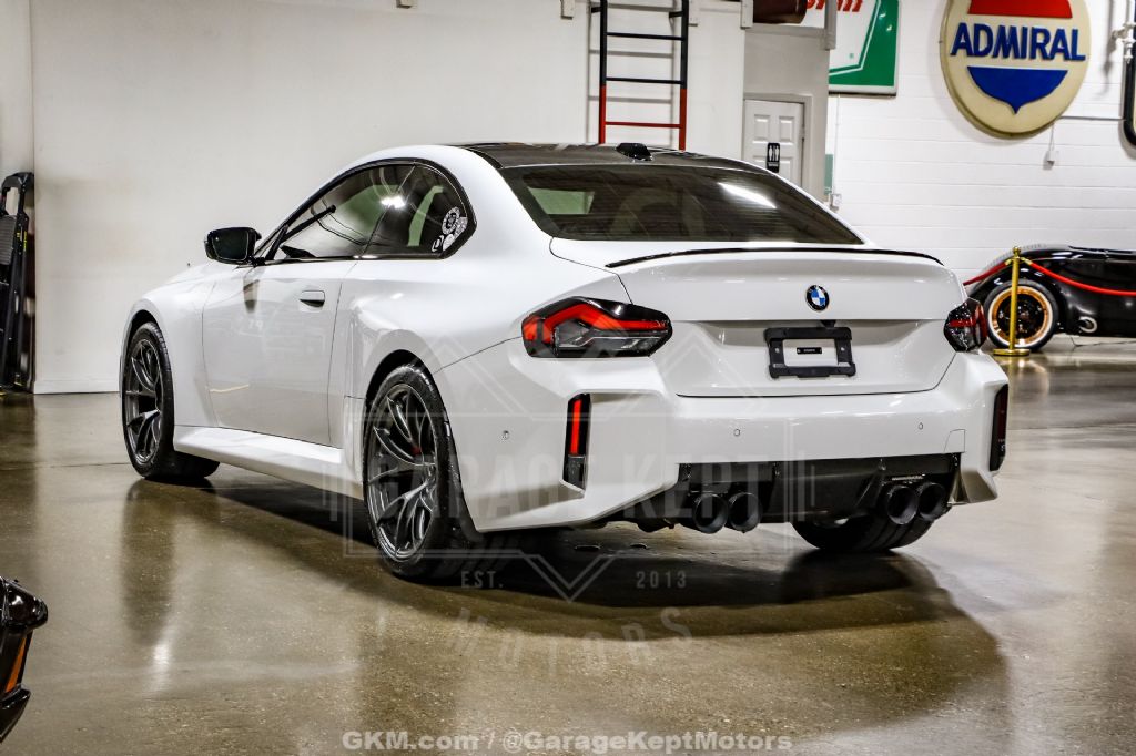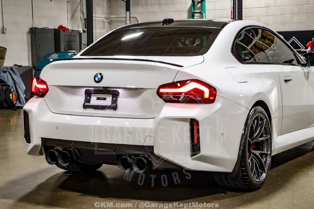 - Alpine White over Black Leather with M Accents - S58 3.0L Twin Turbo Inline 6 Cylinder - 6 Speed Manual Gearbox - Dinan Experience Package, Installed Summer 2025 by German Auto Service LTD - 537 Horsepower and 513 lb-ft of Torque - Dinan Factory Matching 4-Year/50K Mile Warranty - Dinan Experience Package Includes: Dinan+ PCU, Gloss Carbon Fiber Cold Air Intake, High Flow Exhaust and Mid Pipe, Gloss Carbon Fiber Strut Tower Brace, Dinan Pedal Covers ($12k) - Apex VS-5RS Wheels ($4k) - Michelin Pilot Sport Cup 2 Tires ($2,600) - STEK Front End PPF ($2k) - Oil Cooler and Vent Grille Set ($800) - Noteworthy Factory Options: Shadowline and Lighting Packages, Carbon Fiber Roof and Trim, Heated Steering Wheel, Parking Assistant, Wireless Device Charging, Live Cockpit Pro with Heads Up Display - Always Serviced at BMW Dealer or German Auto - Both Keys, All Records, Books, and Window Sticker - Non-Smoker, No Accidents, Clean Title - Needs Nothing - All Factory Components Included with Sale - 13k Miles This 2024 BMW M2 G87 Coupe represents a tastefully modified example from our ownership, combining factory M performance with thoughtfully selected upgrades that elevate an already exceptional platform. Finished in timeless Alpine White over a Black leather interior with M accents, the M2's aggressive proportions, wide stance, and purposeful design are further enhanced by carbon fiber details and Shadowline trim, giving the car a clean yet unmistakably motorsport-inspired presence.