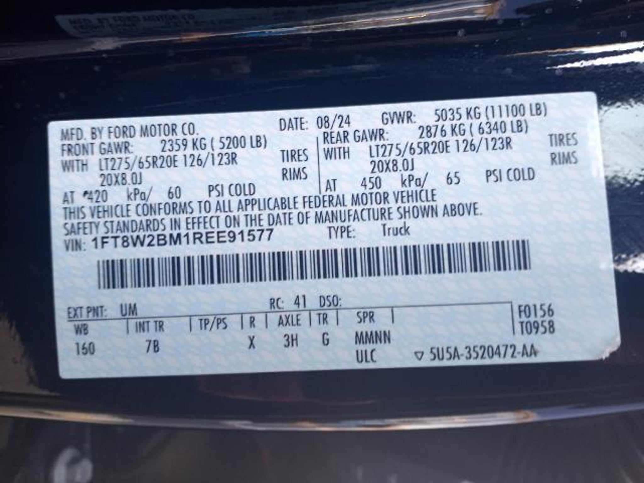 VIN 1FT8W2BM1REE91577