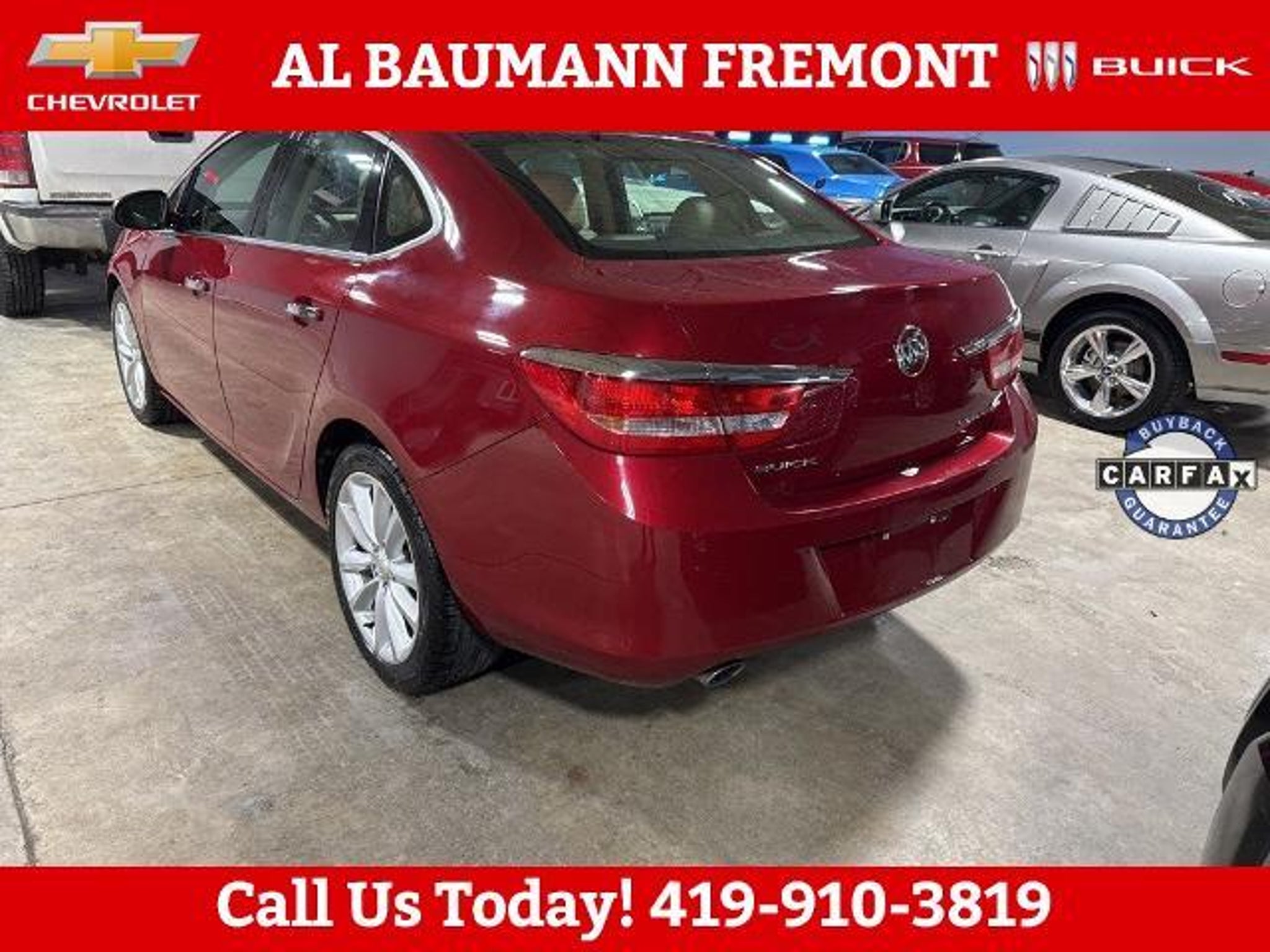 New Price! Odometer is 73014 miles below market average! Crystal Red Tintcoat 2013 Buick Verano 4D Sedan ECOTEC 2.4L I4 SIDI DOHC VVT 6-Speed Automatic Electronic with Overdrive FWD ONLY TWO OWNERS. Car shopping is sometimes inconvenient and stressful, and we want to take the hassle out of this all-too-common experience. If you?re interested in more convenience, less frustration and a process that works efficiently to meet your needs as a customer. Al BAUMANN AUTO GROUP. The Best Price Up Front Cash Offers For Any Trade-In Multiple Financing Quotes In Minutes A Team Of Dedicated Salespeople. CALL,419-332-8236 or {1-866-330-3601}, Preferred Equipment Group 1SD, 18 x 8 Multi-Spoke Machined Alloy Wheels, 4-Wheel Disc Brakes, 6 Speakers, ABS brakes, Air Conditioning, Alloy wheels, AM/FM radio: SiriusXM, Automatic temperature control, Brake assist, Bumpers: body-color, CD player, Compass, Delay-off headlights, Driver door bin, Driver vanity mirror, Dual front impact airbags, Dual front side impact airbags, Electronic Stability Control, Emergency communication system: OnStar Directions & Connections, Exterior Parking Camera Rear, Four wheel independent suspension, Front anti-roll bar, Front Bucket Seats, Front Center Armrest, Front dual zone A/C, Front fog lights, Front reading lights, Fully automatic headlights, Illuminated entry, Knee airbag, License Plate Front Mounting Package, Low tire pressure warning, Occupant sensing airbag, Outside temperature display, Overhead airbag, Overhead console, Panic alarm, Passenger door bin, Passenger vanity mirror, Power door mirrors, Power steering, Power windows, Premium audio system: IntelliLink, Premium Ribbon Fabric Seat Trim, Radio data system, Radio: AM/FM/SiriusXM Stereo w/MP3 CD Player, Rear anti-roll bar, Rear reading lights, Rear seat center armrest, Rear side impact airbag, Rear window defroster, Remote keyless entry, Security system, SiriusXM Satellite Radio, Speed control, Split folding rear seat, Steering wheel mounted audio controls, Tachometer, Telescoping steering wheel, Tilt steering wheel, Traction control, Trip computer, Variably intermittent wipers, Voltmeter, Wheels: 18 x 8 Split Multi-Spoke Alloy, Preferred Equipment Group 1SD.