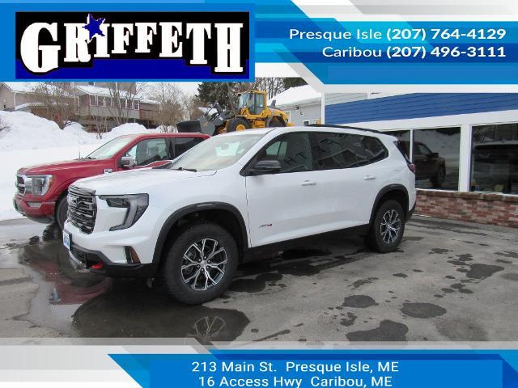Details > 2024 GMC Acadia 4X4 AT4 4DR SUV For Sale in Caribou, ME Private Party Sellers Click here to place your ad now! You auta tell them you saw the ad in AutaBuy when you call or email. 1/20 2/20 3/20 4/20 5/20 6/20 7/20 8/20 9/20 10/20 11/20 12/20 13/20 14/20 15/20 16/20 17/20 18/20 19/20 20/20 View 20 Photos View All Add to My Garage Parked in Your Garage! Griffeth Ford Contact Seller: I would like to: Make Offer Check Availability Ask A Question Request More Photos Check Financing Options Send a copy of this message to me Add this listing to my garage Send to Mobile Mileage 18,203 Exterior Color White Diamond Doors 4 Engine 2.5L I4 Transmission 8 Speed Auto Stock # N80006A VIN 1GKENPKS5RJ214119 Estimated Monthly Payment $783 mo Apply Now J.J. Best Banc & Co. 2024 GMC Acadia 4X4 AT4 4DR SUV Description: · Mileage: 18,203 · Color: White Diamond Price: $44,995. Mileage 18,203 Exterior Color White Diamond Doors 4 Engine 2.5L I4 Transmission 8 Speed Auto Stock # N80006A VIN 1GKENPKS5RJ214119 Estimated Monthly Payment $783 mo Apply Now J.J. Best Banc & Co. Add to My Garage Parked in Your Garage! Message Seller Griffeth Ford Contact Seller: I would like to: Make Offer Check Availability Ask A Question Request More Photos Check Financing Options Send a copy of this message to me Add this listing to my garage Offered for sale by Griffeth Ford CARIBOU, ME Price: $44,995. Offered for sale by Griffeth Ford CARIBOU, ME [entire inventory] Ask Auta Intelligence The first collector-car AI built directly into a classic car marketplace What colors did these come in? What engine options did these come with? When was this model first introduced? How easy are parts to find for this model? What factory options were available on this model? Where is this located? How many passengers can this seat comfortably? What trim levels were available for this model? Tell me more about this model How many of these were produced? What transmission options did these offer? What kind of mileage do these get? How many Acadias were produced in White? What does this VIN number tell me? Can you show me more suvs for a similar price? What safety features does this model offer? How far is this from me? Do you have a similar car to sell? List It Now! Questions about this car? Ask Auta Intelligence for production numbers, available options, etc. · Subscribe to AutaBuy! · Send a Gift Subscription Notice to a Friend