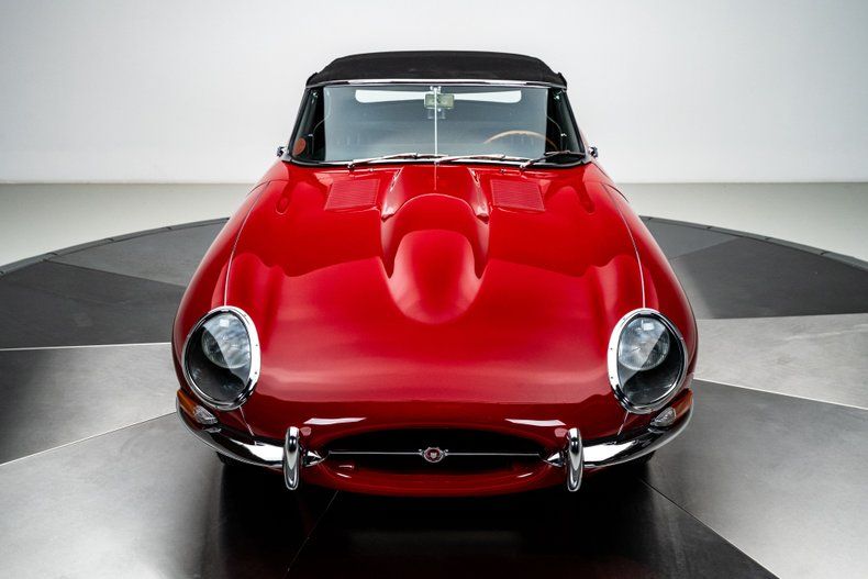 Finished in striking Carmen Red over a black leather interior, this 1966 E-Type Roadster was meticulously restored by marque specialists at Catz Automotive in Youngstown, Ohio, with a clear emphasis on authenticity, craftsmanship, and long-term quality. The body was stripped to bare metal and mounted on a rotisserie, then finished using traditional metal work to achieve straight panels that remain faithful to original factory contours. One of the defining features of the Series I design, the iconic covered headlights remain in place, giving the E-Type its famously smooth, uninterrupted lines and visual elegance that later generations never quite replicated. Exterior details are completed by quality brightwork that was triple-plated for proper depth and luster, while chrome wire wheels fitted with Coker redline tires provide a period-correct touch that complements the car's classic character.