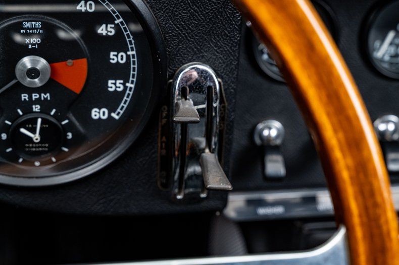 Power comes from the original, matching-numbers 4.2-liter inline-six, which was rebuilt to factory specifications during the restoration with an emphasis on longevity and proper operation. The engine, cylinder head, and carburetion were addressed as part of the process to return the car to correct running condition. Power is delivered through a Tremec 5-speed manual transmission developed by XKs Unlimited, a well-regarded upgrade that replaces the original gearbox with smoother, more precise shifting and an overdrive fifth gear that significantly improves drivability in real-world conditions. The drivetrain is complemented by Jaguar's independent rear suspension, equipped with a 3.54 gear ratio and limited-slip differential, preserving the balanced ride and handling characteristics for which the E-Type is known.