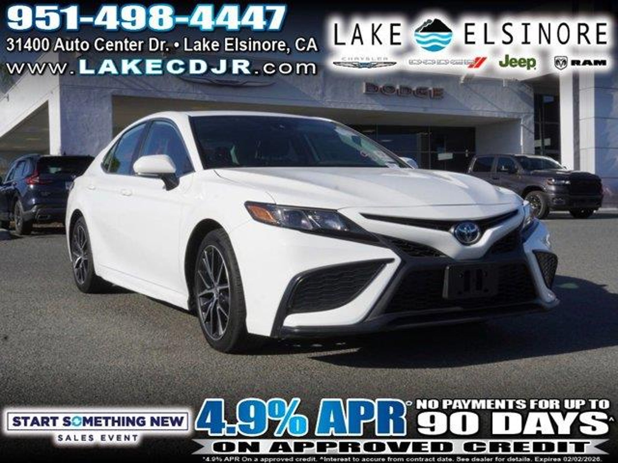 Recent Arrival! 2024 White Toyota Camry 4D Sedan SE Global Positioning Tracking System (S.W.A.T.) Guaranteed Protection & Recovery Program, Finishing Touch Complete Synthetic Paint Sealant Application & Protection Program, NitroFill Advantage Nitrogen Filled Tires & Protection Program, Genuine Mopar Wheel Locks Anti-Theft Vehicle Wheel Protection, Apple Car Play/Android Auto, Automatic Climate Control, Backup Camera. Priced to Go! Unbeatable Prices: Our dynamic pricing ensures you get unbeatable prices on vehicles that not only fit your budget but also exceed your expectations. We understand the importance of getting the most value for your hard-earned money. Schedule Your Test Drive: Don't miss out on this opportunity. Schedule your test drive now before the vehicle you desire is gone. Call us at (951) 291-9773 or visit our dealership at lakecdjr.com to experience the thrill of driving your new dream car. Join the ranks of our satisfied customers from Palm Springs, Lake Elsinore, San Jacinto, Sun City, Riverside, Menifee, Murrieta, Temecula, Moreno Valley, Perris, Escondido, Corona, and San Diego County. They've discovered the exceptional value we offer, and you can too. All vehicles subject to prior sale. The estimated selling price that appears after calculating dealer offers, financing and discounts is for informational purposes, only. You may not qualify for all the offers, incentives or financing on this page. Offers, incentives, or financing are subject to expiration, credit worthiness and other restrictions. See Lake Elsinore Chrysler Dodge Jeep Ram for qualifications and complete details or by calling (951) 291-9777. All prices plus government fees and taxes, any finance charges, $85 documentary fee, $33 electronic vehicle registration fee, any emission testing charge and $1.75 per new tire state tire fee. Offers and prices are not available to other dealers, wholesalers, or brokers. For out-of-state purchase customers, customers must be present to purchase. If shipping is required, dealership must facilitate, no exceptions. The sales price may not be combined with any other offer. The Advertised Price for any/all vehicles offered for sale does not include optional dealer pre-installed accessories or commercial upfits or aftermarket lift kit packages which can be purchased for an additional cost. Contact us for additional information at (951) 291-9773. All prices will be honored as cash. 8-Speed Automatic FWD 2024 Toyota Camry SE 28/39 City/Highway MPG