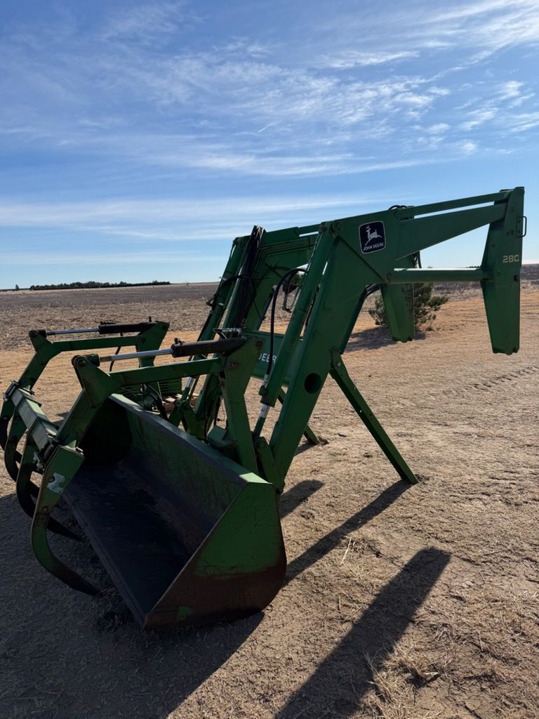 This John Deere 280 front end loader is a dependable, heavy-duty attachment designed to deliver strong performance and versatility for a wide range of agricultural and utility applications. Built with John Deeres proven durability and engineering, this loader is ideal for material handling, feeding livestock, moving hay, loading manure, and general farm maintenance. It features a solid frame, smooth hydraulic operation, and a wide bucket for efficient loading and hauling. Designed for easy mounting and reliable operation, the 280 loader offers excellent visibility and control from the operators seat. Well suited for daily use, this unit remains a practical and valuable addition for any tractor owner looking to increase productivity and efficiency on the farm.