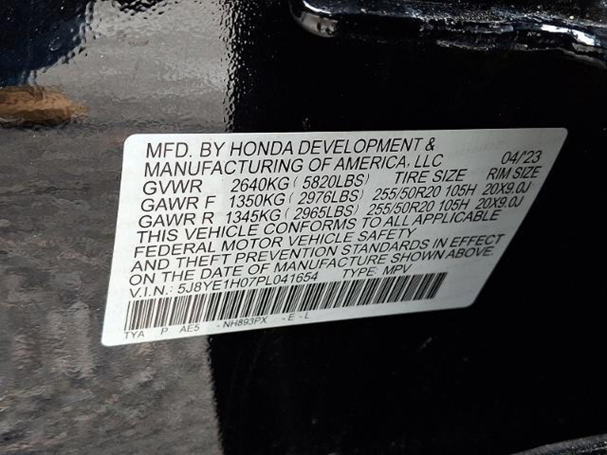 VIN 5J8YE1H07PL041654
