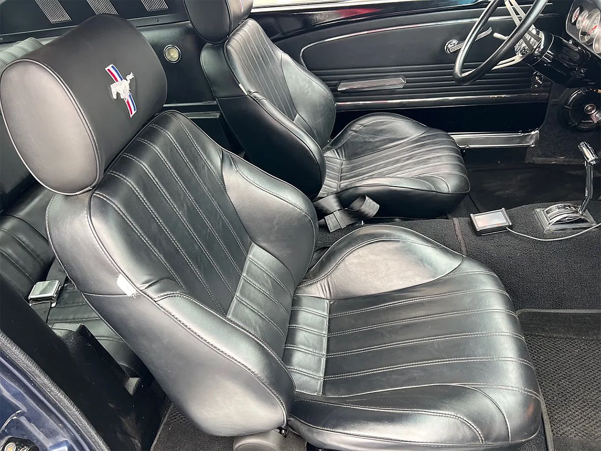 Only 3,900 miles! Complete Custom Built Restomod Fastback, clean original Tennessee car, beautiful Nightmist blue metallic paint, silver Shelby striping, black custom leather interior, 351 ci Windsor engine, Holley Sniper EFI, Weiand Stealth aluminum intake, aluminum heads, BBK ceramic headers, QA1 front suspension with power rack & pinion steering, CPP power 4-wheel disc brakes, air conditioning, billet front runner system, aluminum radiator with dual electric fans, billet hood hinges, automatic overdrive transmission, Pro Car Sport bucket seat, tilt column, JME Performance Phantom gauges, custom sound system, power windows, remote driver’s mirror, fold-down rear seat, QA1 fabbed 9” rear 4 link rear suspension with 4.10 Traction-Lock, 4 corner adjustable QA1 coil-over shocks, integrated frame connectors, drive shaft loop, H-pipe Flowmaster dual exhaust, 275/40ZR18 Hankook rear tires, 225/40ZR17 fronts, 18 & 17” Bonspeed wheels, custom hood, dual chrome mirrors, One Quick Pony!