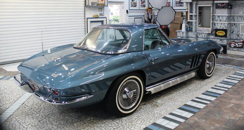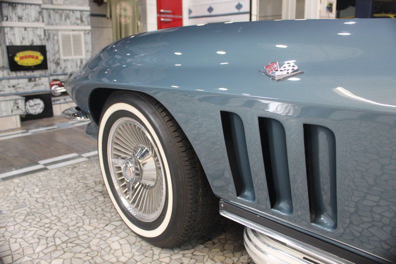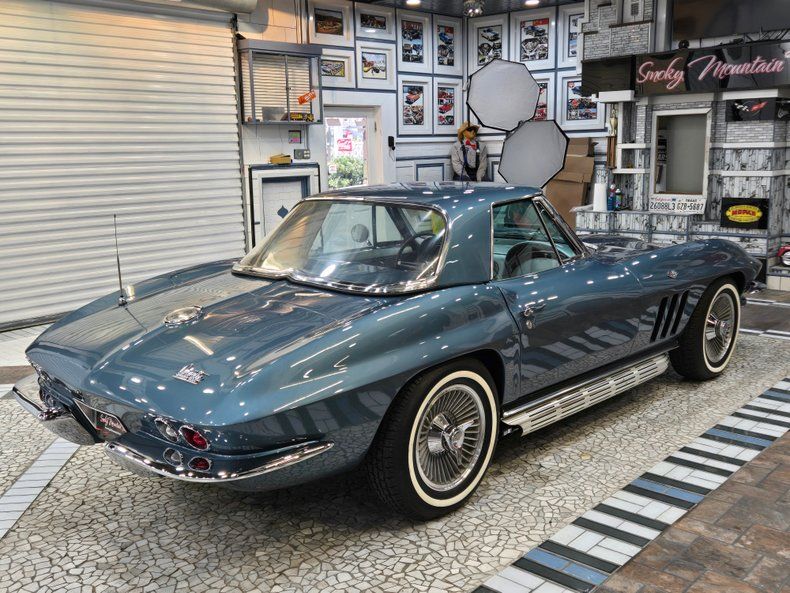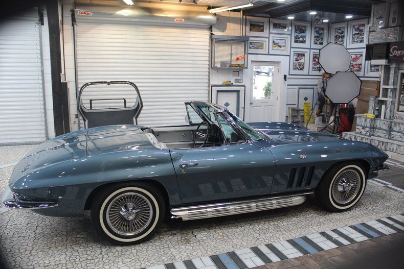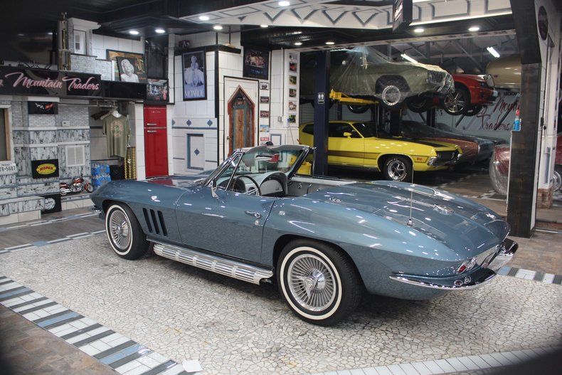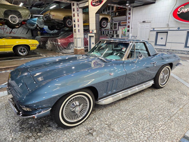 The 1966 Chevrolet Corvette Sting Ray C2 is widely regarded as a highpoint of mid-year Corvette styling and performance, refining the iconic 1963-65 design with subtler, more mature details. This convertible, Blue Metallic 1966 Corvette C2, is a stunning embodiment of this classic model that is considered by car enthusiasts to be one of the most beautiful cars ever made. As a '66 model, it represents a pinnacle in the muscle car era and is powered by a L-79 327 cubic-inch V8 engine combined with a manual four-speed transmission. Sporting knock-off style wheels and side exhaust outlets, this '66 Corvette presents a picture perfect and well-preserved image of the classic design. Exterior: An eye-popping appearance is produced on this gorgeous car by the Trophy Blue Metallic paint that has been buffed and polished to a stunning mirror finish. Chrome bumpers and side exhaust outlets maintain the classic Corvette styling while the side pipes augment the aggressive American Muscle look and engine rumble. The racing vibe of the iconic Corvette Stingray is heightened by the knock-off wheels which were discontinued after this year. Interior: The gleaming Trophy Blue Metallic exterior is perfectly complimented by an interior dressed in silver, creating a distinguished presentation. The 1966 Corvette features improved, more comfortable, pleated, vinyl, bucket seats. The interior was designed to be functional, with easy to reach controls, creating a "cockpit" feel, highlighting a 160-mph speedometer, and a 6,000-rpm tachometer, maintaining its racing persona. The stylish interior projects a beautiful, well-preserved overall appearance. Drivetrain & Performance: In keeping with the Corvette muscle car tradition, this 1966 Stingray is powered by an L-79 327 V8 engine that delivers plenty of punch without the brutal acceleration of the Big Block models. The engine combined with the 4-speed manual transmission makes this Corvette Stingray a formidable performer that dominated the roads and track solidifying its legendary status. This model is equipped with Disc brakes and Power steering providing modern stopping and driving confidence. Top Configuration: This car is outfitted with a removable hard top that is in excellent condition and is easily removed. This enclosure alters the convertible into a more versatile, weatherproof, more secure coupe, perfect for cooler weather. Summary: This 1966 Corvette Stingray C2 is a perfect representation of this iconic design with aerodynamic curves, a low profile, and aggressive styling that looked futuristic and exotic. The Trophy Blue Metallic gleaming paint, L-79 327 engine, four-speed transmission, knock-off wheels, and side exhaust outlet make this Corvette a inspiring blend of beauty and muscle car power associated with this legendary model.