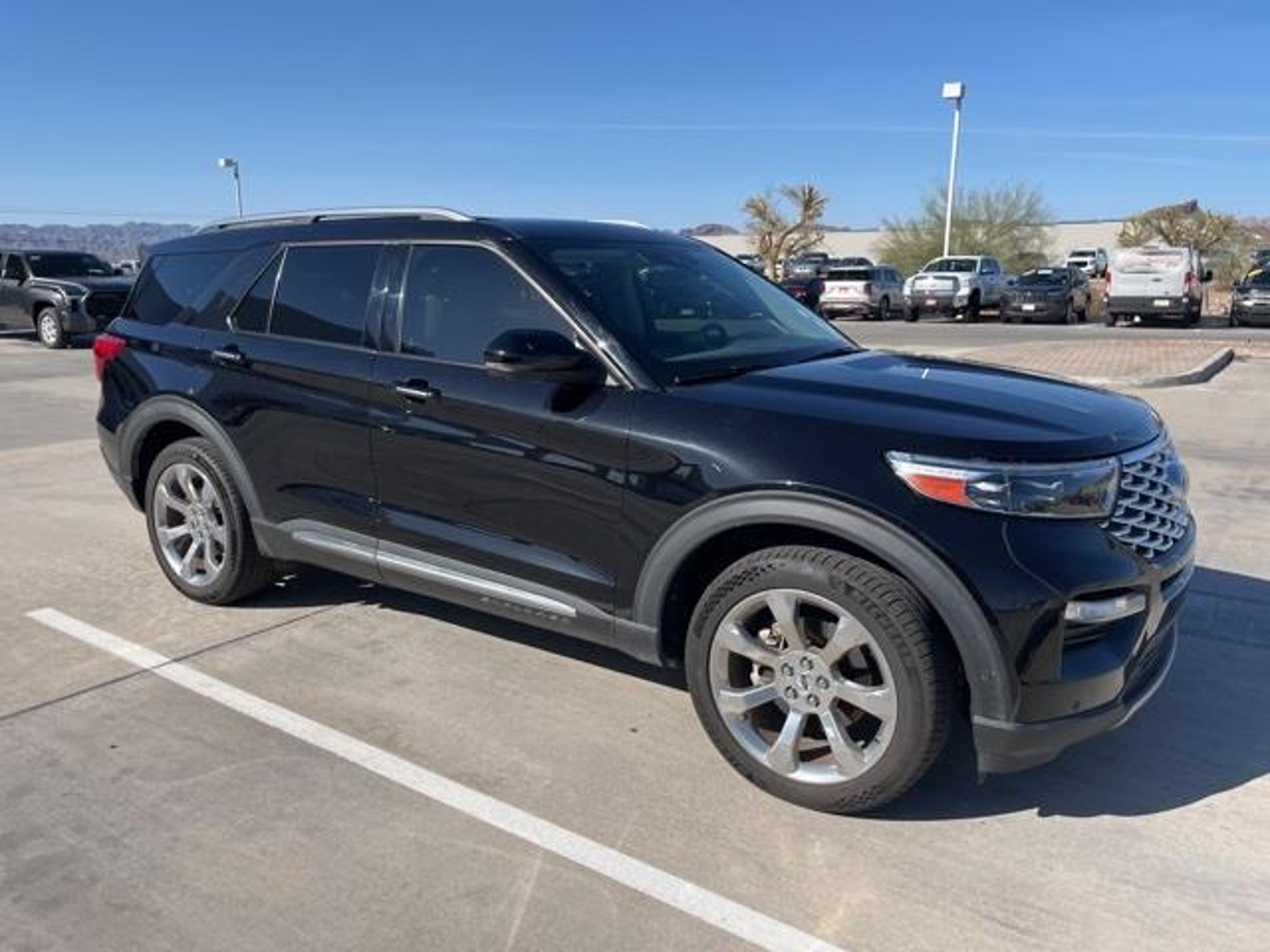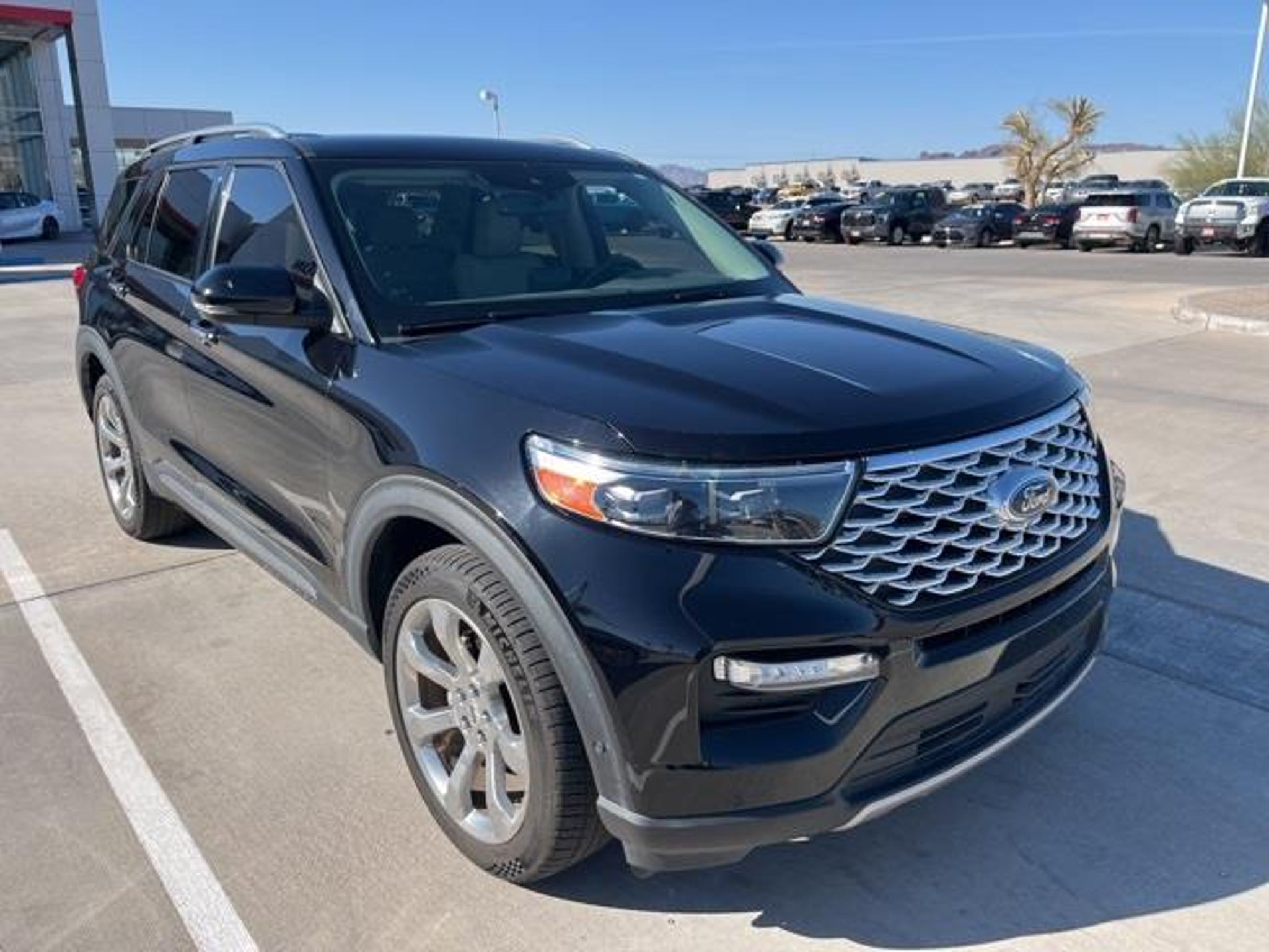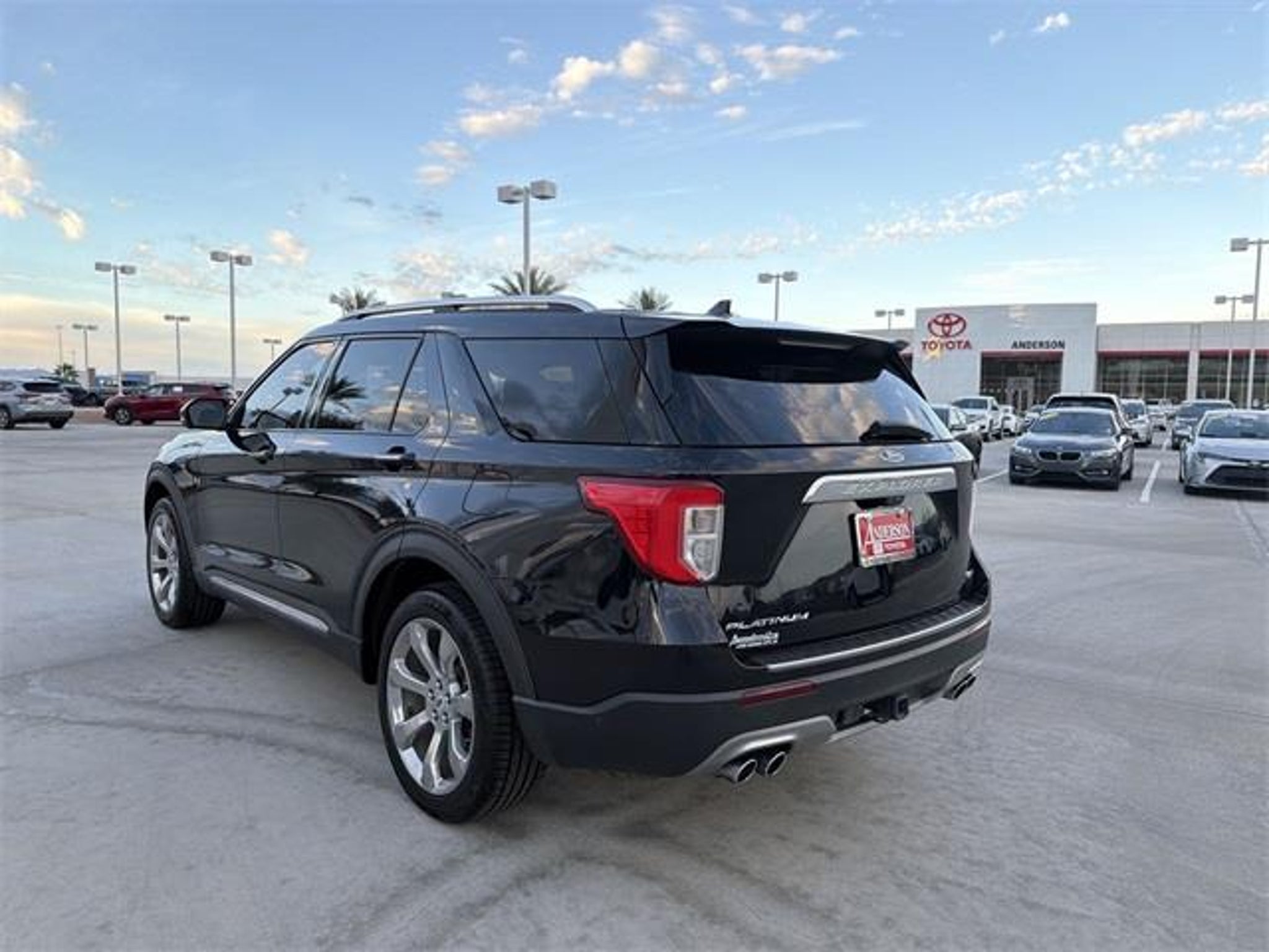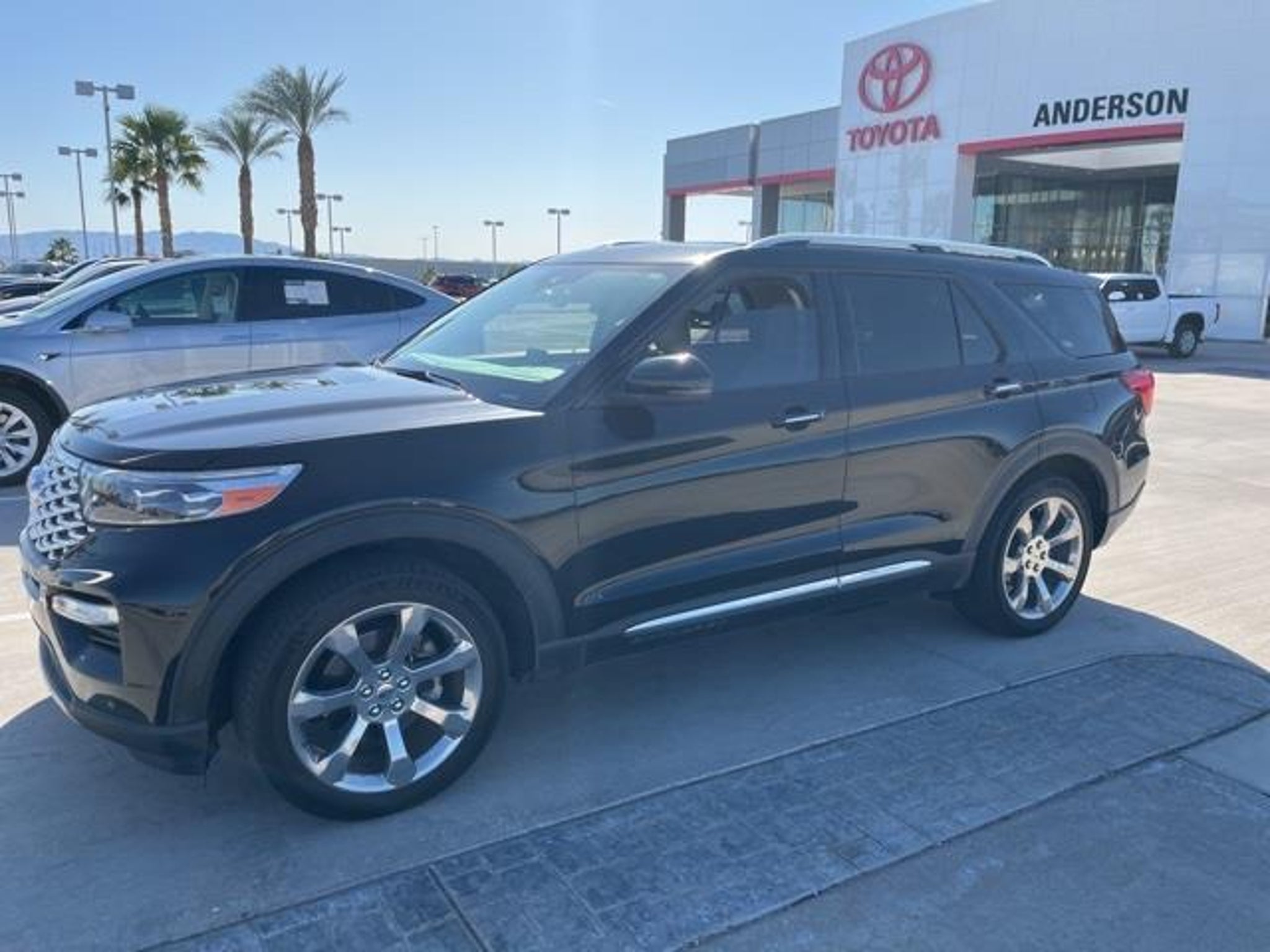 FRESH TRADE!! AVAILABLE NOW!! PLATINUM!! 4WD!! AGATE BLACK!! HEATED & VENTILATED SEATS!! POWER LIFTGATE!! MOONROOF!! PREMIUM B&O AUDIO!! REMOTE START!! PREMIUM TECH PKG!! This 2020 Ford Explorer Platinum in Agate Black combines upscale design, confident performance, and advanced technology in a full-size SUV built for families and drivers who appreciate comfort without sacrificing capability. Power comes from the 3.0L EcoBoost V6, producing strong, smooth acceleration through a responsive automatic transmission, while the intelligent four-wheel-drive system adds reassurance in changing road and weather conditions. The result is a composed driving experience that feels secure on the highway and capable when traction becomes limited. The Agate Black exterior gives this Explorer a bold, elegant presence, enhanced by Platinum-specific styling cues that elevate its appearance beyond the standard model. Subtle chrome accents, distinctive 21 alloy wheels, and a streamlined profile contribute to a premium look that remains timeless. A hands-free power liftgate adds convenience when loading cargo, making everyday errands and road trips easier to manage. Inside, the cabin is finished with Light Sandstone leather seating that creates a bright, inviting atmosphere for both driver and passengers. The Platinum trim with Equipment Group 600A brings a high level of luxury and technology, including multi-adjustable front seats with heating and ventilation, a panoramic twin-panel moonroof that fills the interior with natural light, and a premium B&O audio system that enhances every drive. The digital instrument cluster and large touchscreen infotainment system place navigation, media, and vehicle settings directly in view, keeping the experience intuitive and modern. Second- and third-row seating provide ample room for passengers, while the flexible cargo area adapts easily for luggage, groceries, or sports equipment. Advanced safety and driver-assist systems support confident driving with features designed to monitor surroundings, assist with braking, and help manage highway traffic. The suspension and chassis tuning balance comfort and control, allowing the Explorer Platinum to feel smooth and stable across a variety of road surfaces. This 2020 Ford Explorer Platinum brings together luxury, power, and practicality in a well-equipped SUV that is ready for daily driving and extended travel alike, making it an excellent choice for those seeking a premium, capable vehicle with thoughtful features throughout. Visit Anderson Toyota today or give our friendly sales staff a call to schedule your test drive, . WHY BUY FROM ANDERSON: All Anderson pre-owned vehicles include a 3-month or 3,000 mile powertrain limited warranty and one-year/15,000 mile (whichever occurs first) vehicle maintenance plan when the vehicle is serviced at an Anderson Auto Group dealership. Out of town customers will be accommodated with free shuttle service from Las Vegas and Phoenix airports and if an overnight stay is needed, discounted nightly rates are available from local hotels. We welcome you to come in and enjoy a positive buying experience and look forward to you joining the Anderson family of customers. DISCLAIMER: Prices, options, specifications and images shown are subject to certain qualifications and availability. Pricing information is not final and may not include taxes, registration, finance and purchase fees. Please confirm vehicle availability and pricing information by calling us at or emailing our internet sales department at . Some exclusions apply, see store for details.