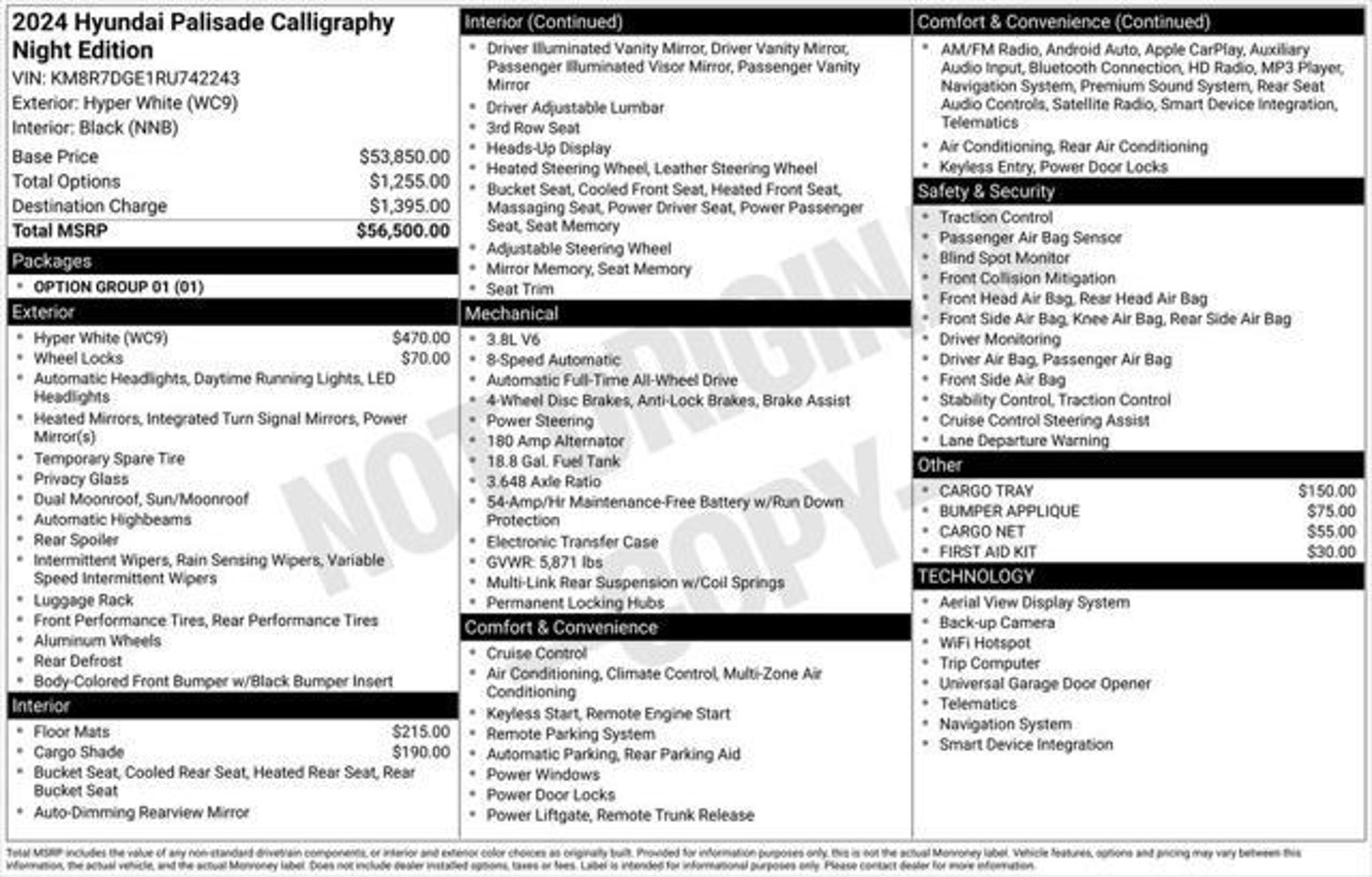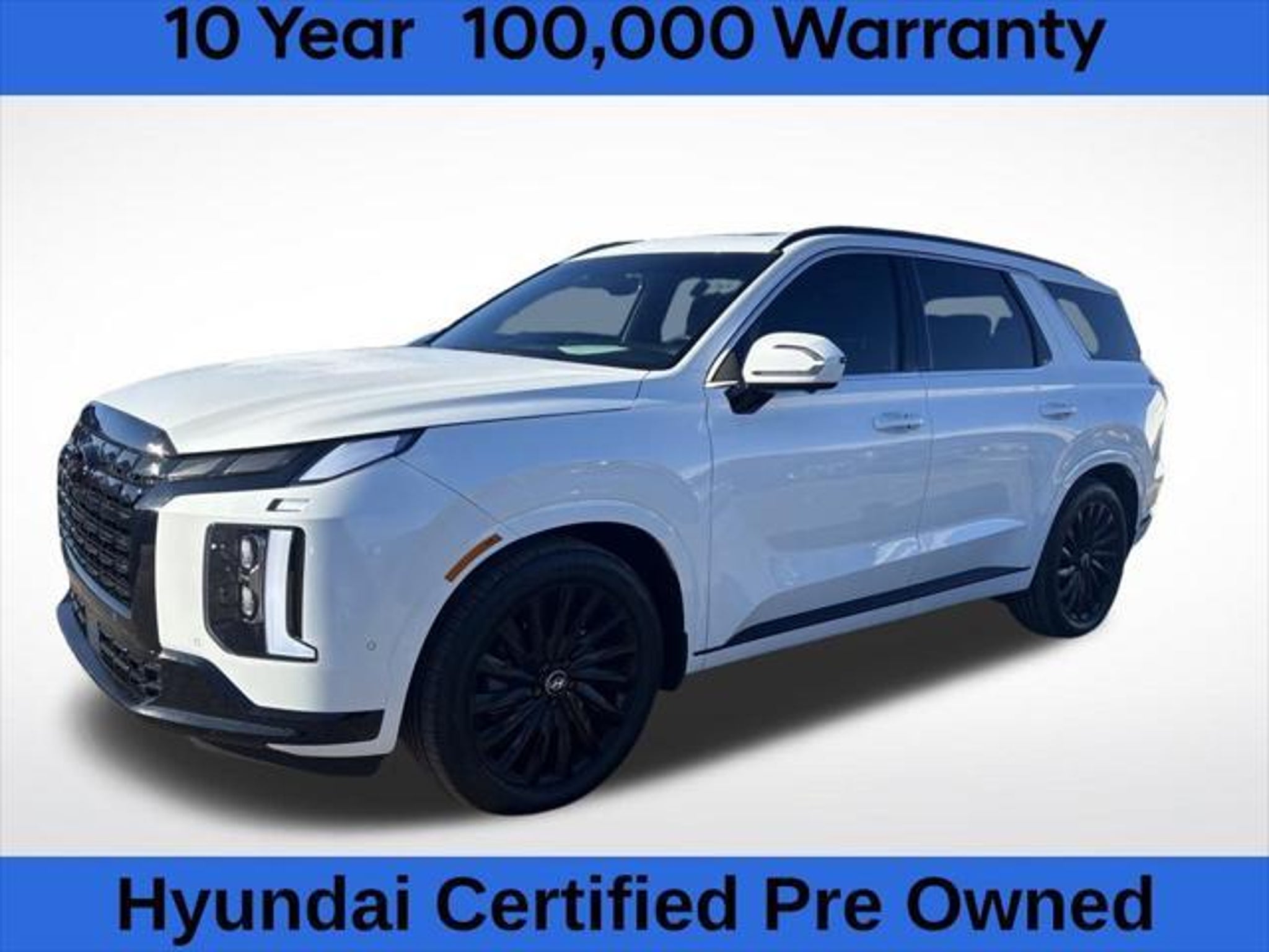 Discover the ultimate in luxury and performance with this stunning 2024 Hyundai Palisade Calligraphy Night Edition. This exceptional SUV boasts a commanding presence and a host of premium features that will elevate your driving experience. Meticulously equipped, this Palisade Calligraphy Night Edition offers an impressive array of amenities: "¢ Navigation System "¢ 12-Speaker harman/kardon® Audio System "¢ Heads-Up Display "¢ Heated and Ventilated Front Seats "¢ Heated Rear Seats "¢ Power Liftgate "¢ Panoramic Sunroof "¢ Blind Spot Monitoring with Rear Cross-Traffic Alert "¢ Surround View Monitor Beneath the sleek, Hyper White exterior lies the power and capability of a V6 engine paired with an 8-speed automatic transmission and all-wheel drive. With an impressive 19 city / 24 highway MPG, this Palisade delivers exceptional efficiency without compromising on performance. Hyundai Certified Used Vehicles come with a comprehensive 173 point inspection, a 60-month/60,000-mile limited warranty, a 120-month/100,000-mile powertrain warranty, and 10 years of unlimited mileage roadside assistance. You can drive with confidence, knowing this Palisade has been meticulously evaluated and backed by Hyundai's renowned quality and reliability. Experience the pinnacle of luxury and convenience in this 2024 Hyundai Palisade Calligraphy Night Edition. With its stunning design, advanced technology, and exceptional performance, this SUV is poised to exceed your expectations. Visit our showroom today to take this remarkable vehicle for a test drive and discover the true meaning of premium driving.