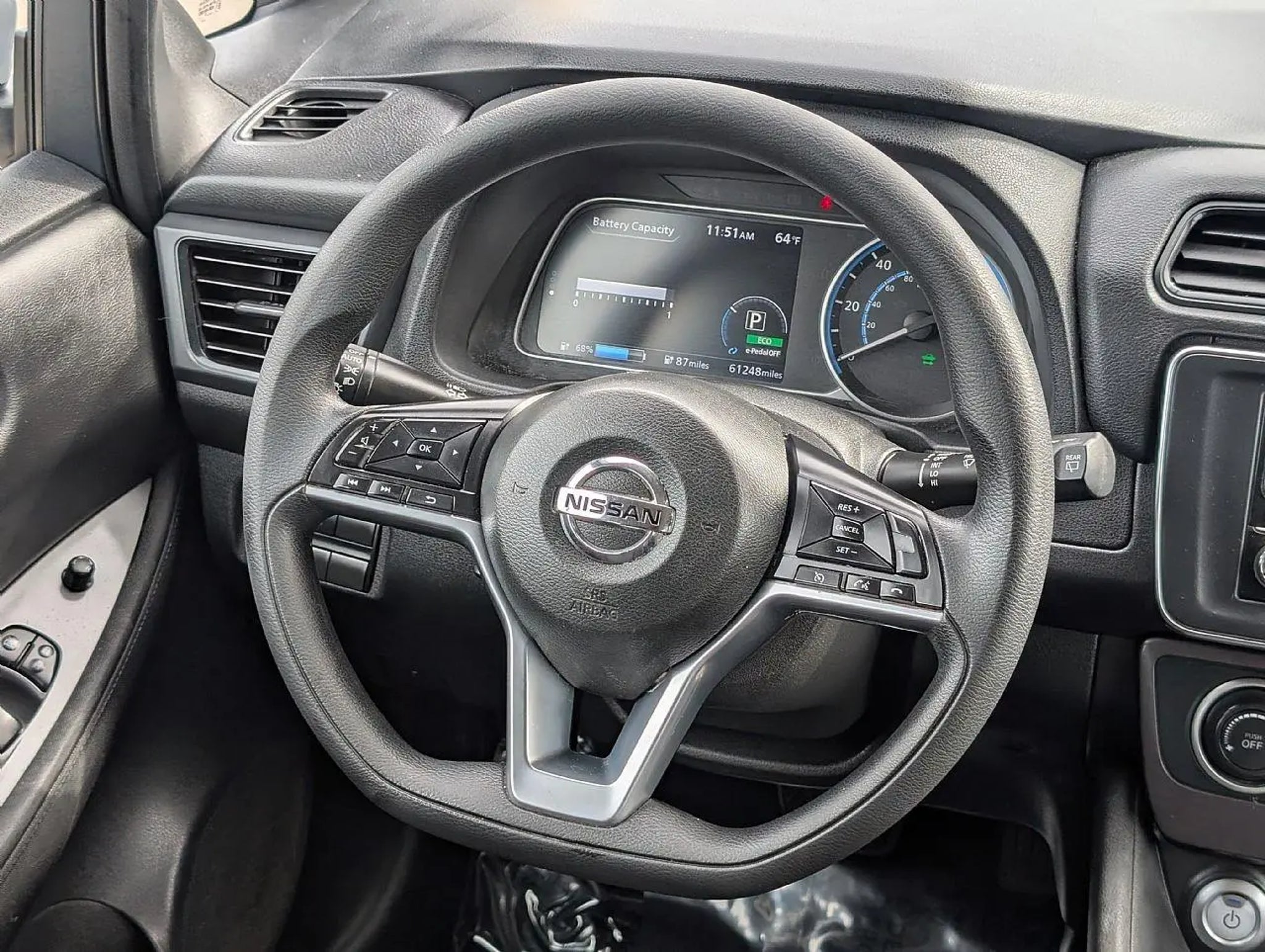 This 2019 Nissan LEAF S|has a Brilliant Silver Metallic exterior and an Black interior color. 61,236 miles. Stock Number 0250882B. You can connect with us by calling . OTHER NOTABLE FEATURES AND OPTIONS YOU SHOULD KNOW ABOUT: S Charge Package ($1,690 value) Portable Charge Cable Quick Charge Port Convenience Cruise control with steering wheel mounted controls. Set it and forget it. Road trips used to be stressful, until cruise control set the pace. Simply set the desired speed using the steering wheel mounted controls and it will maintain that speed without driver intervention. This can help minimize driver fatigue and improve overall fuel economy. Resting your right foot is right at your fingertips thanks to cruise control with steering wheel mounted controls. Powertrain and Mechanical Electric motor - A cleaner way going forward. Eliminate your carbon footprint and your spending at the pumps with Electric motor. Rechargeable batteries power your drive instead of an internal combustion engine, making the motor more environmentally friendly since it produces no emissions. With an electric motor, green means go! Safety and Security Forward collision mitigation - Forward thinking. You look away for just a second and suddenly the vehicle in front of you has stopped. That's when the forward collision mitigation system comes to life. When it senses an impending impact, it will activate a combination of features to help prevent or reduce the severity of an accident. Forward collision mitigation is always looking ahead. Rear camera - Watching your back! The rear camera helps you see obstacles and hazards you otherwise couldn't by showing enhanced images of what is behind you. The rear camera is an extra set of eyes that's both convenient and safe. Brake assist - Stop right there. Something jumps out into the middle of the road and you need to stop now! With brake assist, you will. It uses the speed of the brake pedal's travel to sense panic braking, then applies all available power to boost your stopping power. Brake assist can stop the accident before it is one. BRILLIANT SILVER METALLIC, BLACK, CLOTH SEAT TRIM, [F01] S CHARGE PACKAGE, [C03] 50 STATE EMISSIONS, [B92] PROTECTION PACKAGE, [L92] FLOOR MATS & CARGO AREA MAT To be sure you don't miss out, give us a call and schedule a test drive. We are located at 1595 E Main El Cajon CA 92021. WE LOOK FORWARD TO SEEING YOU SOON!