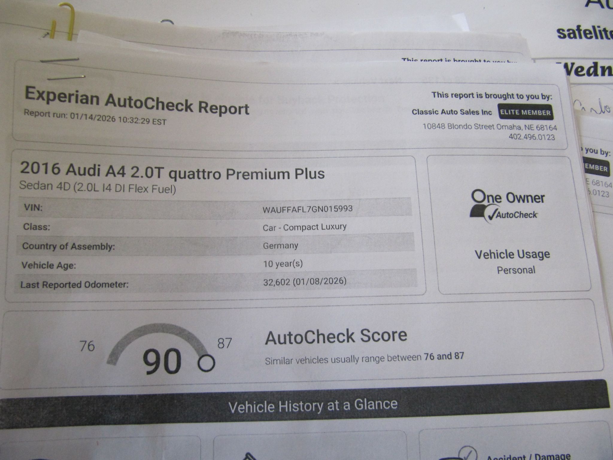 1 owner Audi A-4 Quattro Premium Plus S-Line AWD-All Options-Only 32,000 Actual Miles Auto Check High Rating 90-Leather Moon Roof-Full Power 2.0 Liter Turbo-Navigation- High $ Stereo System-Incredible Original Condition with only 32,000 Actual Miles-No Issues-No Disappointments-Someone will get Lucky-1-402-496-0123-Website-www.classicautosales.com