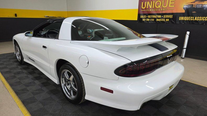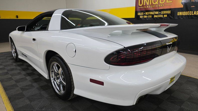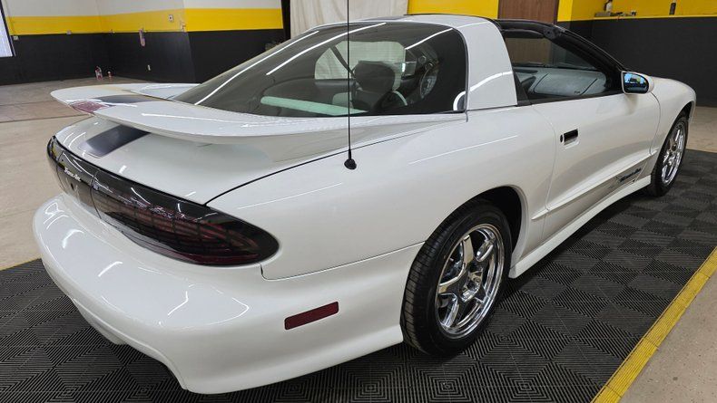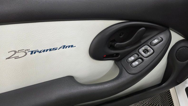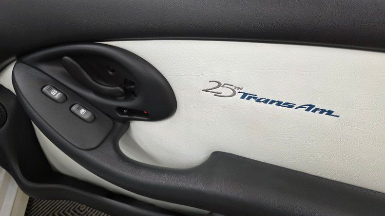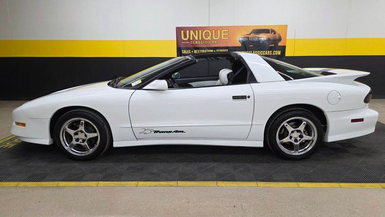 1994 Pontiac 25th Anniversary Trans Am T-Top Coupe, only 2,000 units produced-specifically 1,750 coupes and about 250 convertibles. This particular vehicle is a two-owner car, with a clean Carfax report, no accidents, and exceptionally LOW MILEAGE of 17,604 MILES. It features a Vortech V1 SUPERCHARGED 5.7-liter with a engine delivering around 450 horsepower, paired with a smooth-shifting 4L60E automatic transmission with overdrive. Equipped with power steering, power brakes, COLD air conditioning, and a host of factory and aftermarket upgrades, including Crane Cams Fireball H6 electronic ignition and additional A-pillar gauges. The exterior paint and chrome five-spoke wheels are in excellent condition, complemented by radial tires that are relatively new and equipped with subframe connectors for enhanced chassis rigidity. The white leather interior is equally impressive, featuring embroidered 25th Anniversary logos on the bucket seats, power windows, locks, mirrors, tilt column, cruise control, and a well-maintained dash with no stress cracks-a common issue in these models. The stereo system includes an AM-FM CD player with a built-in equalizer. The car is presented with its complete owner's manual package. On the road the car's SUPERCHARGED upgraded power, smooth handling, and the comfort expected makes it very fun to drive.