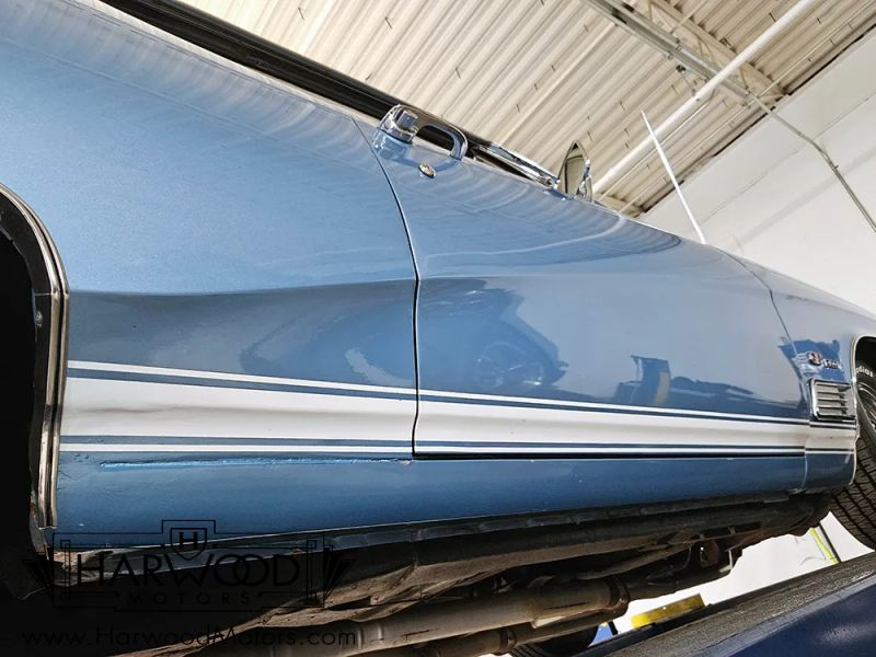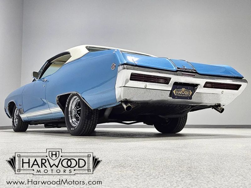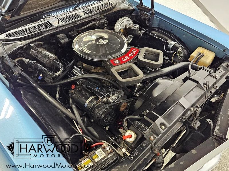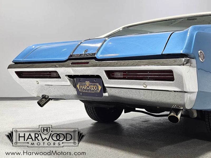 Were not sure why, but Buicks never seem to get the same respect as their Chevy and Pontiac siblings. The good news is that you can own a car like this 1968 Buick GS 400 for far less cash than a comparable Chevelle or GTO, and it delivers the same muscle car experience. In fact, wed argue that the Buick is a better car, with superior build quality and a more substantial feel out on the road. And when theyre as pretty as this code D Blue Mist GS, the argument is pretty easy to make. The restoration was probably finished in the early 2000s but we dont have any documentation on it. However, the super straight bodywork looks awesome and we dont see any evidence of botched repairs or substandard workmanship. Panel gaps are even, that crease running from nose to tail is crisp, and theres a nice shine to the paint. Experts will quickly spot that this car wears a 1969 GS hood, which includes functional Ram Air, but thats a subtle distinction that probably improves performance. Theres also a nice white vinyl top that fits well and doesnt show any signs of rust issues underneath. The chrome and stainless trim is excellent, it wears correct GS badges, and someone has cleverly integrated a third brake light into the rear bumper-cool!