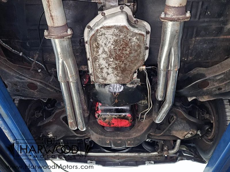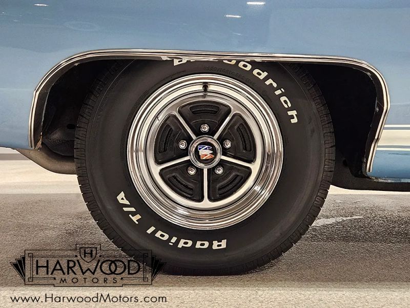 The engine is a 400 cubic inch V8, the largest permitted under GMs rules in 1968. The stamping on the front of the block matches the cars VIN, strongly suggesting that this is the cars original engine, and it runs great. The aforementioned Ram Air hood and air cleaner dominate the engine bay, and underneath youll find an aluminum intake and 4-barrel carburetor. There are also custom Buick valve covers, an HEI distributor, a new water pump, and lots of signs of recent maintenance. It starts and runs great, and with what feels like an upgraded camshaft inside, it has a muscular idle. The TH400 3-speed automatic was rebuilt with a shift kit, and there are 4.10 gears in the 10-bolt rear so its seriously punchy around town. Long-tube headers feed a 3-inch exhaust with Flowmaster mufflers, and there are fat sway bars at both ends. We dont believe the body has ever been off the frame, but this is a warm climate car that has never seen winter weather, so floors and trunk are in great shape. Best of all, it rides like a Buick, so it feels relaxing rather than high-strung on the road. 14-inch Buick road wheels are the right look, and they carry brand new 225/70/14 BFGoodrich T/A radials all around.